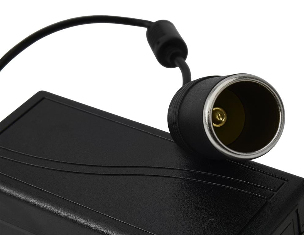 Wyjście w postaci standardowego gniazda zapalniczki (ISO 4165) zapewnia kompatybilność z szeroką gamą akcesoriów samochodowych i kempingowych — pompek, ładowarek, oświetlenia LED, nawigacji GPS oraz innych urządzeń 12V z wtykiem zapalniczki.