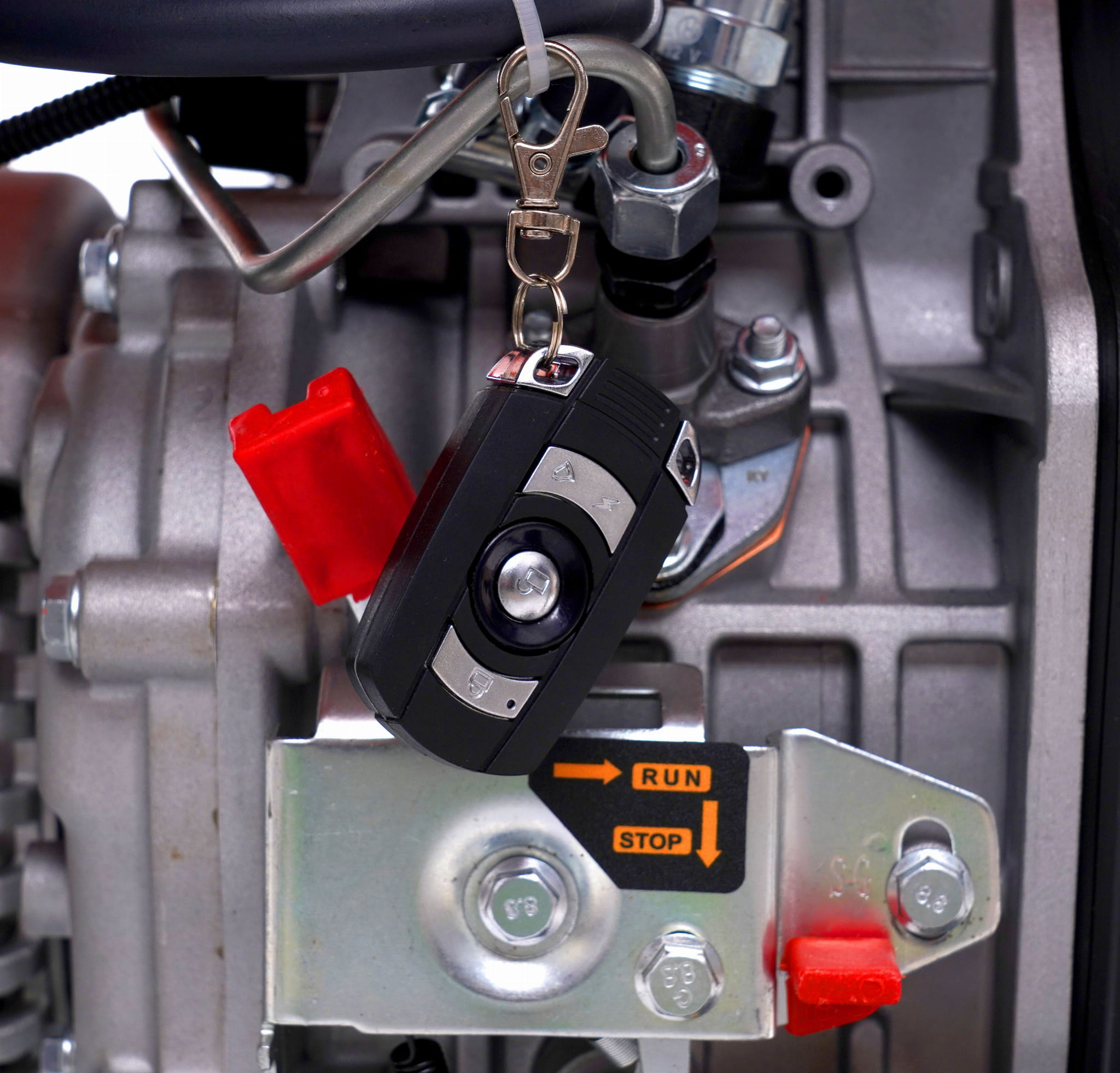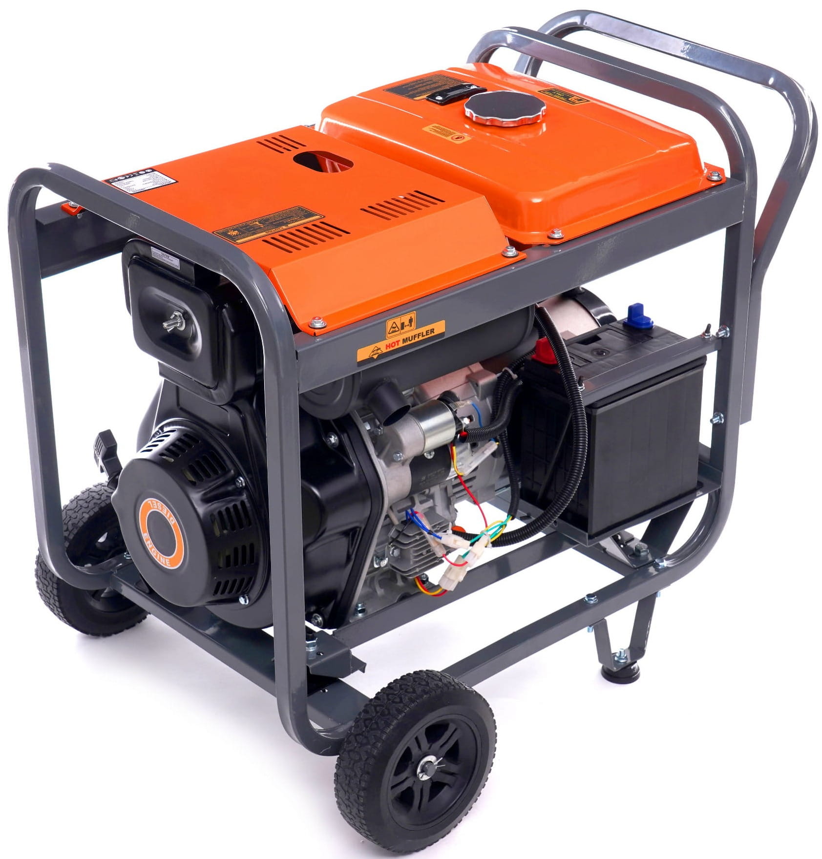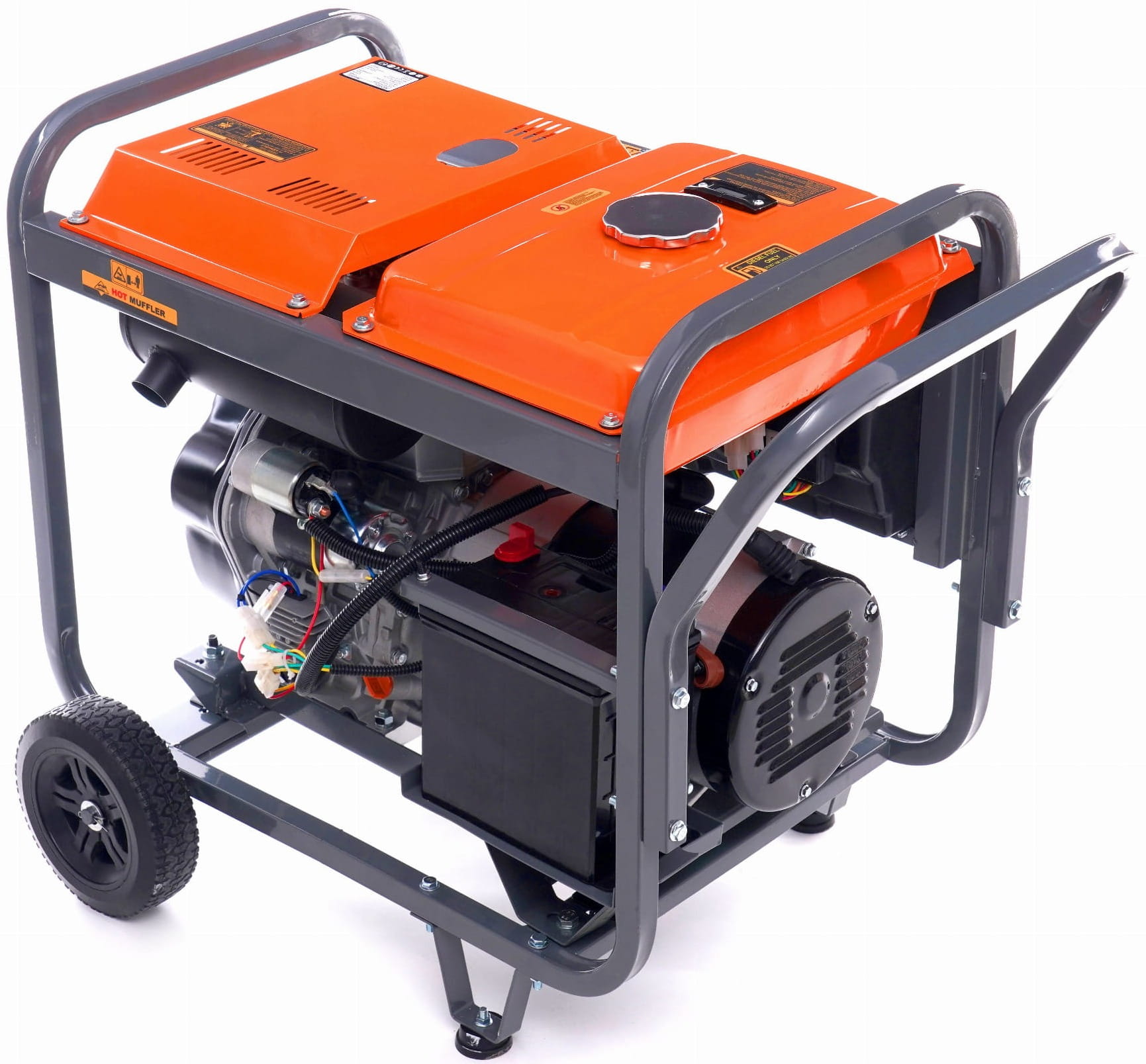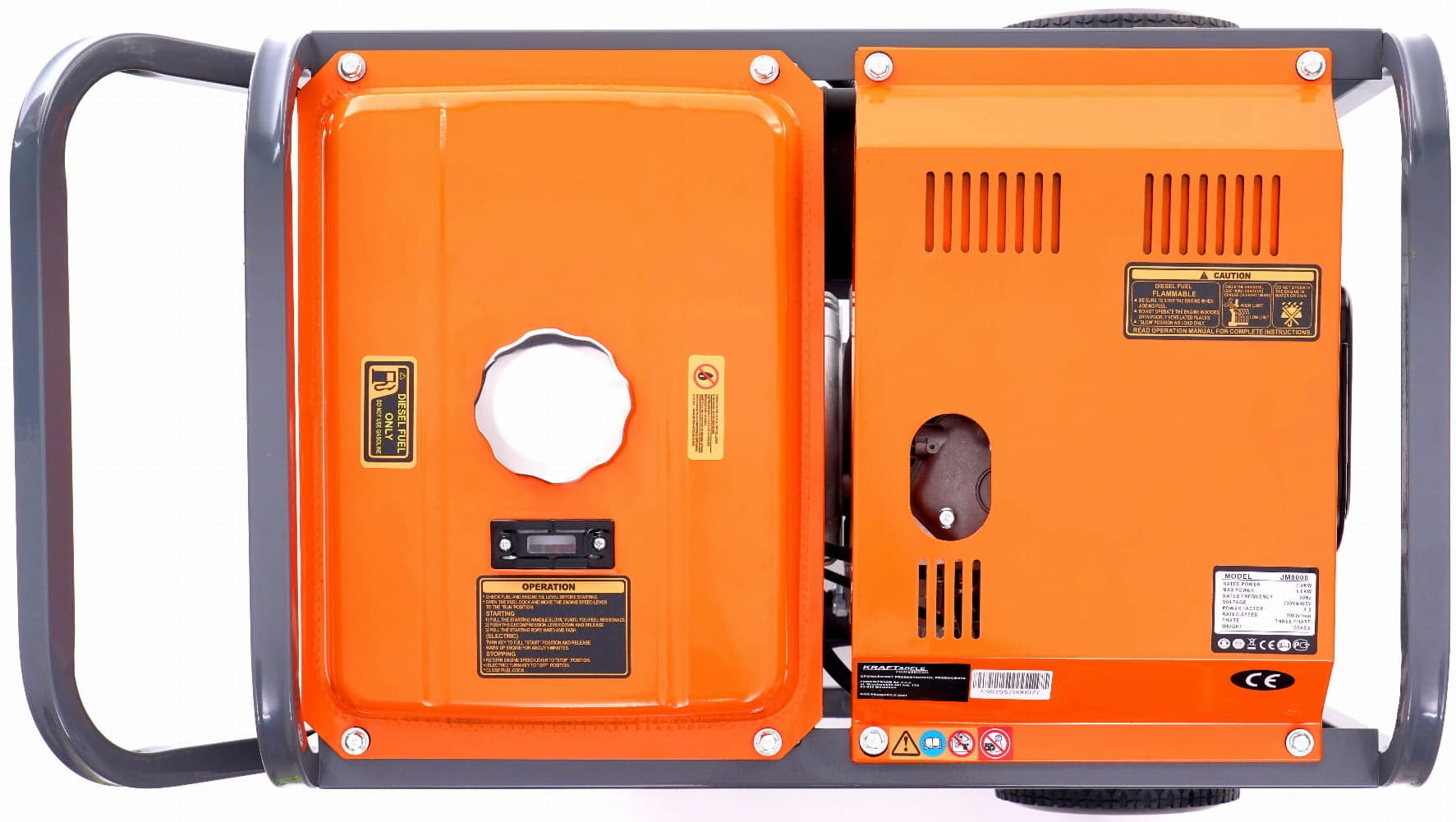 Silnik osadzony jest na gumowych poduszkach tłumiących drgania, co ogranicza przenoszenie wibracji na podłoże i otoczenie. Rama wyposażona w uchwyty i kółka transportowe umożliwia przemieszczanie agregatu o wadze 110 kg bez użycia wózka widłowego.