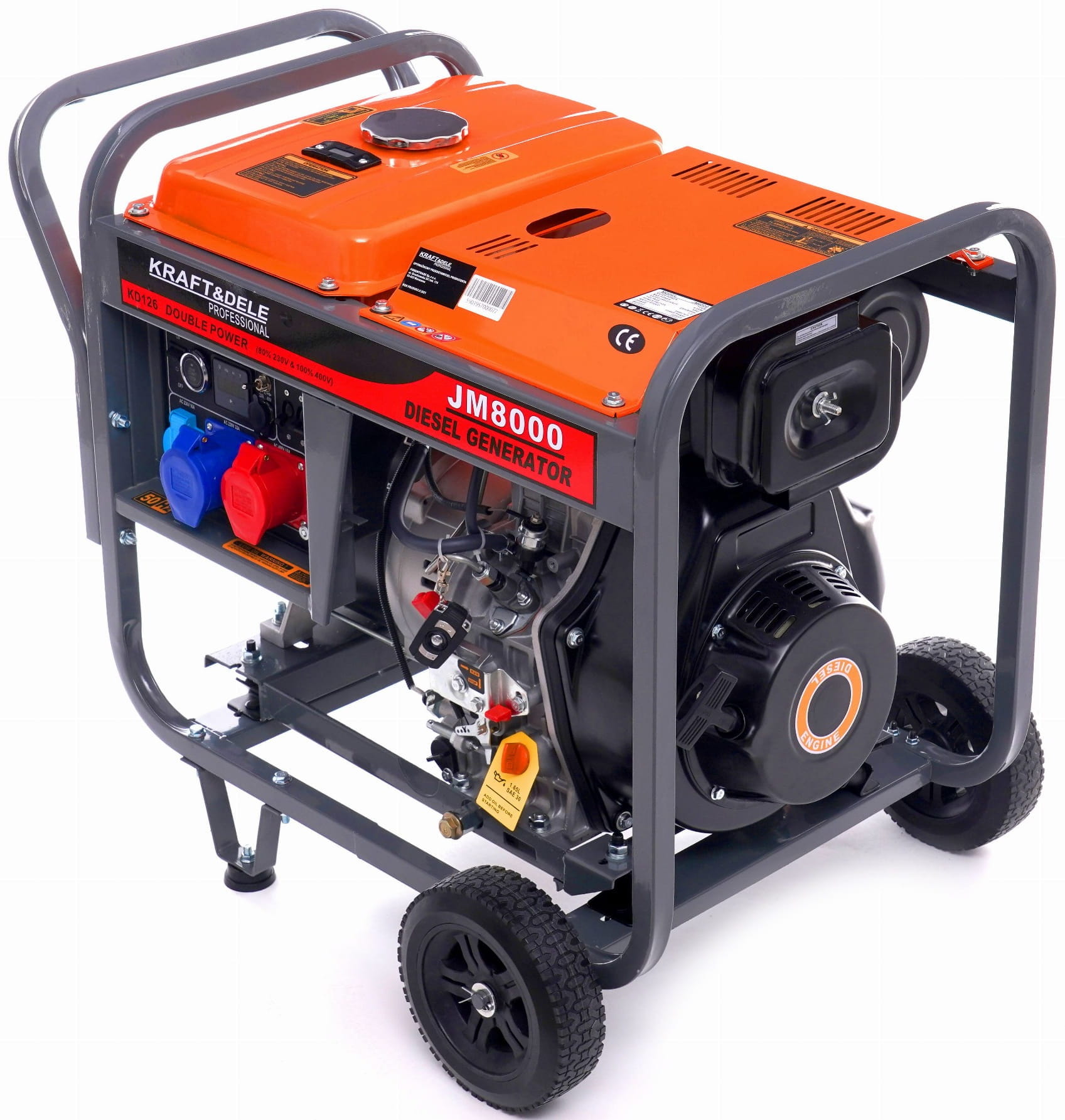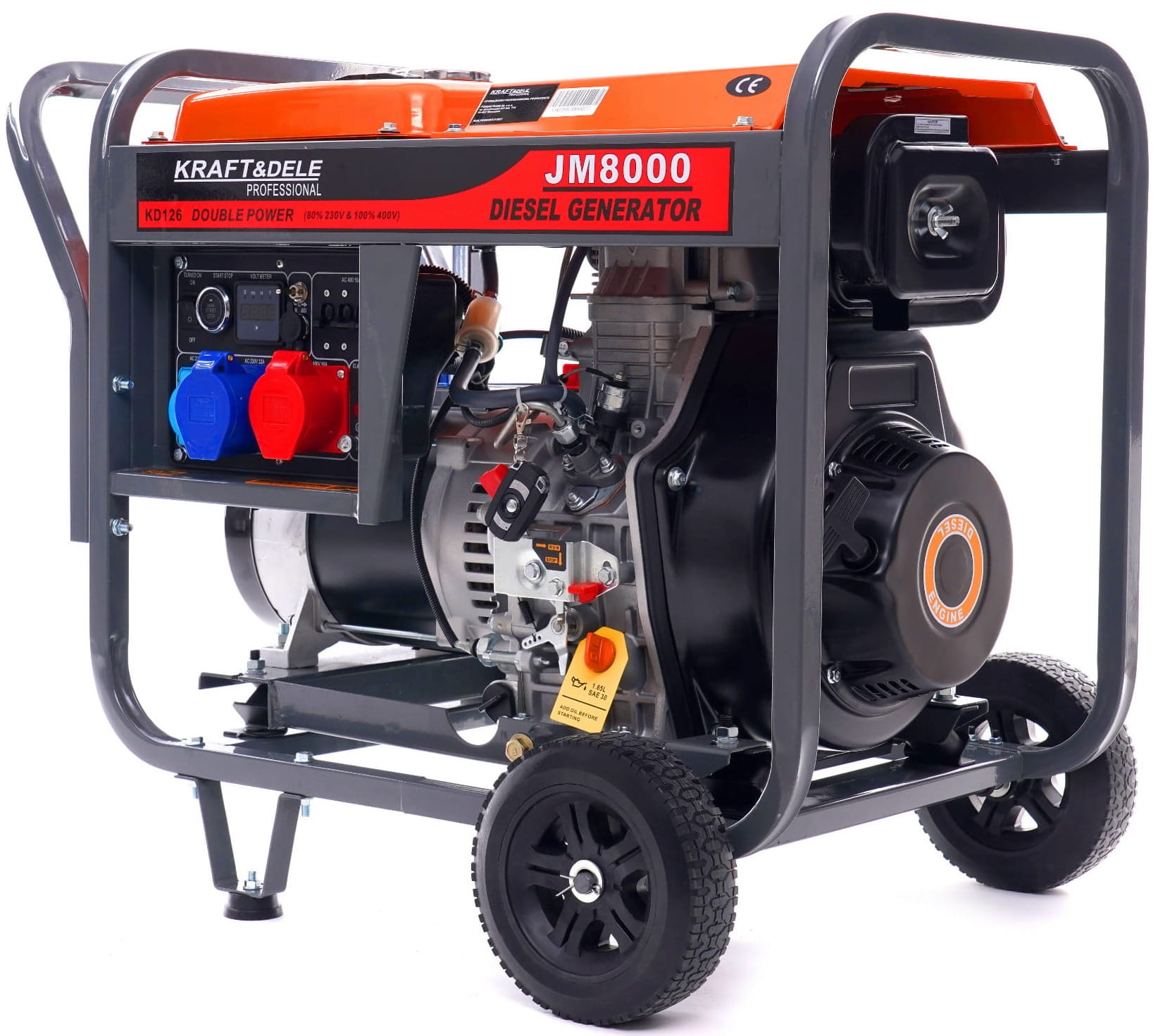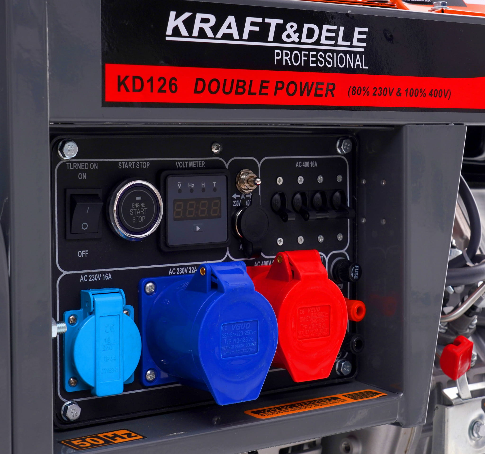 Agregat prądotwórczy KD126, klucz do świec i śrubokręt, komplet wtyczek prądowych, kluczyki do rozruchu elektrycznego, oryginalne opakowanie, paragon lub faktura VAT, gwarancja 12 miesięcy.
