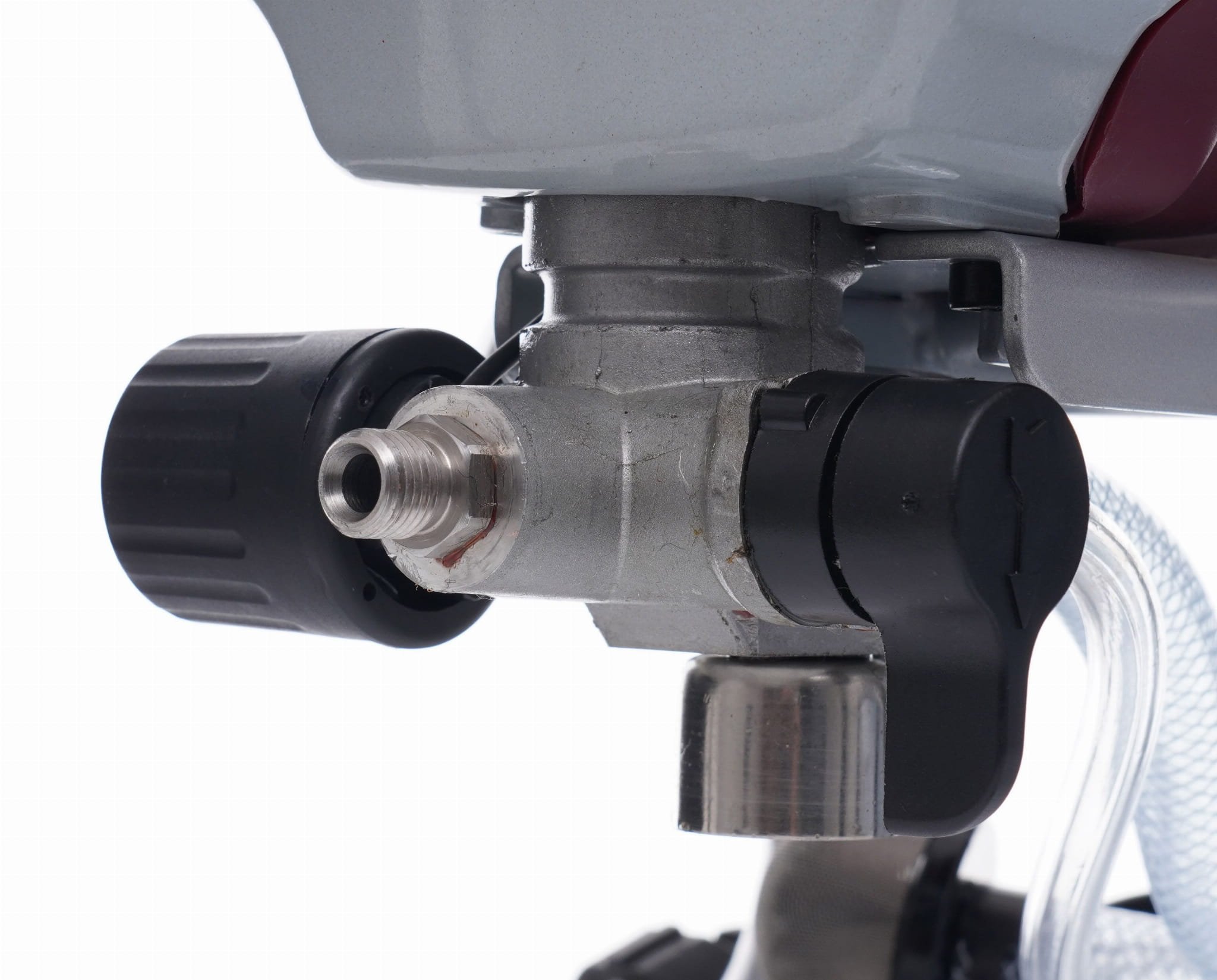 Urządzenie może pracować w pionie i w poziomie, co umożliwia malowanie zarówno ścian, jak i sufitów bez zmiany pozycji agregatu. Pistolet wyposażony jest w blokadę spustu, która powinna być aktywowana podczas każdej przerwy w pracy.