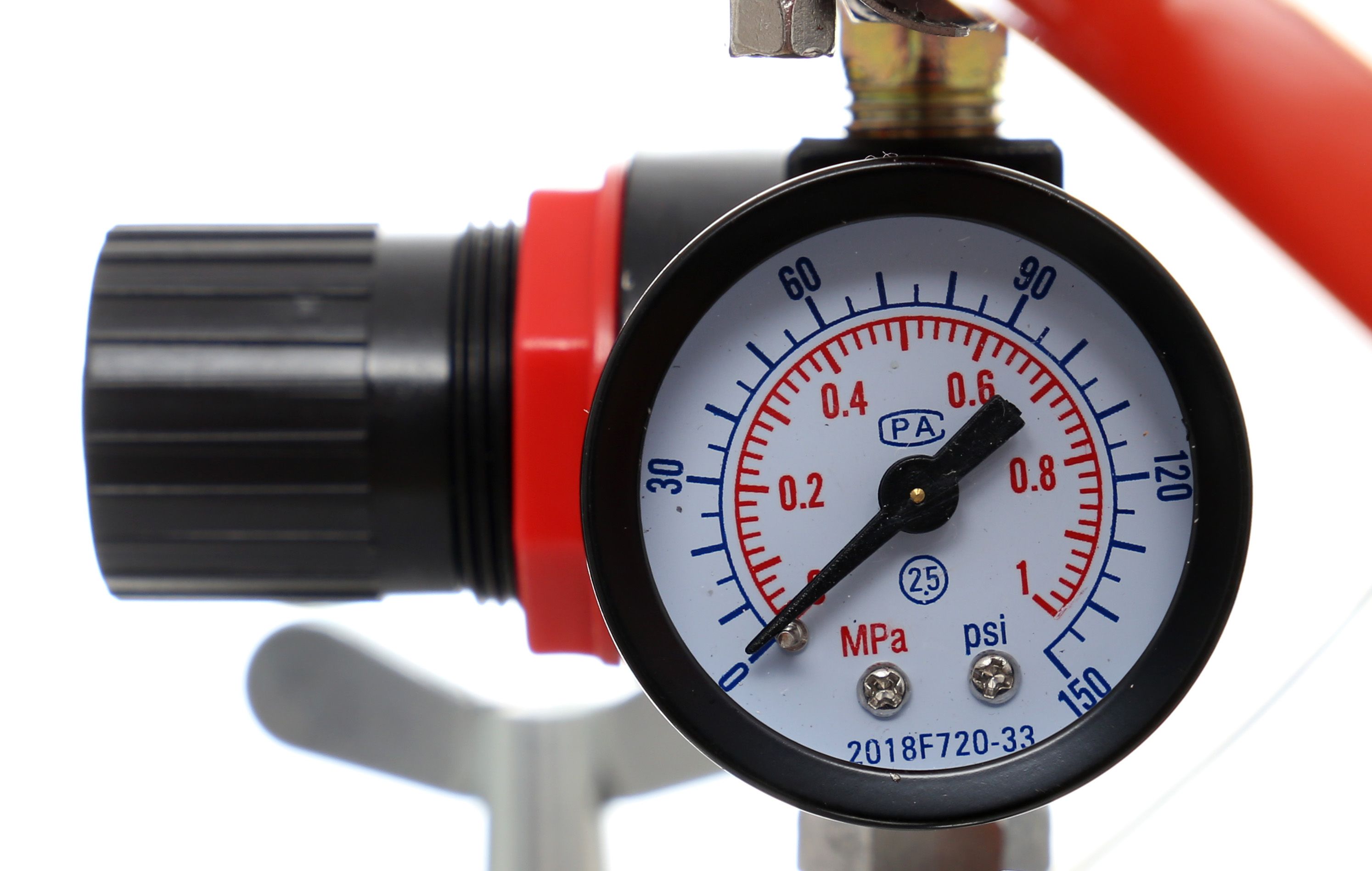 Reduktor ciśnienia z manometrem ułatwia szybkie dopasowanie ustawień do rodzaju farby i tempa pracy.