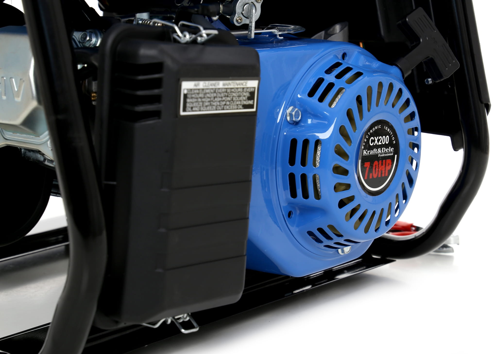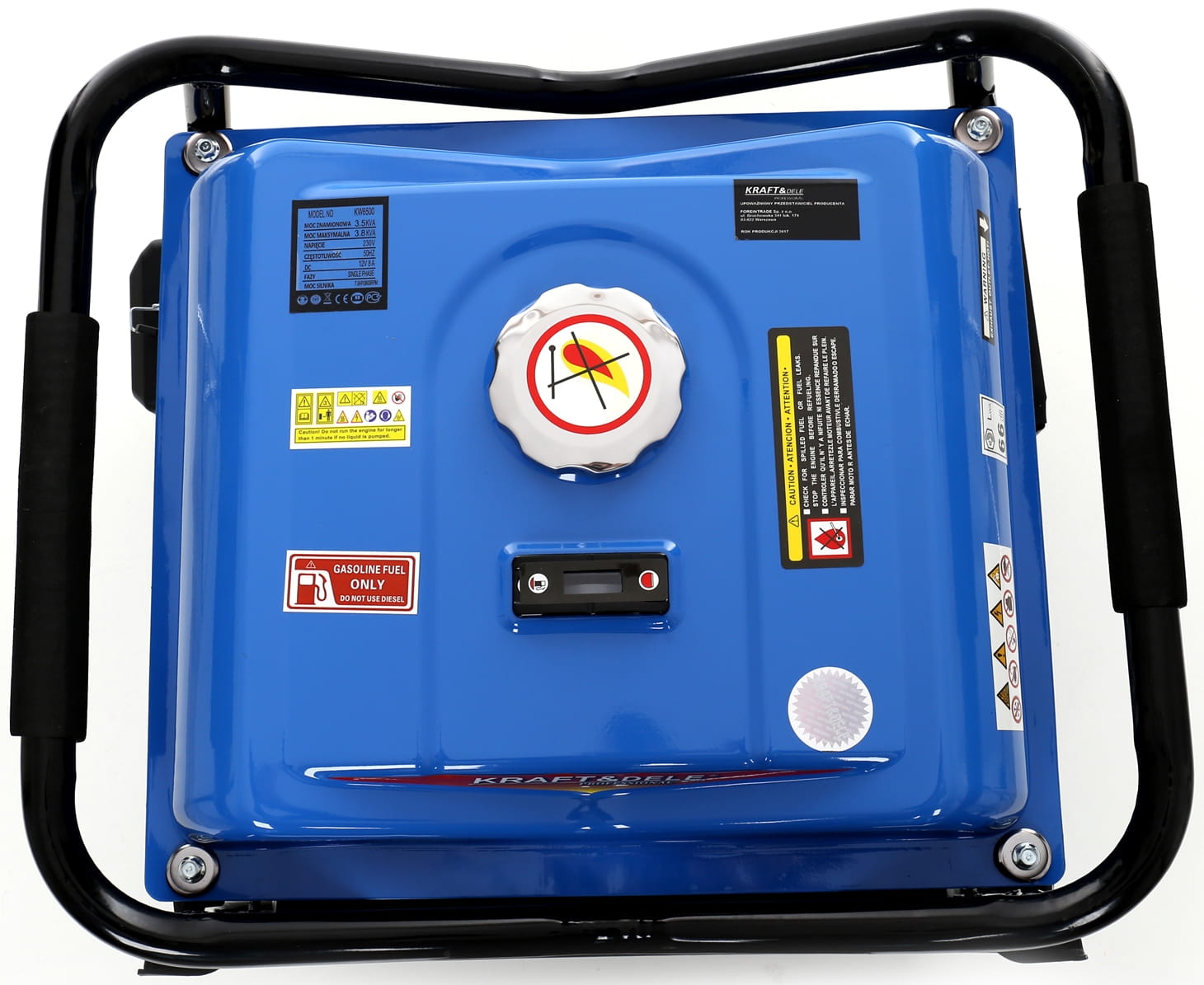Agregat wymaga zatankowania benzyną bezołowiową 95 przed pierwszym uruchomieniem. Zbiornik o pojemności 15L zapewnia kilka godzin pracy bez konieczności uzupełniania paliwa – czas pracy zależy od obciążenia i ustawień przepustnicy. Urządzenie uruchamiane jest ręcznie za pomocą linki rozruchowej.
