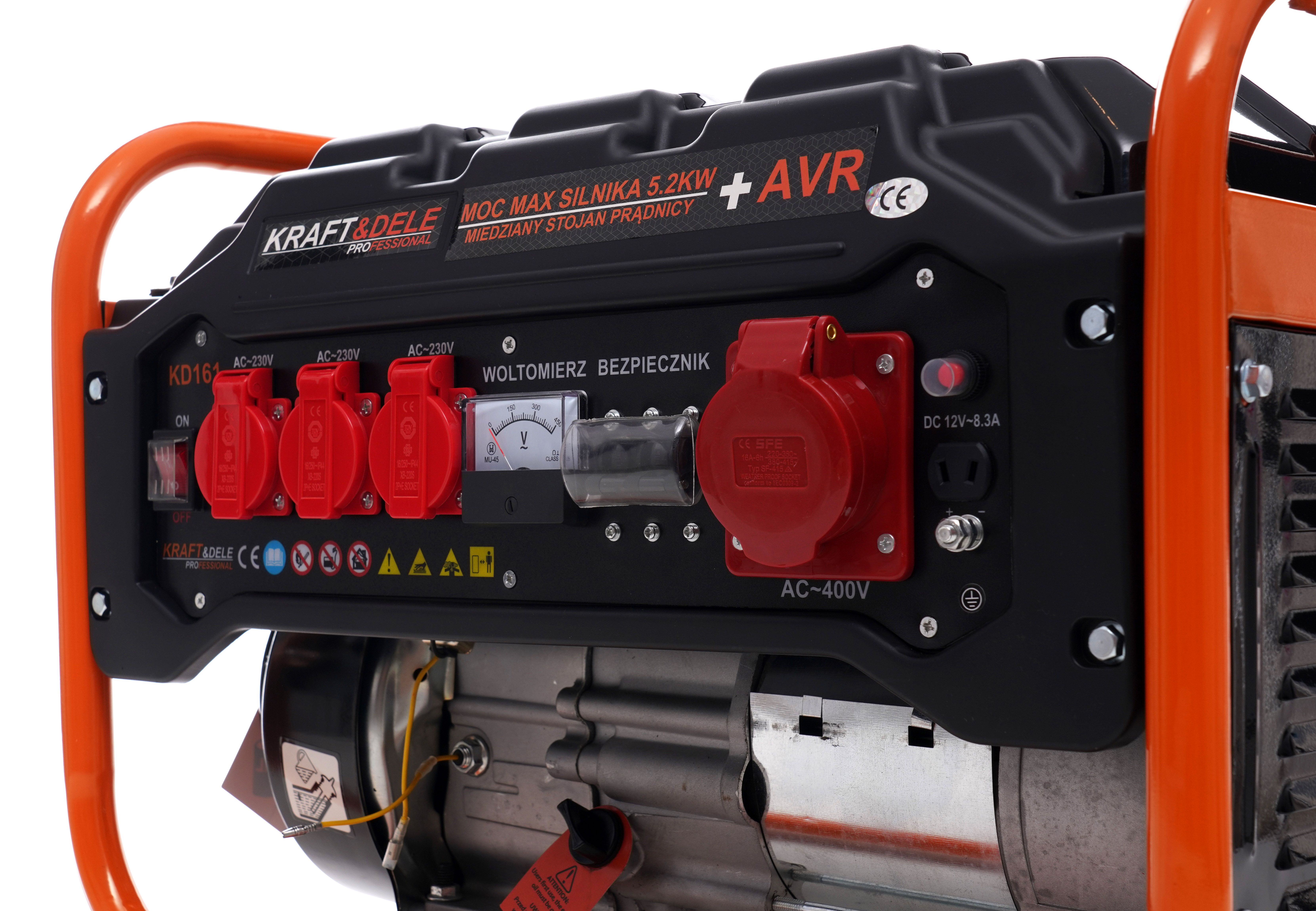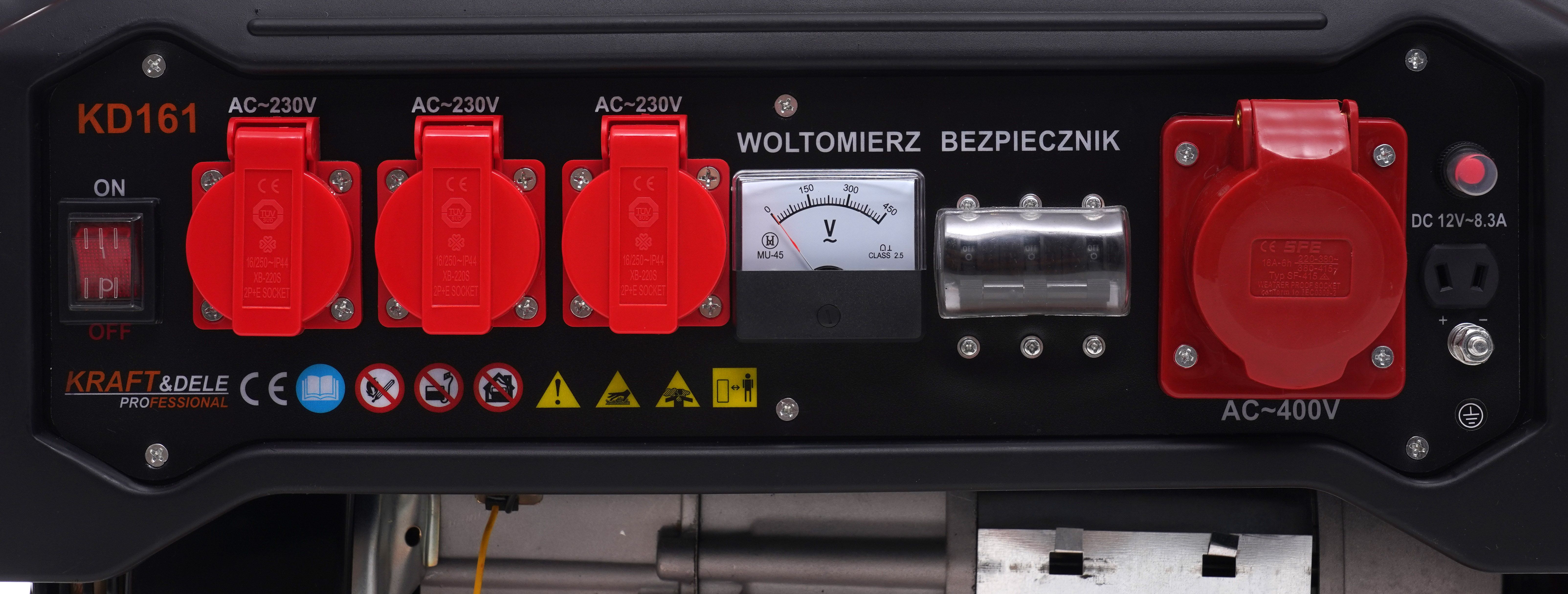 Woltomierz i wskaźnik paliwa ułatwiają kontrolę, a rozruch ręczny pozwala uruchomić agregat prądotwórczy KD161 bez dodatkowej infrastruktury.