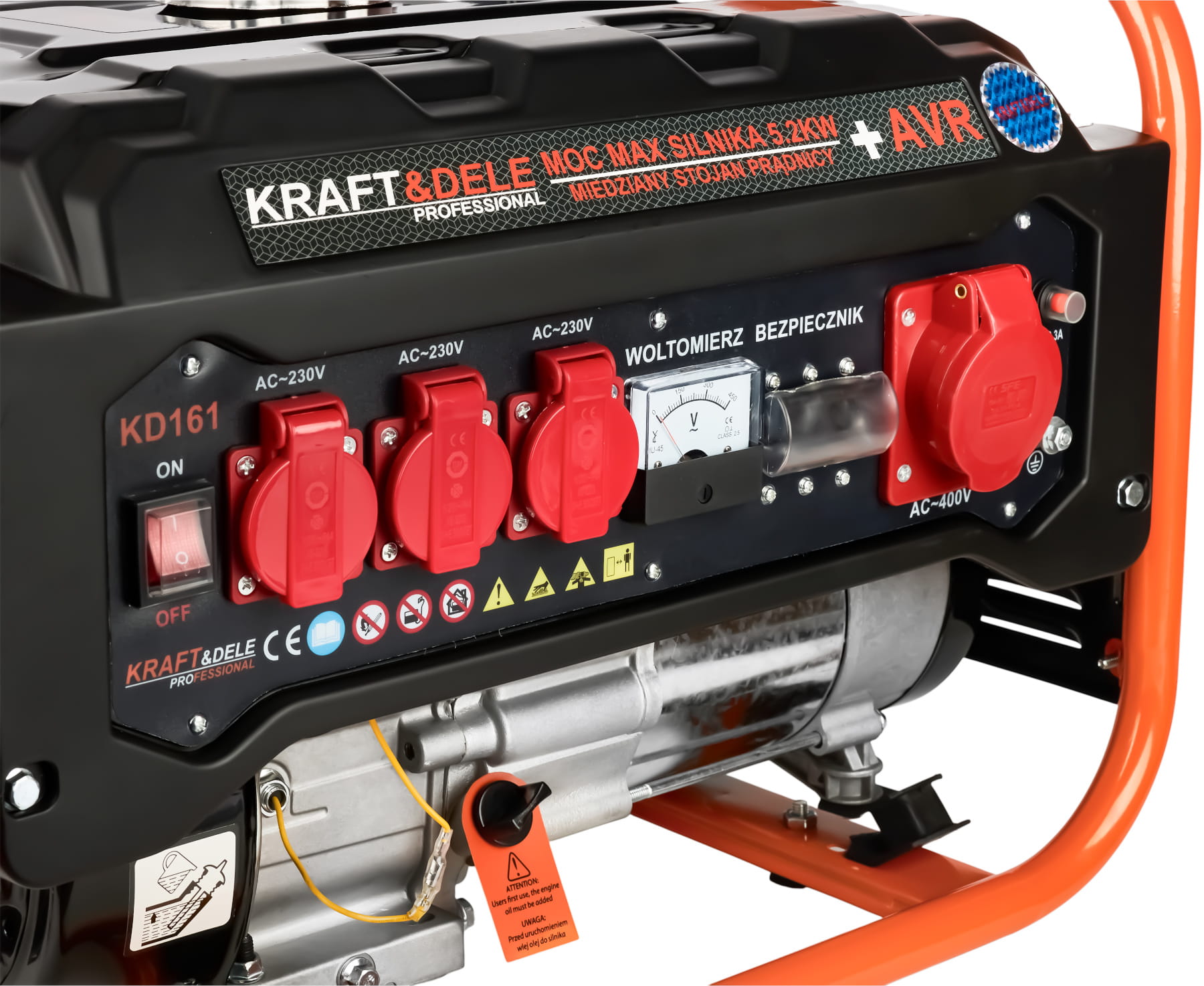 KD161 to benzynowy agregat prądotwórczy z silnikiem 4-suwowym chłodzonym powietrzem, przeznaczony do zasilania urządzeń jedno- i trójfazowych. Miedziane uzwojenie prądnicy oraz technologia automatycznej regulacji obrotów przekładają się na stabilną pracę i obniżone zużycie paliwa w warunkach zmiennego obciążenia.