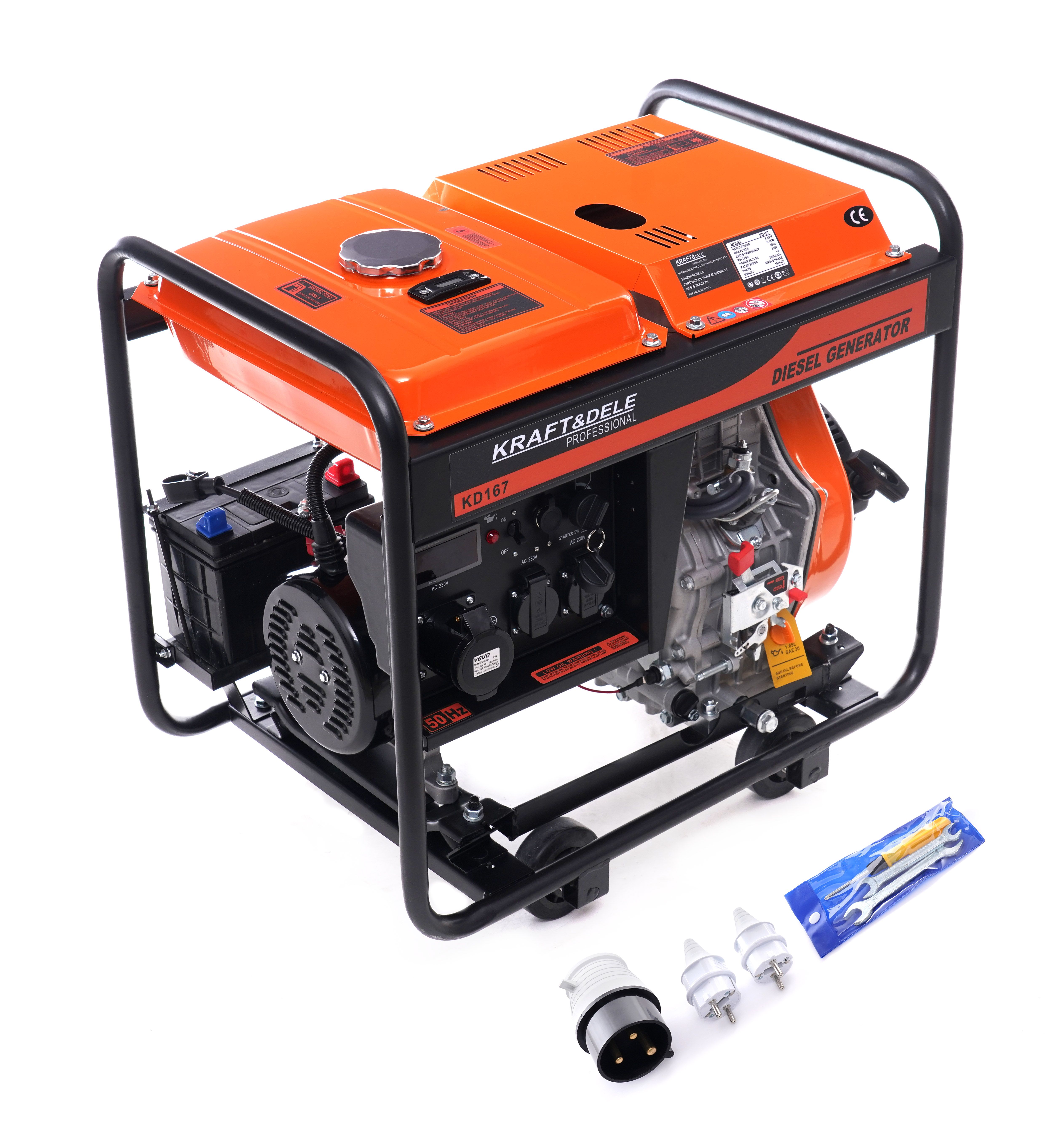 Agregat prądotwórczy 6kW / 230V Kraft&Dele KD167 to jednofazowy agregat prądotwórczy do zasilania 230V/50Hz, zaprojektowany z myślą o pracy awaryjnej i mobilnej. Jeśli szukasz rozwiązania z miedzianą prądnicą, regulacją pracy pod obciążenie oraz wygodnym rozruchem ręcznym i elektrycznym, model KD167 będzie rozsądnym wyborem do zastosowań domowych i firmowych.