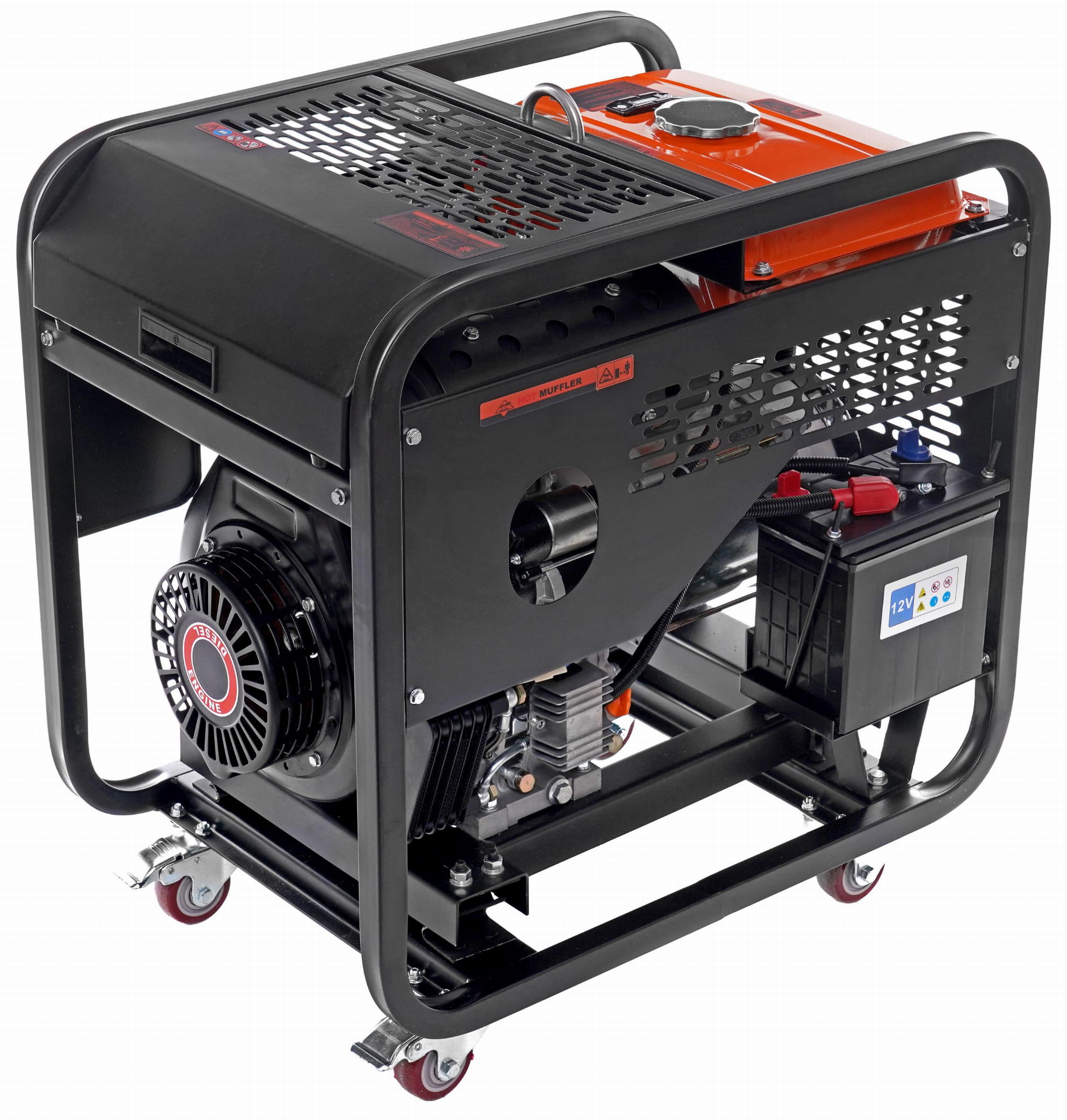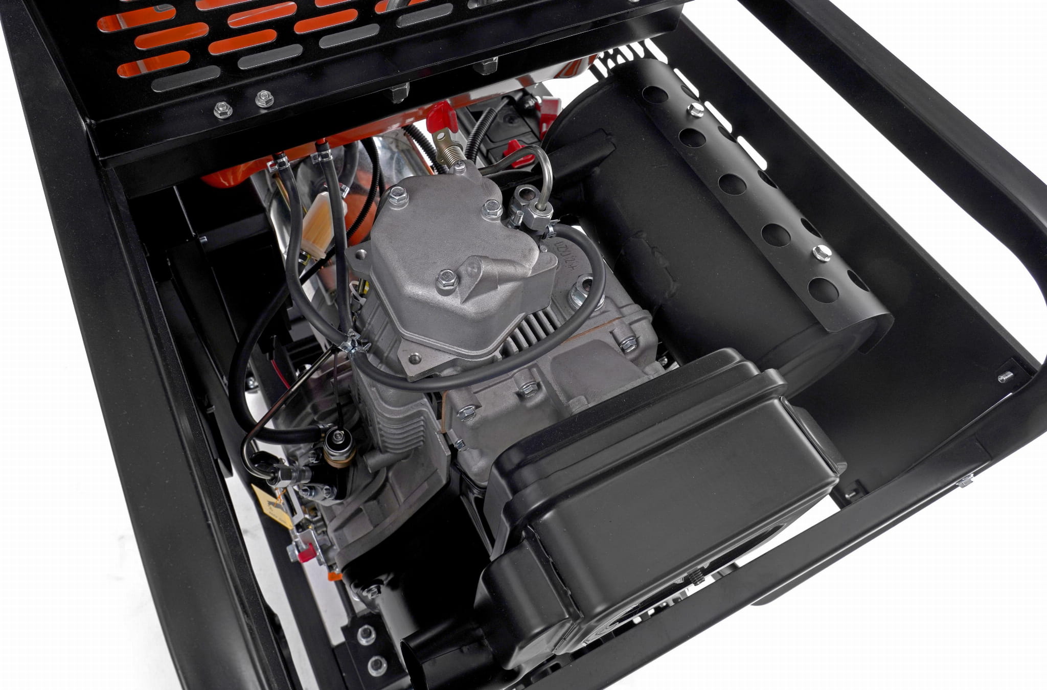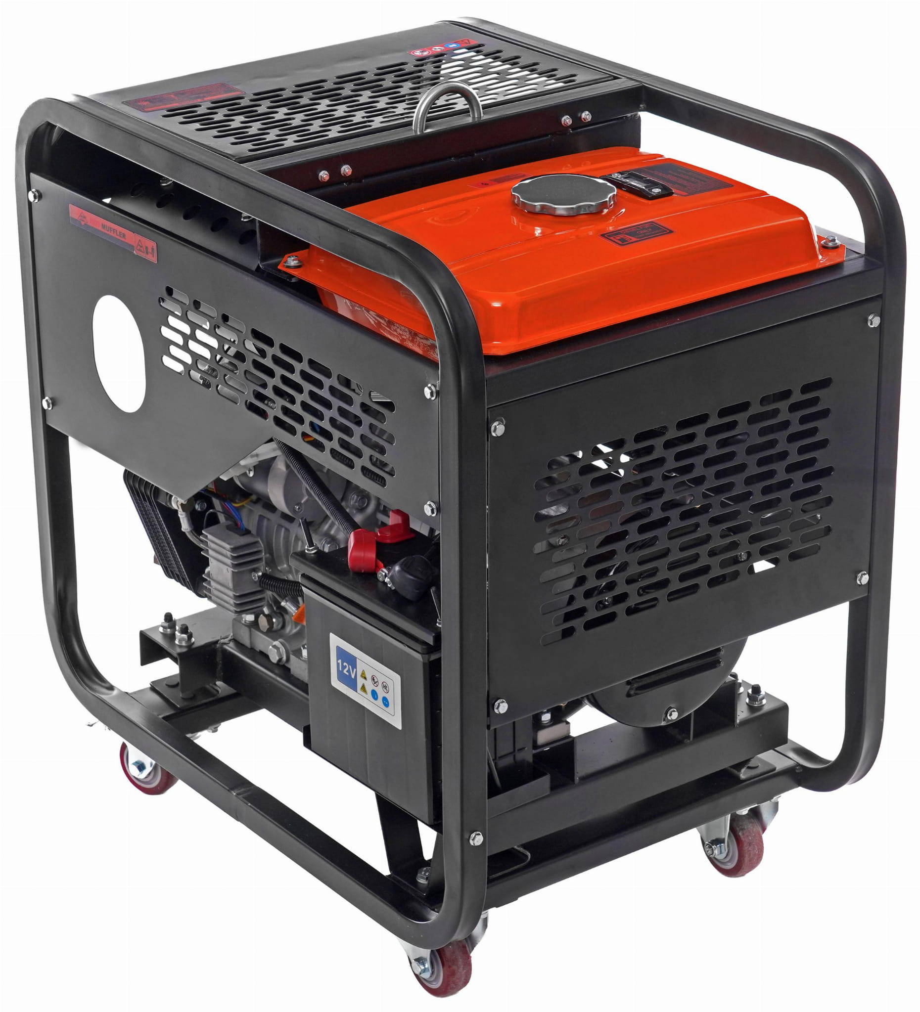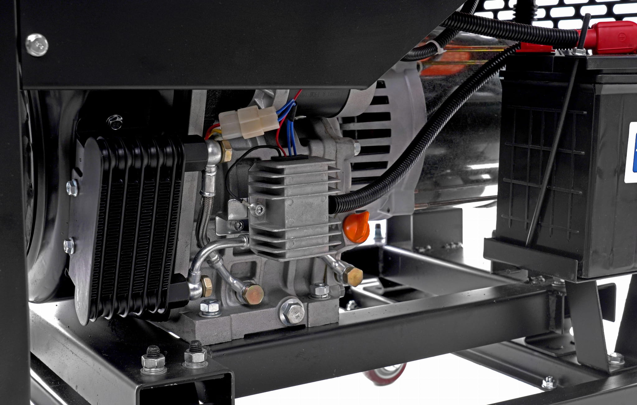 Oprócz standardowego rozruchu ręcznego (linka rozruchowa) agregat posiada rozruch elektryczny uruchamiany kluczykiem. Rama osadzona na gumowych poduszkach amortyzujących ogranicza przenoszenie drgań na podłoże i otoczenie — istotne w zastosowaniach stacjonarnych i mobilnych.