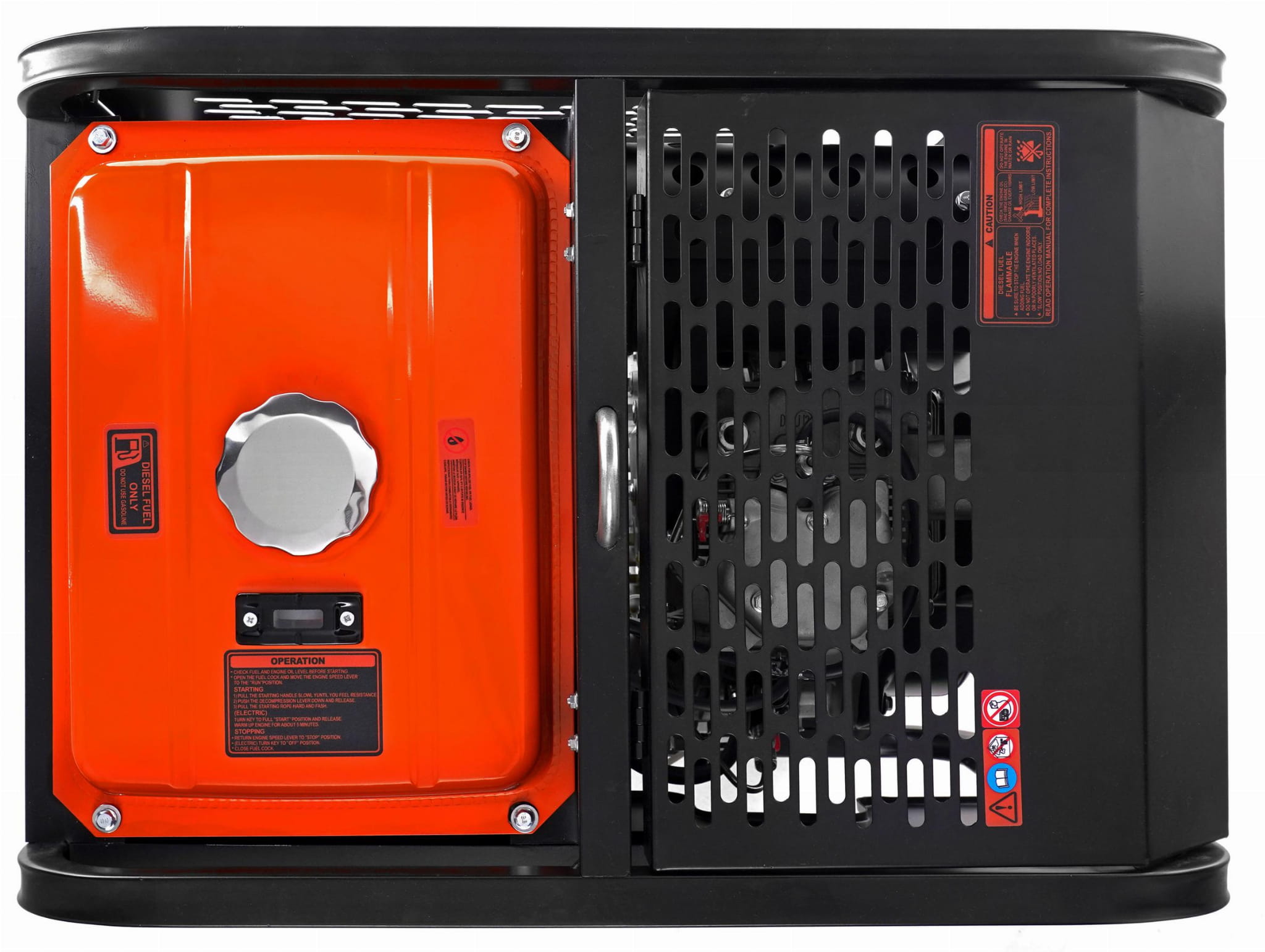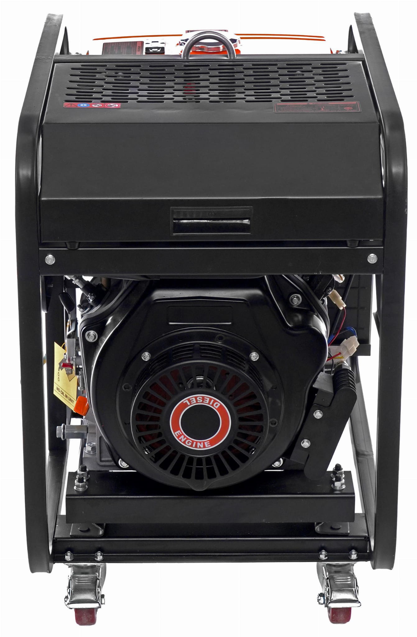 Przed pierwszym uruchomieniem należy sprawdzić poziom oleju silnikowego (pojemność 2,1 L) oraz upewnić się, że zbiornik jest napełniony olejem napędowym. Agregat należy uruchamiać i eksploatować wyłącznie na zewnątrz lub w dobrze wentylowanych pomieszczeniach — silnik diesla emituje tlenek węgla. Wymiana oleju silnikowego powinna być przeprowadzana zgodnie z harmonogramem określonym w instrukcji obsługi, typowo co 50–100 godzin pracy. Filtr powietrza wymaga regularnego czyszczenia, szczególnie w środowiskach zapylonych (place budowy, tereny rolnicze).