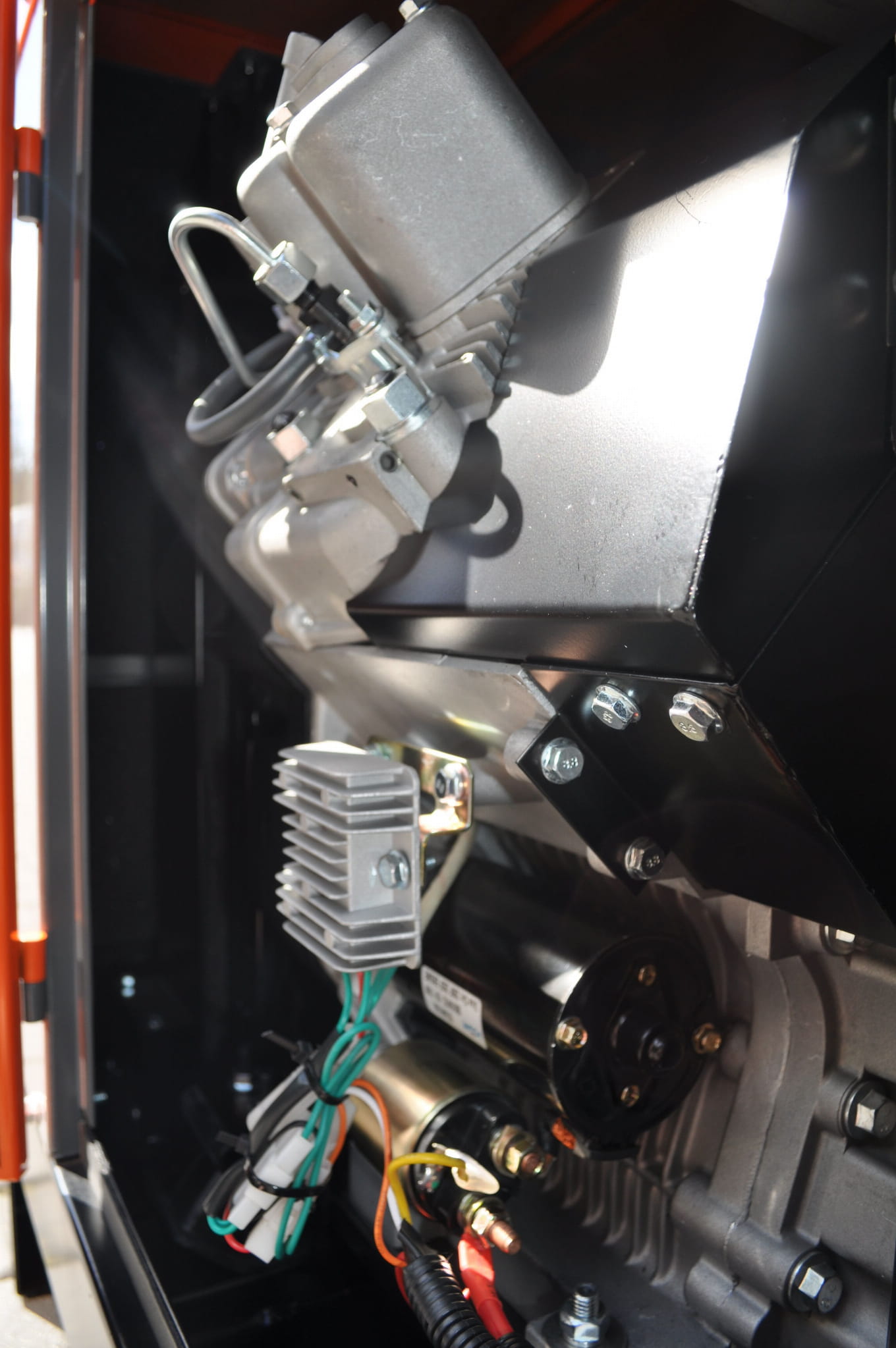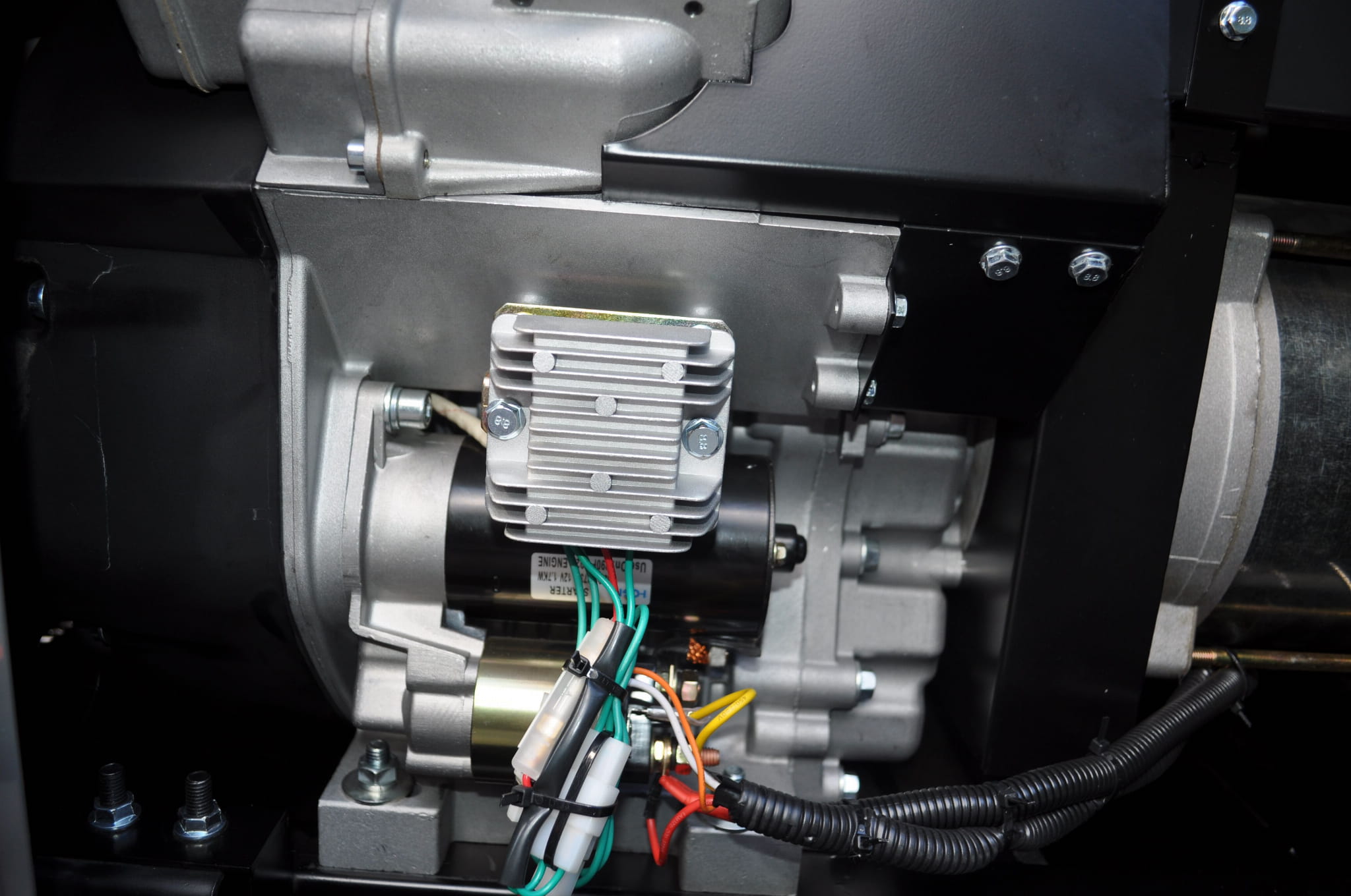 Przed uruchomieniem należy sprawdzić poziom oleju silnikowego (pojemność ok. 3,8 L) oraz paliwa w zbiorniku. Agregat uruchamiany jest elektrycznie za pomocą wbudowanego akumulatora 45 Ah. Czujnik poziomu oleju automatycznie wyłącza silnik w przypadku spadku oleju poniżej bezpiecznego poziomu, co chroni jednostkę napędową przed zatarciem.