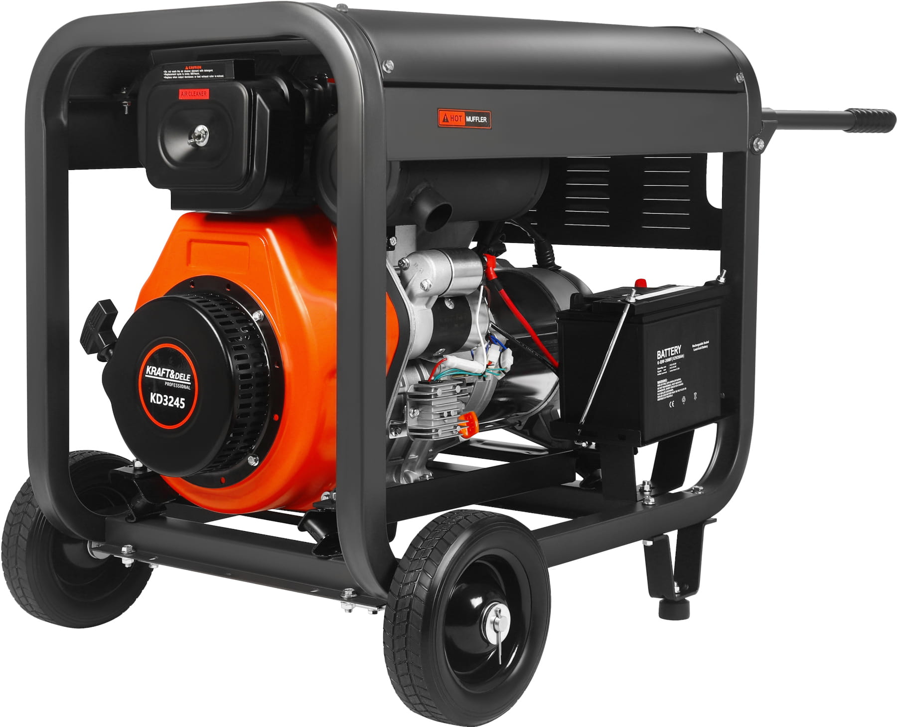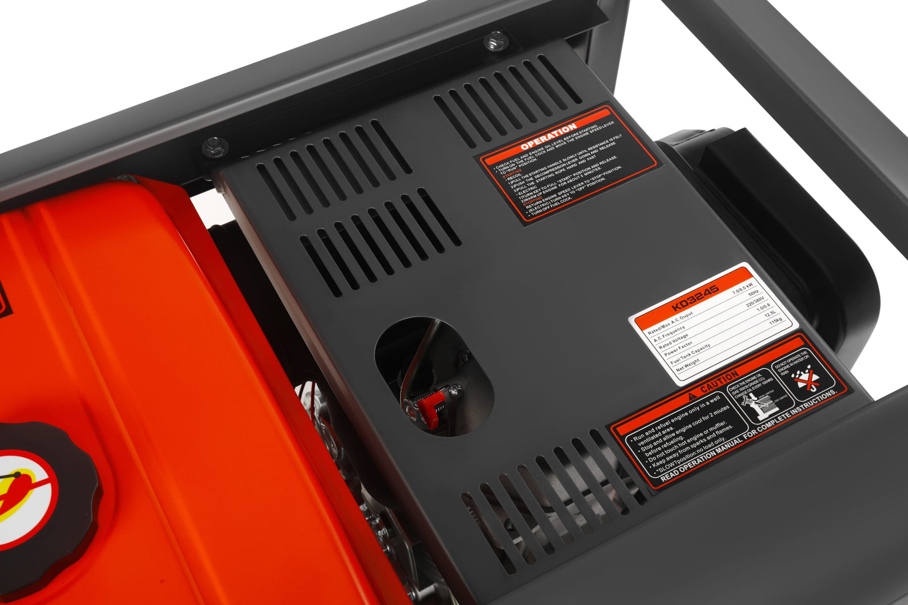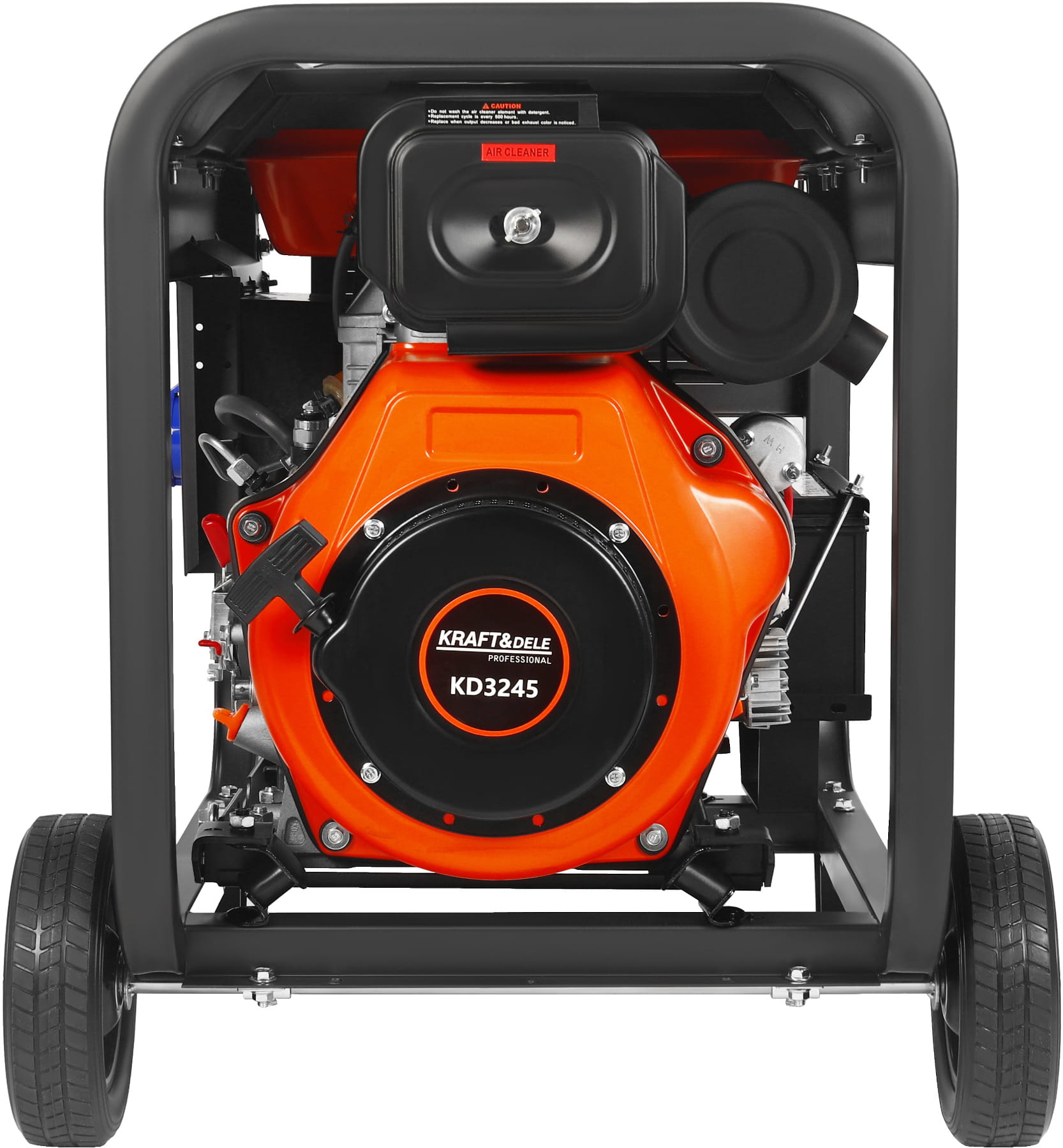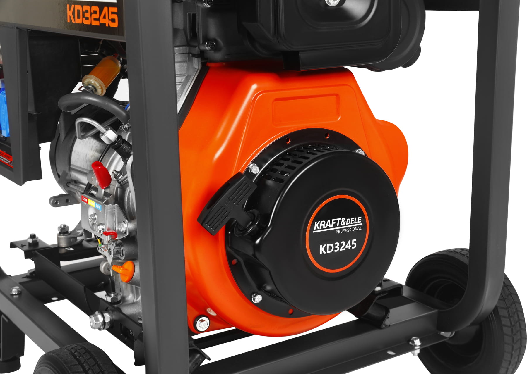 KD3245 to trójfazowy agregat prądotwórczy z silnikiem wysokoprężnym o pojemności 668 cc, przeznaczony do zasilania urządzeń jednofazowych i trójfazowych w warunkach braku dostępu do sieci energetycznej lub jako rezerwowe źródło zasilania. Konstrukcja opiera się na stalowej ramie z silnikiem montowanym na poduszkach antywibracyjnych i elektrycznym układem rozruchu.