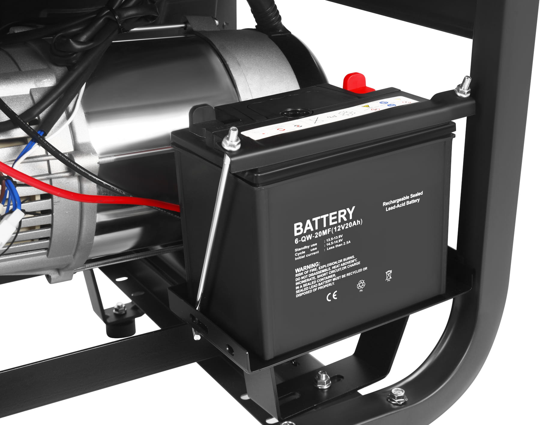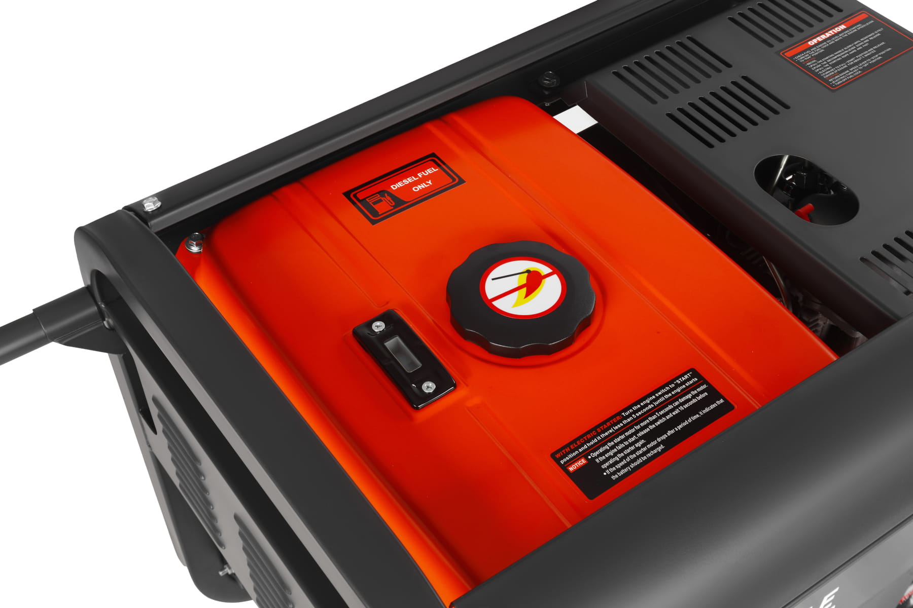Elektryczny układ rozruchu uruchamia agregat kluczykiem, bez konieczności użycia linki rozruchowej — istotne przy niskich temperaturach lub częstym uruchamianiu. Wbudowany woltomierz pozwala na bieżąco kontrolować napięcie generowane przez alternator, co umożliwia szybkie wykrycie nieprawidłowości przed podłączeniem wrażliwych urządzeń.