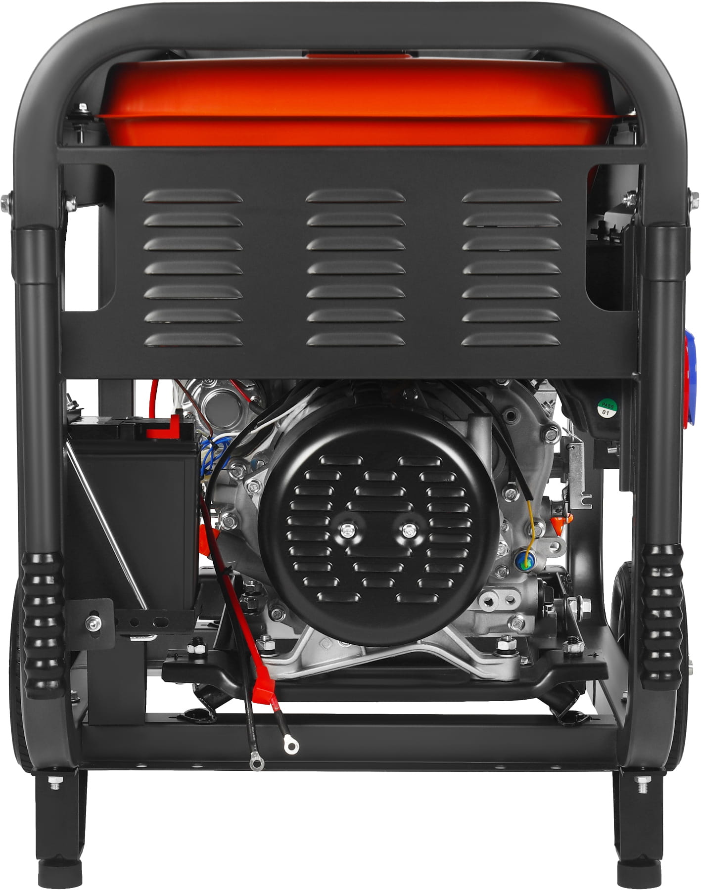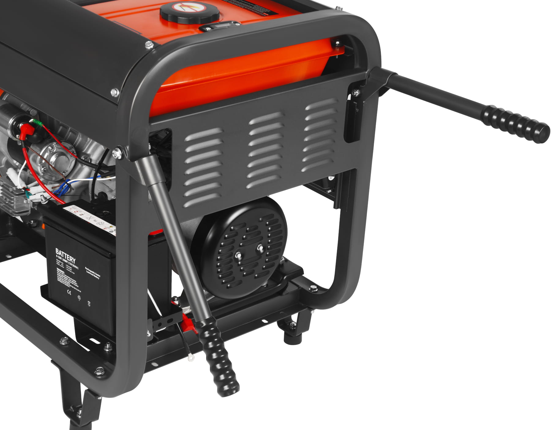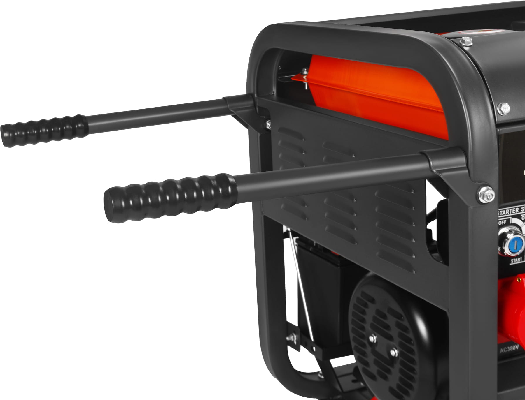 Masa 115 kg wymaga zastosowania środków ułatwiających transport — agregat wyposażono w duże koła oraz rozkładane rękojeści, które umożliwiają przemieszczanie przez jedną lub dwie osoby. Stalowa rama chroni podzespoły podczas transportu i pracy na nierównym podłożu. Wyłącznik awaryjny pozwala na natychmiastowe odcięcie zasilania w sytuacji zagrożenia.
