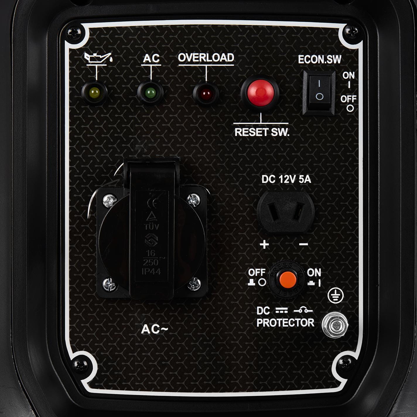 Agregat wyposażono we wskaźniki napięcia, przeciążenia oraz poziomu oleju. Zabezpieczenie przed przeciążeniem chroni zarówno podłączone urządzenia, jak i sam generator przed skutkami nadmiernego obciążenia. Niski poziom oleju sygnalizowany jest wskaźnikiem, co zapobiega pracy silnika bez smarowania.