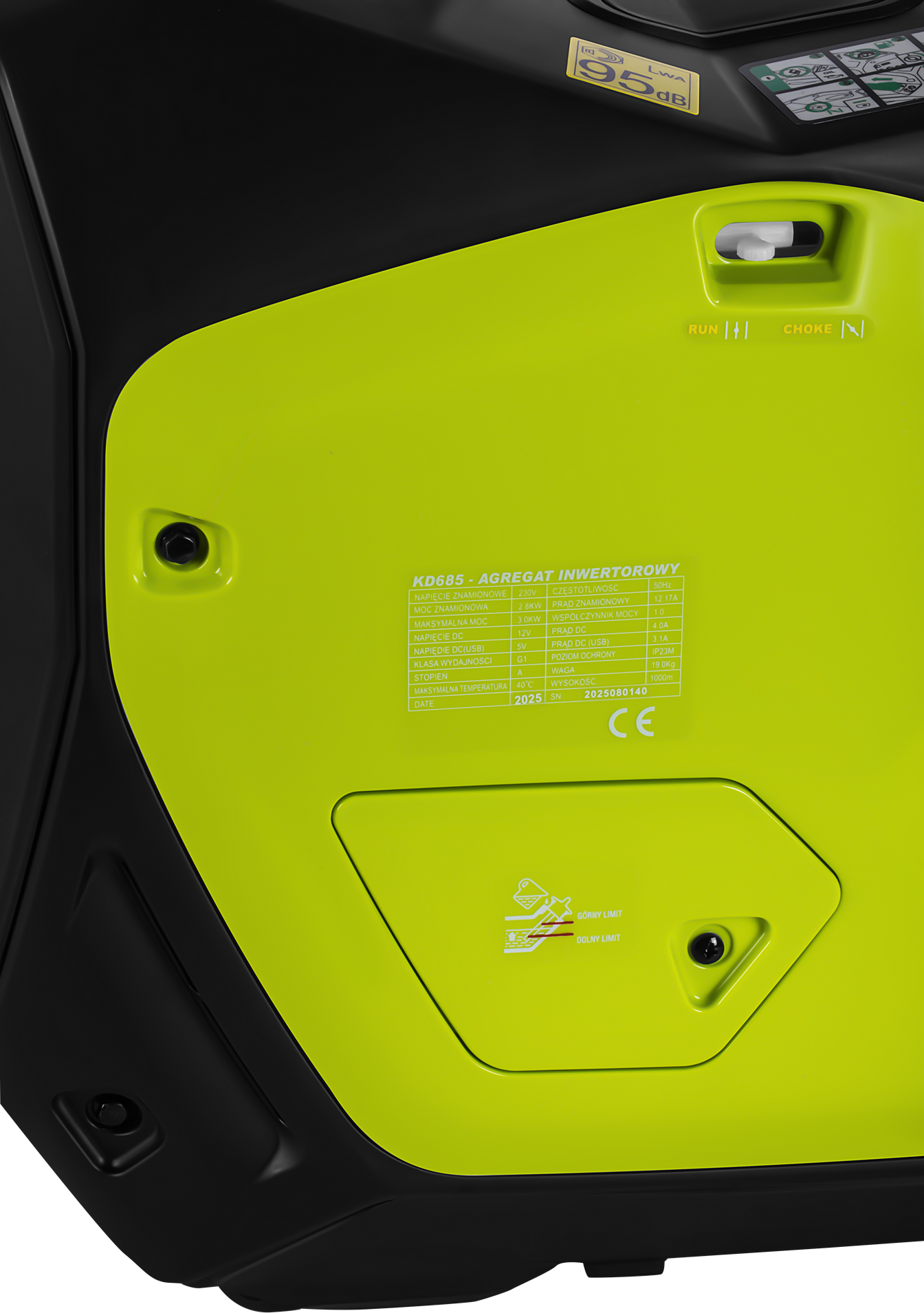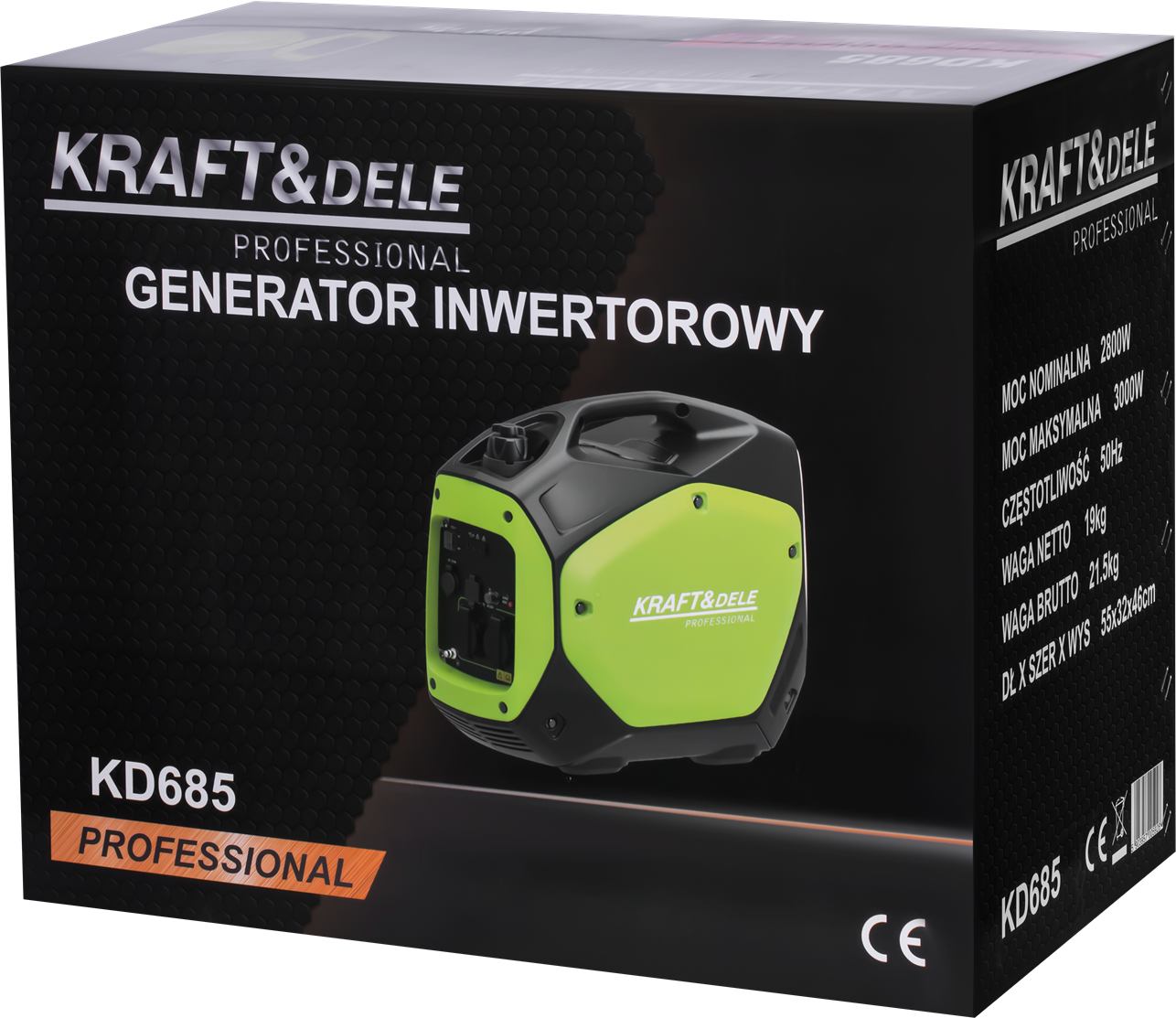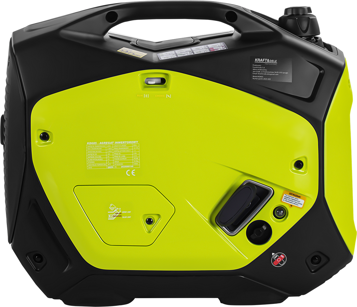KD685 to benzynowy agregat inwertorowy z silnikiem jednocylindrowym OHV, generujący czystą sinusoidę napięcia 230 V / 50 Hz. Technologia inwertorowa z mikroprocesorowym sterowaniem przepustnicą pozwala bezpiecznie zasilać wrażliwą elektronikę przy jednoczesnym ograniczeniu zużycia paliwa i poziomu hałasu. Urządzenie waży 22 kg i jest wyposażone w rozruch elektryczny.