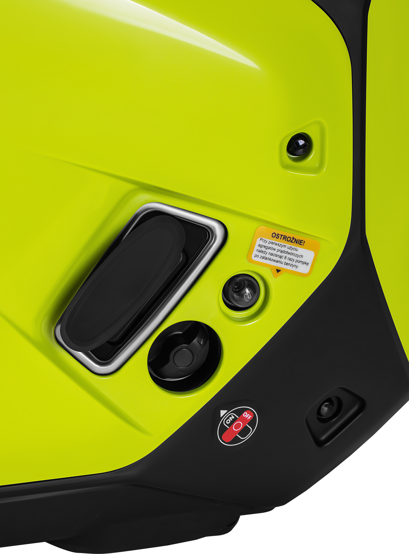 Agregat należy eksploatować wyłącznie w miejscach dobrze wentylowanych lub na otwartym powietrzu — silnik spalinowy emituje tlenek węgla. Przy dłuższych przerwach w użytkowaniu (powyżej kilku tygodni) zaleca się opróżnienie zbiornika paliwa i gaźnika, aby zapobiec żywiczeniu się paliwa.
