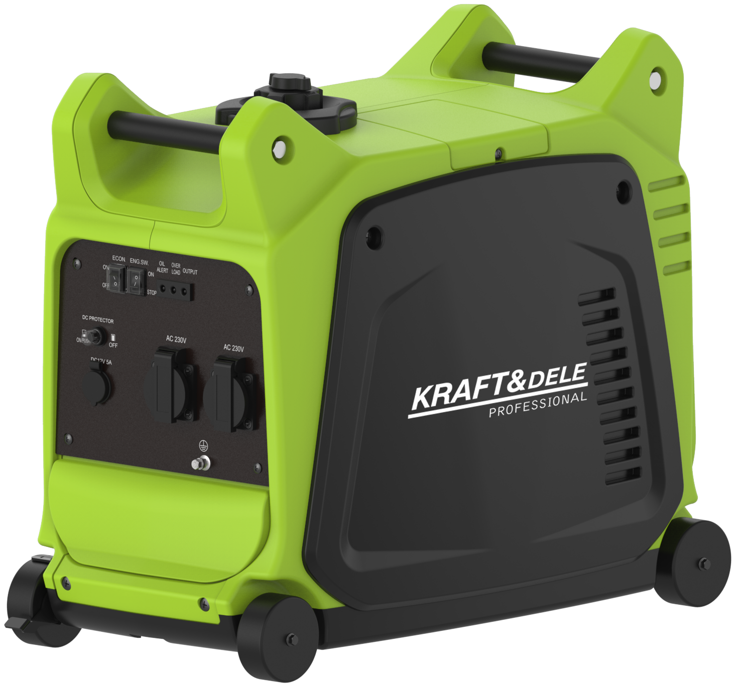 KD681 to jednofazowy agregat inwertorowy z silnikiem benzynowym 4-suwowym OHC, generujący napięcie przemienne 230 V o czystej sinusoidzie. Technologia inwerterowa odróżnia go od klasycznych generatorów — prąd jest najpierw prostowany, a następnie precyzyjnie przekształcany, co eliminuje odkształcenia i czyni go bezpiecznym dla urządzeń elektronicznych wrażliwych na jakość zasilania.