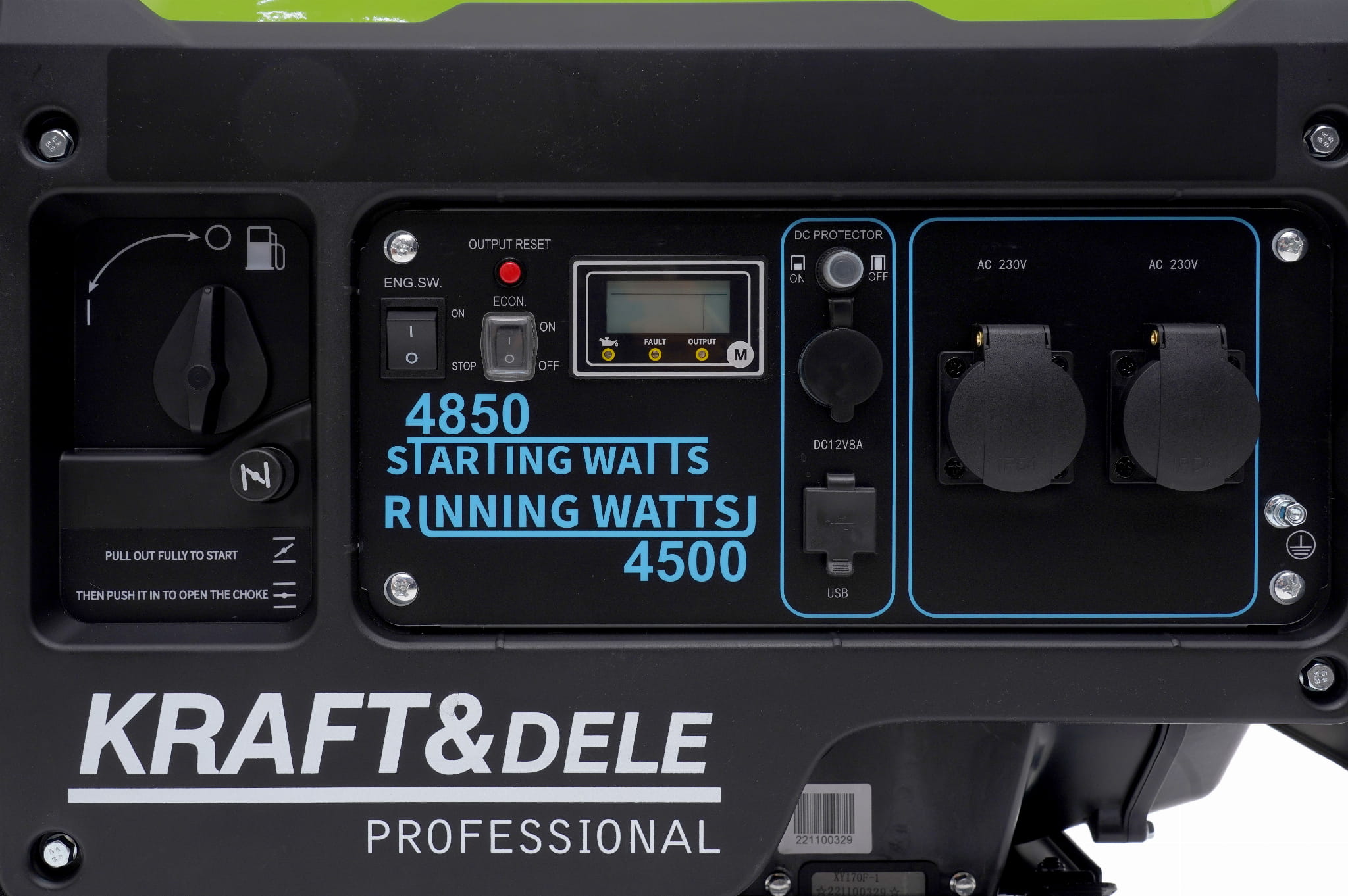 Agregat wyposażono we wskaźniki napięcia wyjściowego, poziomu oleju oraz przeciążenia. Zabezpieczenia przed pracą na sucho (niski poziom oleju) i przeciążeniem chronią silnik przed uszkodzeniem, wydłużając żywotność urządzenia bez konieczności ciągłego nadzoru.