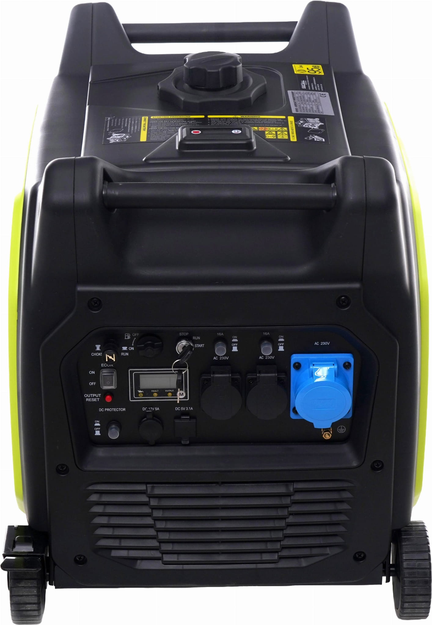 Agregat wyposażono we wskaźniki napięcia wyjściowego, przeciążenia oraz poziomu oleju silnikowego. Wskaźnik poziomu oleju chroni silnik przed pracą przy niewystarczającym smarowaniu — jednej z głównych przyczyn uszkodzeń mechanicznych. Ochrona przed przeciążeniem zabezpiecza zarówno generator, jak i podłączone urządzenia.