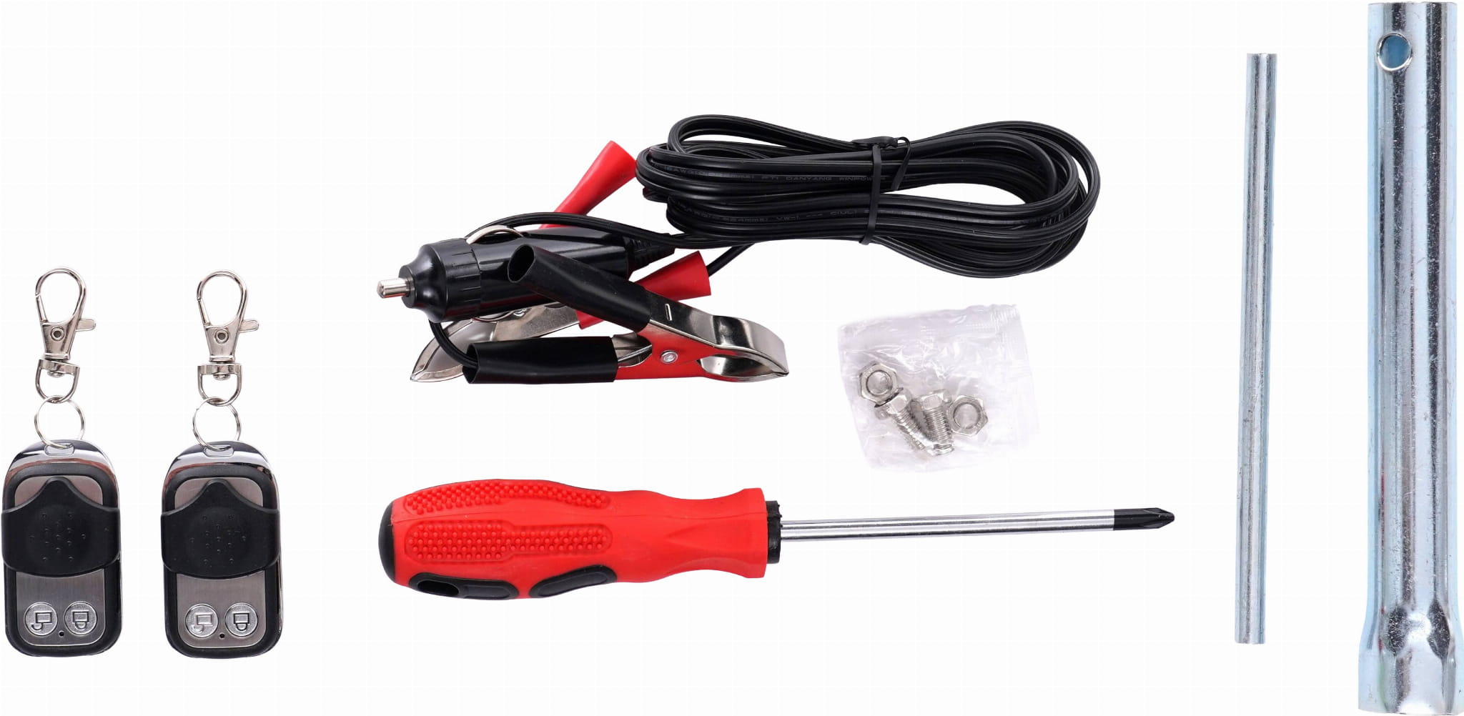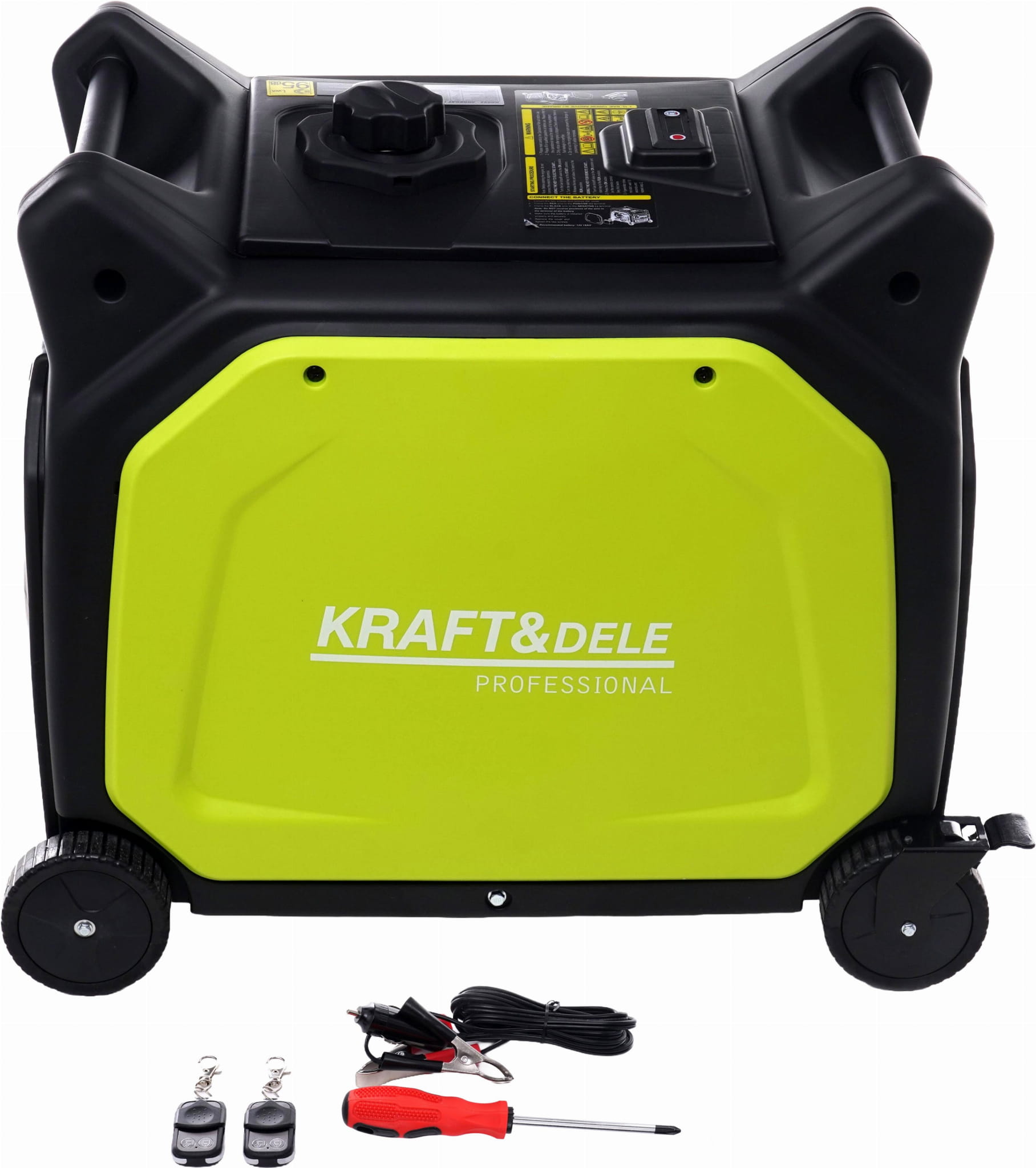 W skład zestawu wchodzą: agregat prądotwórczy KD682, 2 piloty, klucz do świecy, śrubokręt krzyżowy, śrubki i nakrętki montażowe, kable z gniazdem do zapalniczki samochodowej (wyjście 12 V DC) oraz instrukcja obsługi w języku polskim.