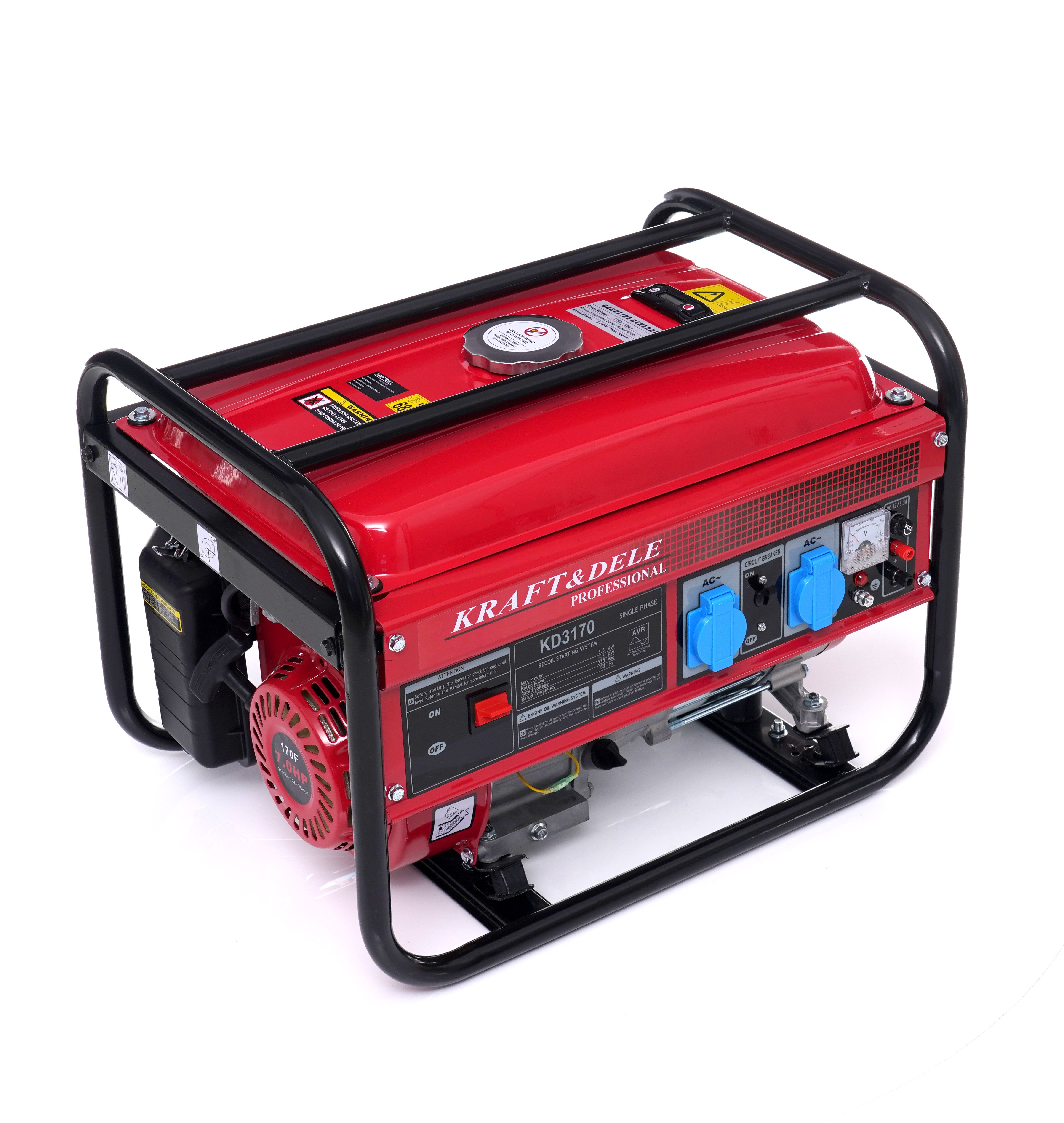 Agregat prądotwórczy jednofazowy 3,3 / 3,5 kW KD3170X KRAFT&DELE jest dobrym wyborem, gdy potrzebujesz zasilania 230V w miejscu bez dostępu do sieci lub jako zapasowe źródło energii. Dzięki przenośnej konstrukcji łatwo dopasujesz go do pracy w terenie i przy domowych zadaniach.