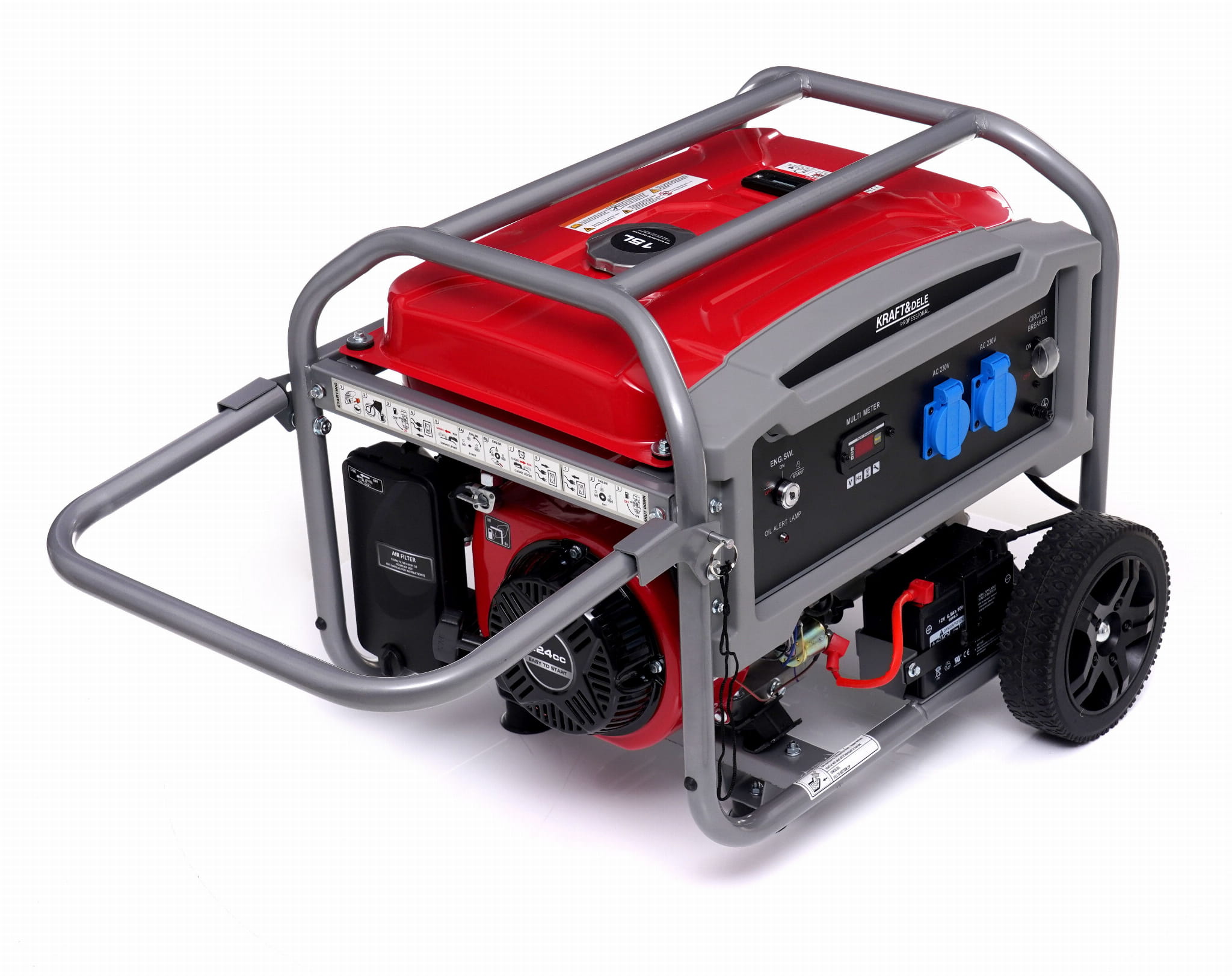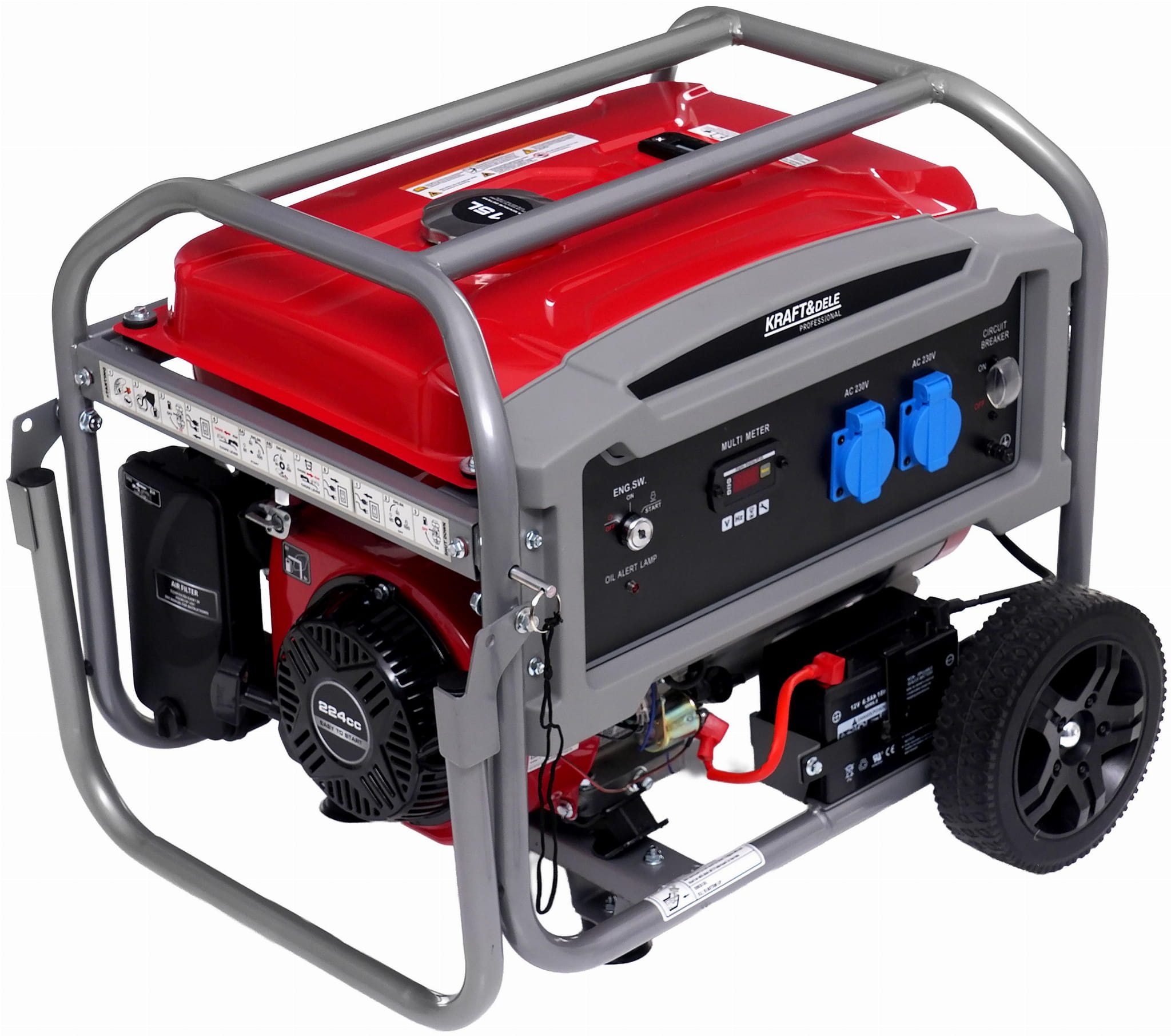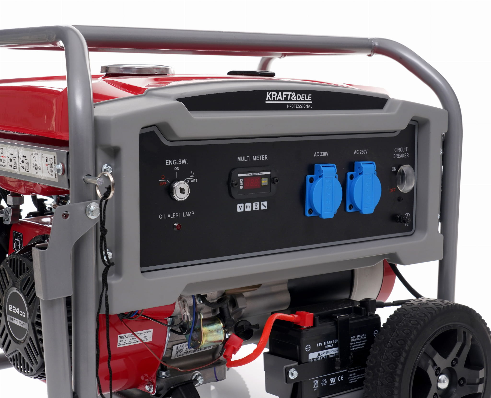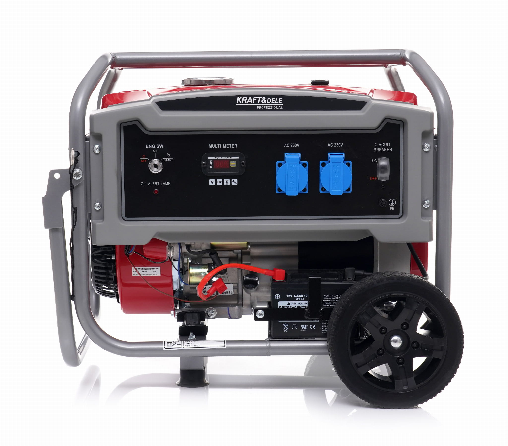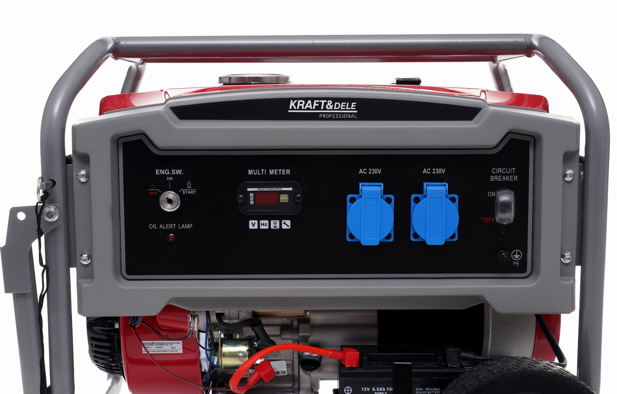 KD633 to przenośny agregat prądotwórczy jednofazowy marki Kraft&Dele, wyposażony w 4-suwowy silnik spalinowy OHV z chromowanym tłokiem. Urządzenie generuje prąd zmienny 230 V i zostało zaprojektowane w otwartej ramie (Open Frame), co redukuje masę i gabaryty w porównaniu z klasycznymi obudowami zamkniętymi. Agregat obsługuje zarówno rozruch mechaniczny (linką), jak i elektryczny.