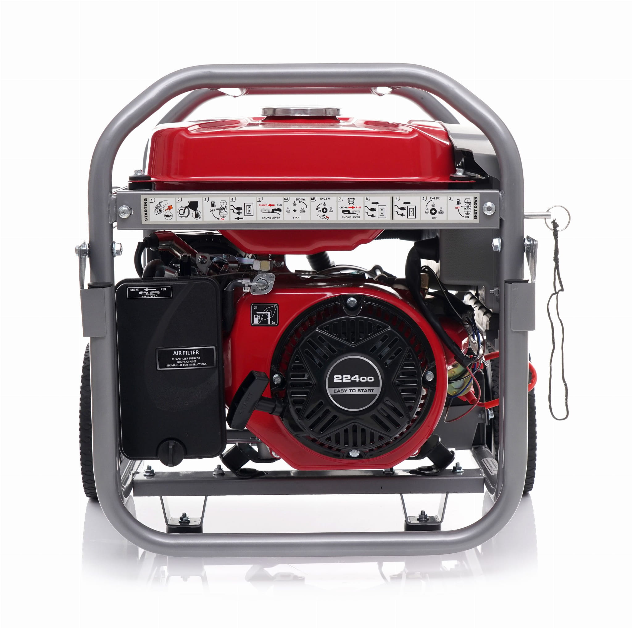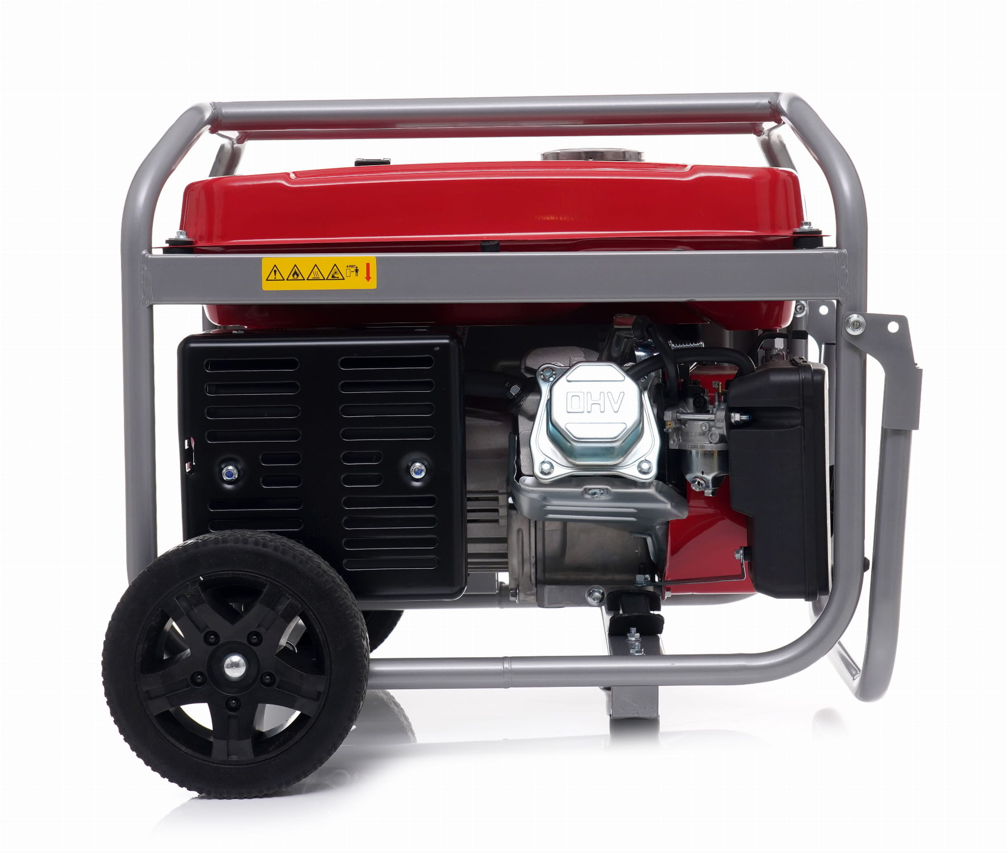 Agregat wyposażono w rozruch mechaniczny (linka rozruchowa) oraz elektryczny, co zwiększa wygodę uruchamiania, szczególnie w niskich temperaturach. Kółka w zestawie ułatwiają przemieszczanie urządzenia o masie około 57 kg po terenie budowy lub posesji.