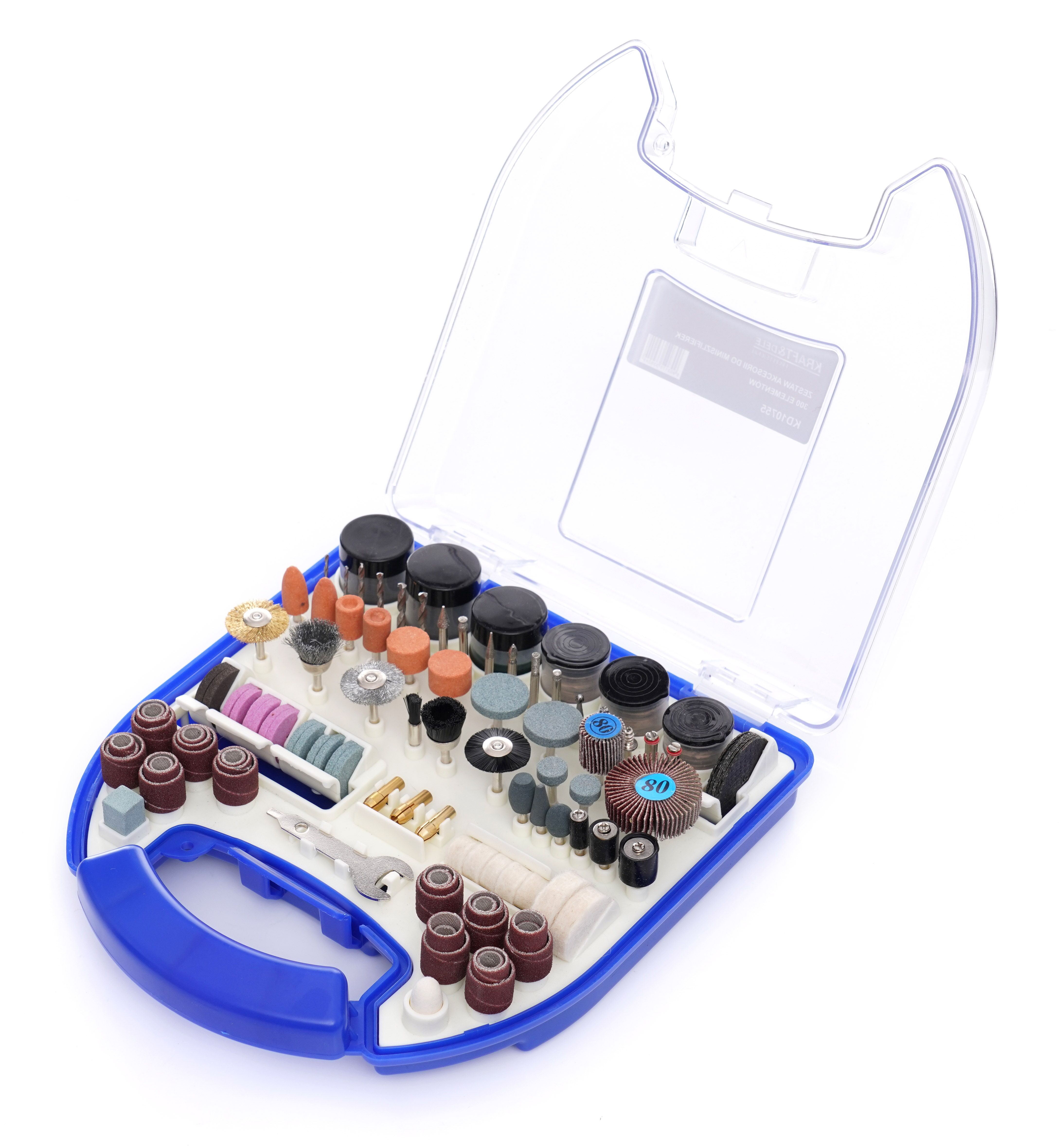 Akcesoria do mini szlifierki 300el. KD10755 to kompletny zestaw osprzętu do miniszlifierki, który pozwala szybko dobrać końcówkę do zadania bez szukania pojedynczych elementów. Sprawdza się zarówno w warsztacie, jak i przy pracach domowych: od grawerowania po cięcie i polerowanie.