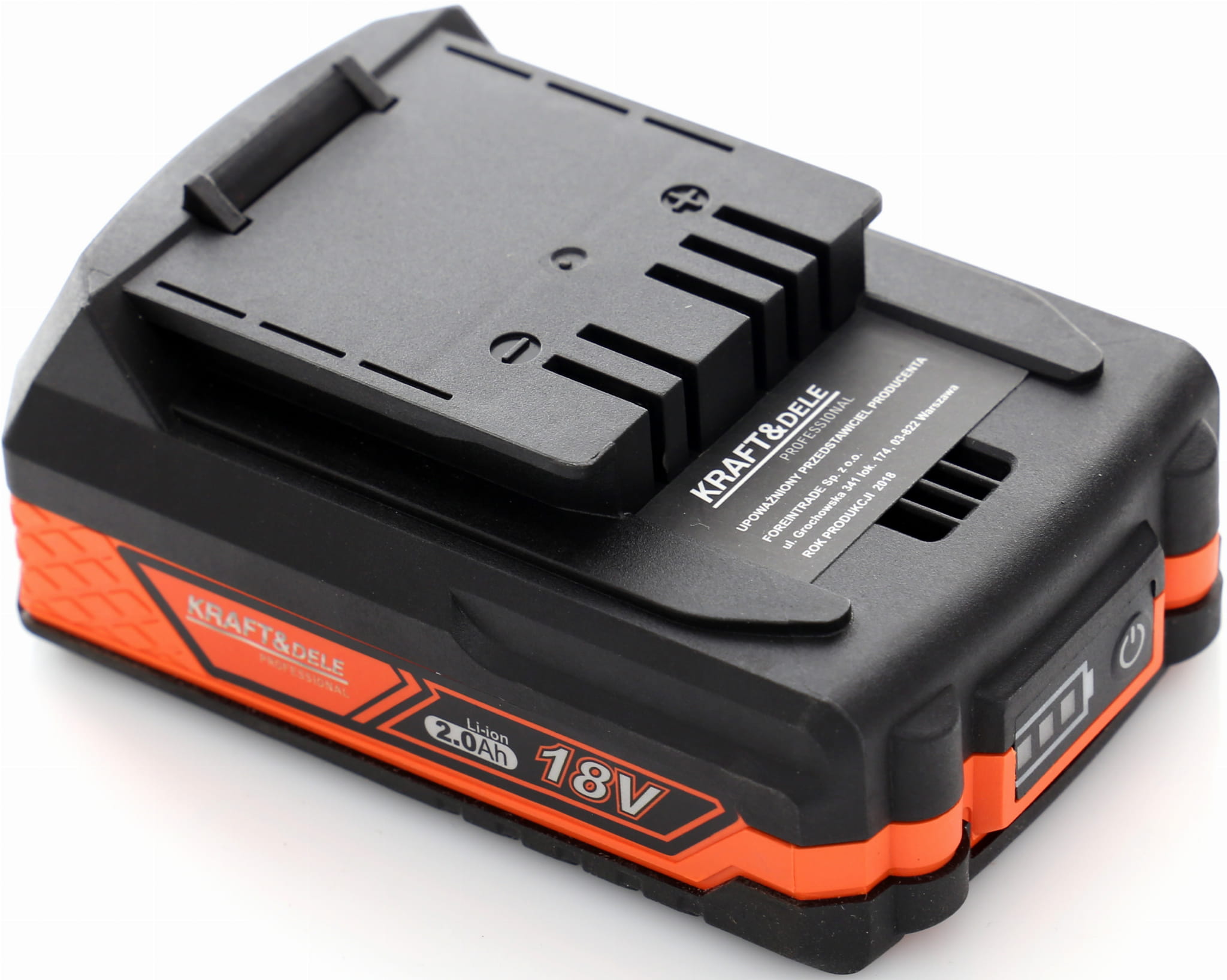 KD1778 to akumulator litowo-jonowy 18V o pojemności 2Ah, przeznaczony do elektronarzędzi z linii PROSERIES marki KRAFT&DELE. Zapewnia mobilność pracy bez przewodów i jest kompatybilny ze wszystkimi urządzeniami tej serii, co pozwala na stosowanie jednego akumulatora w wielu narzędziach.