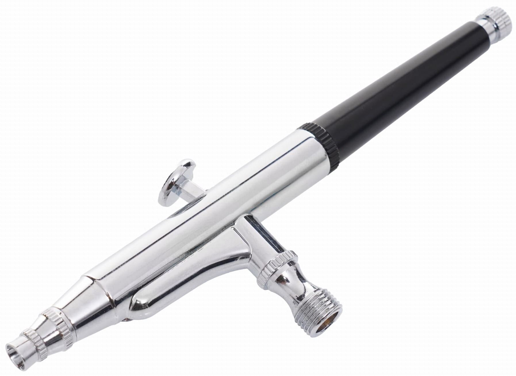 Spust aerografu steruje jednocześnie przepływem powietrza (nacisk) i ilością podawanej farby (ruch wsteczny). Dzięki temu możliwa jest płynna zmiana grubości linii i intensywności krycia w trakcie pracy, bez przerywania malowania.