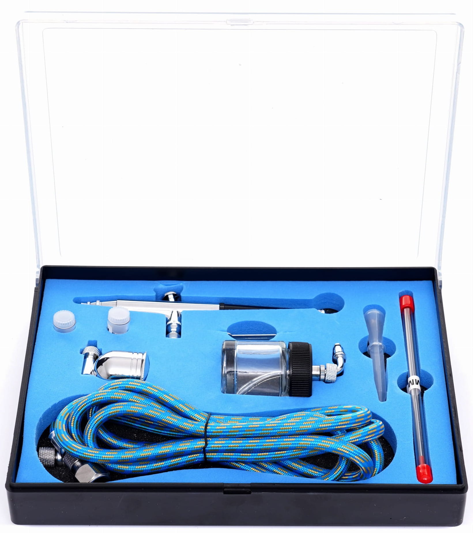 W zestawie znajdują się pojemniki o pojemności 7 cc i 22 cc. Mniejszy pojemnik stosuje się przy pracach detalicznych z ograniczoną ilością farby, większy — przy malowaniu rozleglejszych powierzchni lub gdy konieczna jest ciągłość pracy bez uzupełniania.