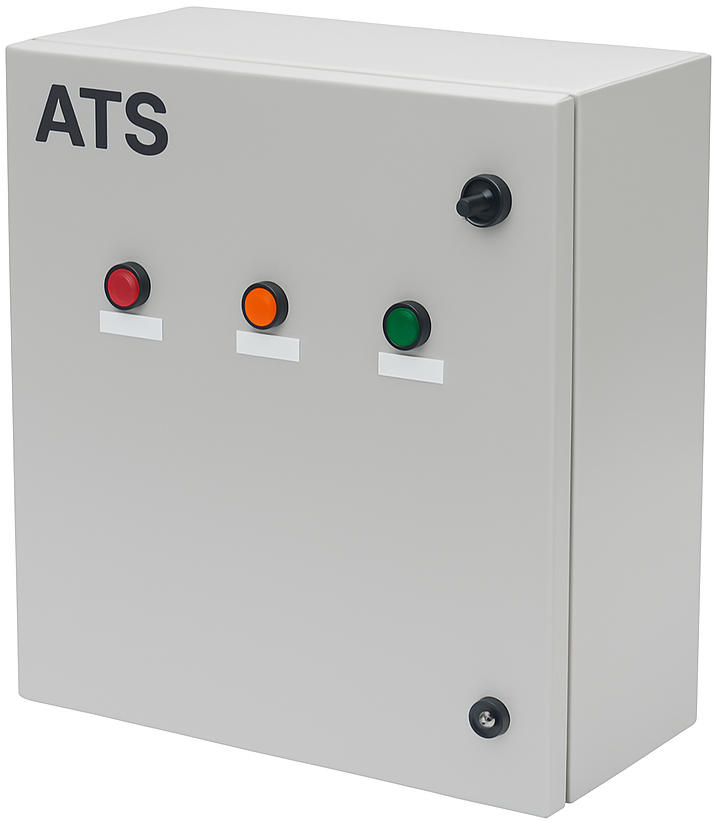 KD694-ATS to dedykowany moduł automatycznego przełączania zasilania (ATS — Automatic Transfer Switch) przeznaczony wyłącznie do agregatu prądotwórczego KD694. Układ monitoruje dostępność zasilania sieciowego i w przypadku jego zaniku automatycznie uruchamia agregat oraz przełącza obciążenie na zasilanie generatorowe bez konieczności ręcznej interwencji.