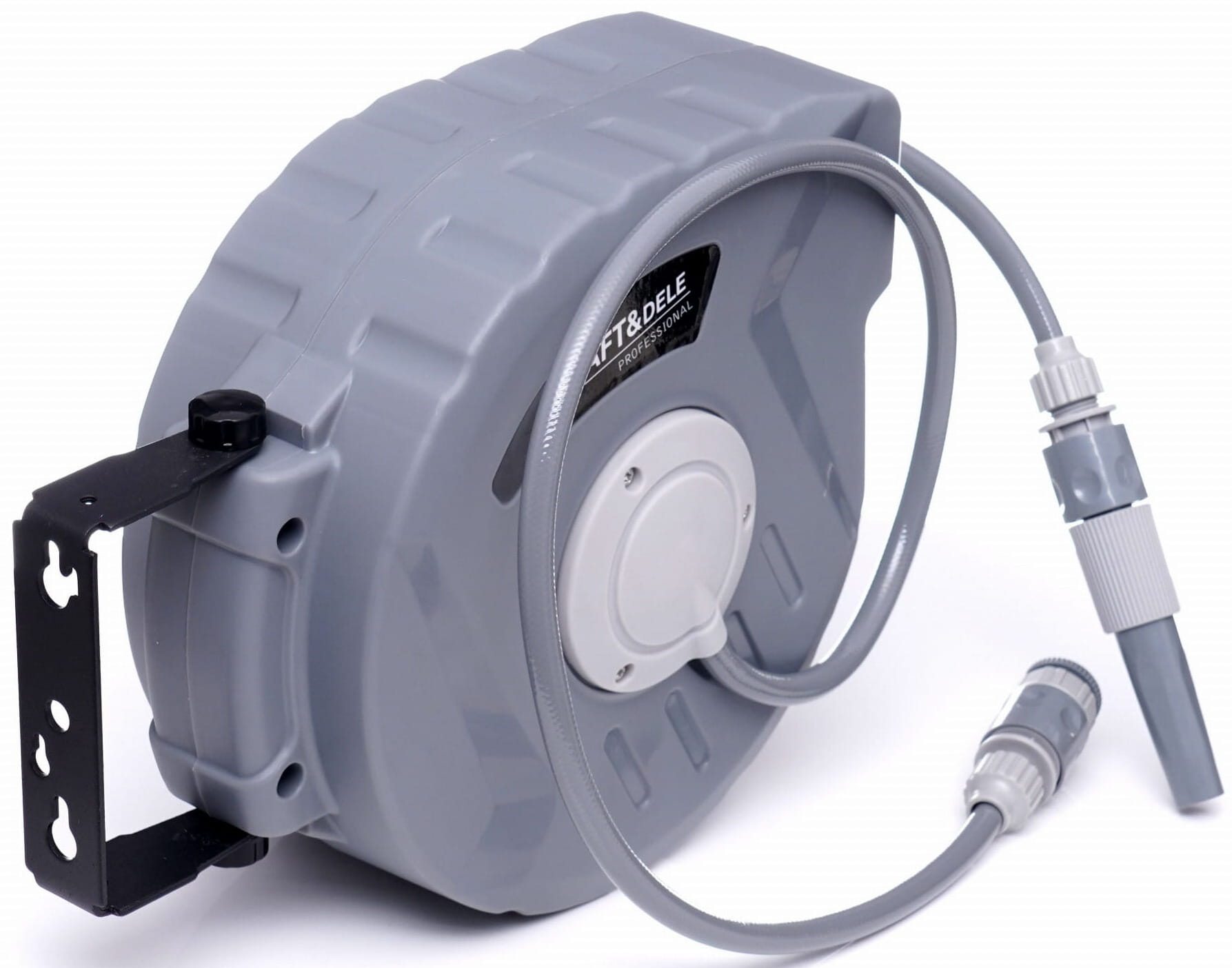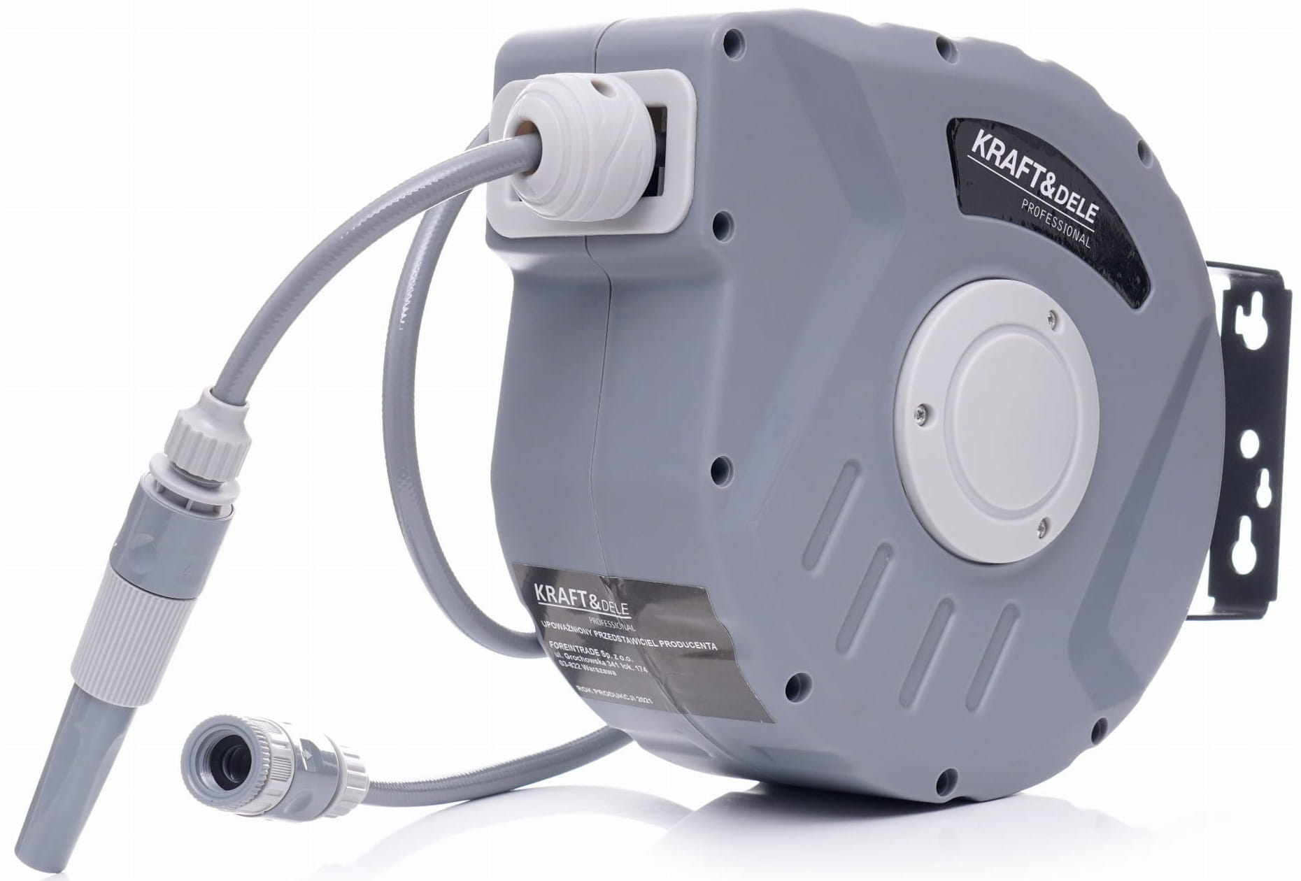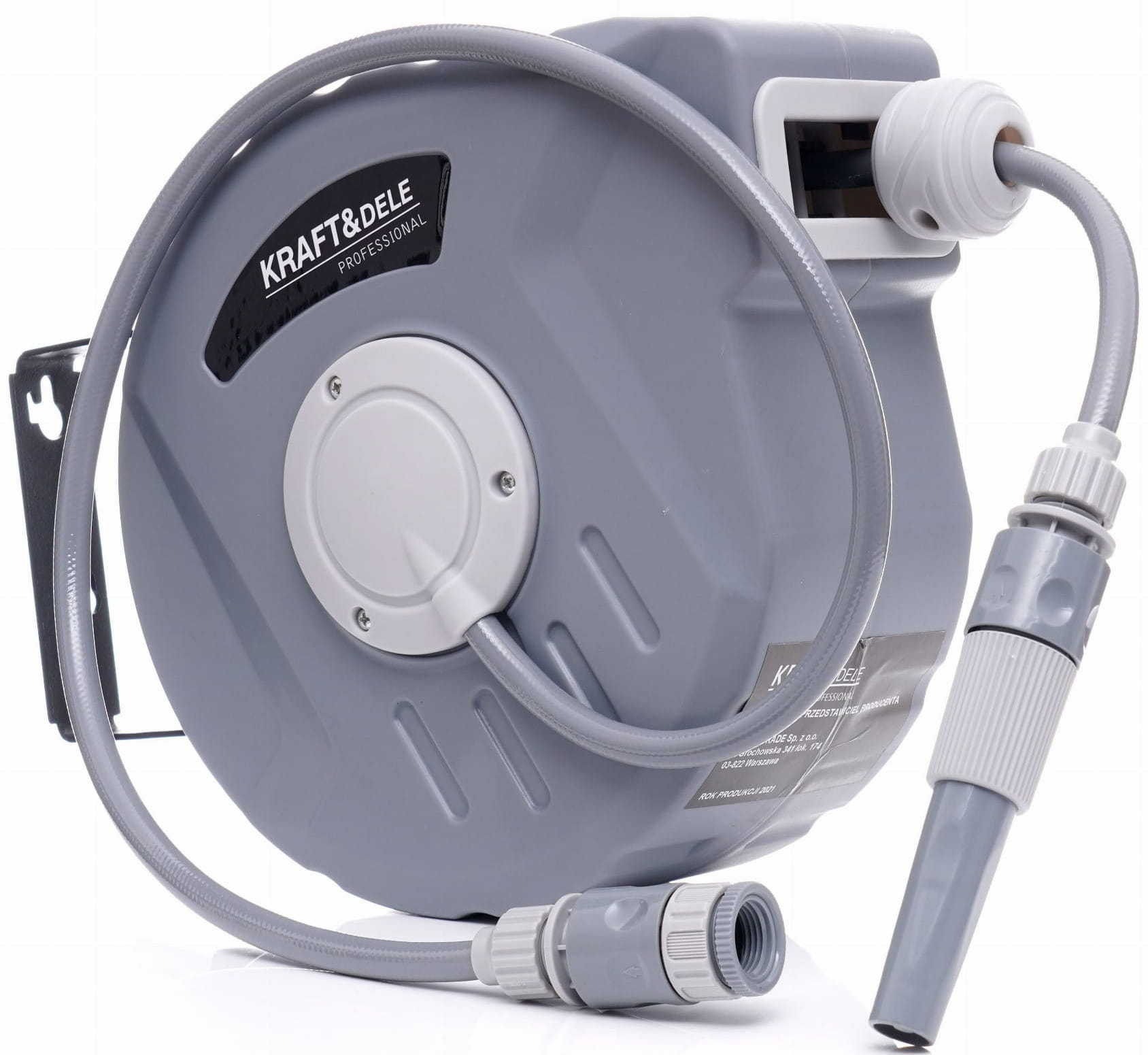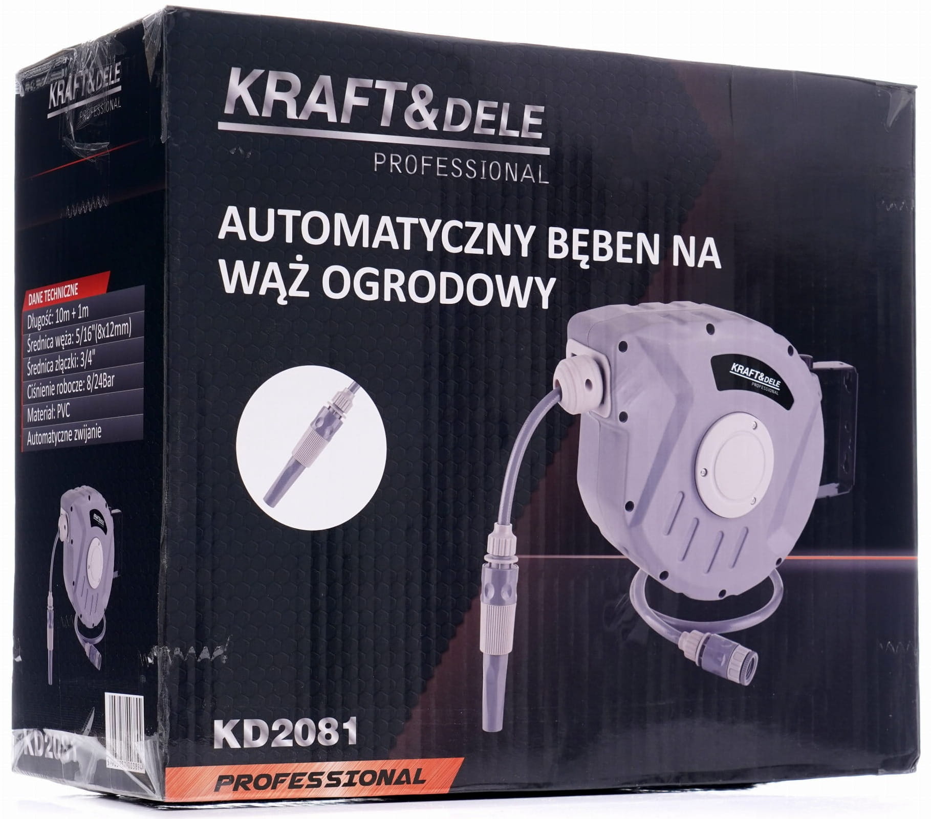KD2081 to bęben na wąż ogrodowy z mechanizmem automatycznego zwijania, przeznaczony do użytku w ogrodach przydomowych, na działkach oraz przy pracach porządkowych wokół budynków. Wąż o łącznej długości 11 metrów (10 m roboczy + 1 m przyłączeniowy) nawija się samoczynnie po zakończeniu pracy, eliminując konieczność ręcznego układania węża.