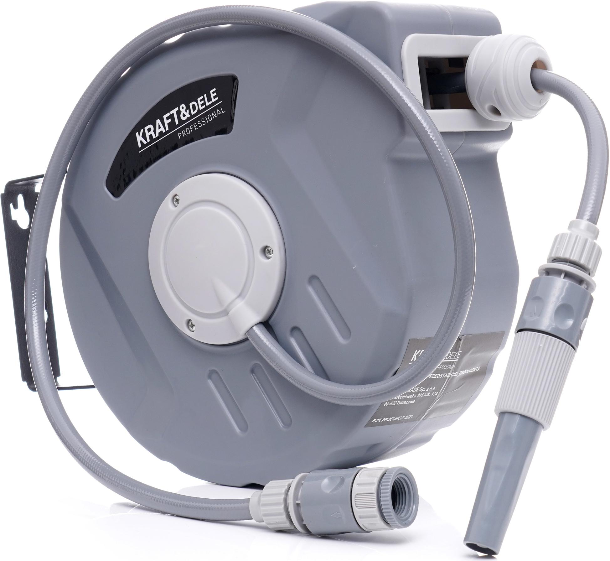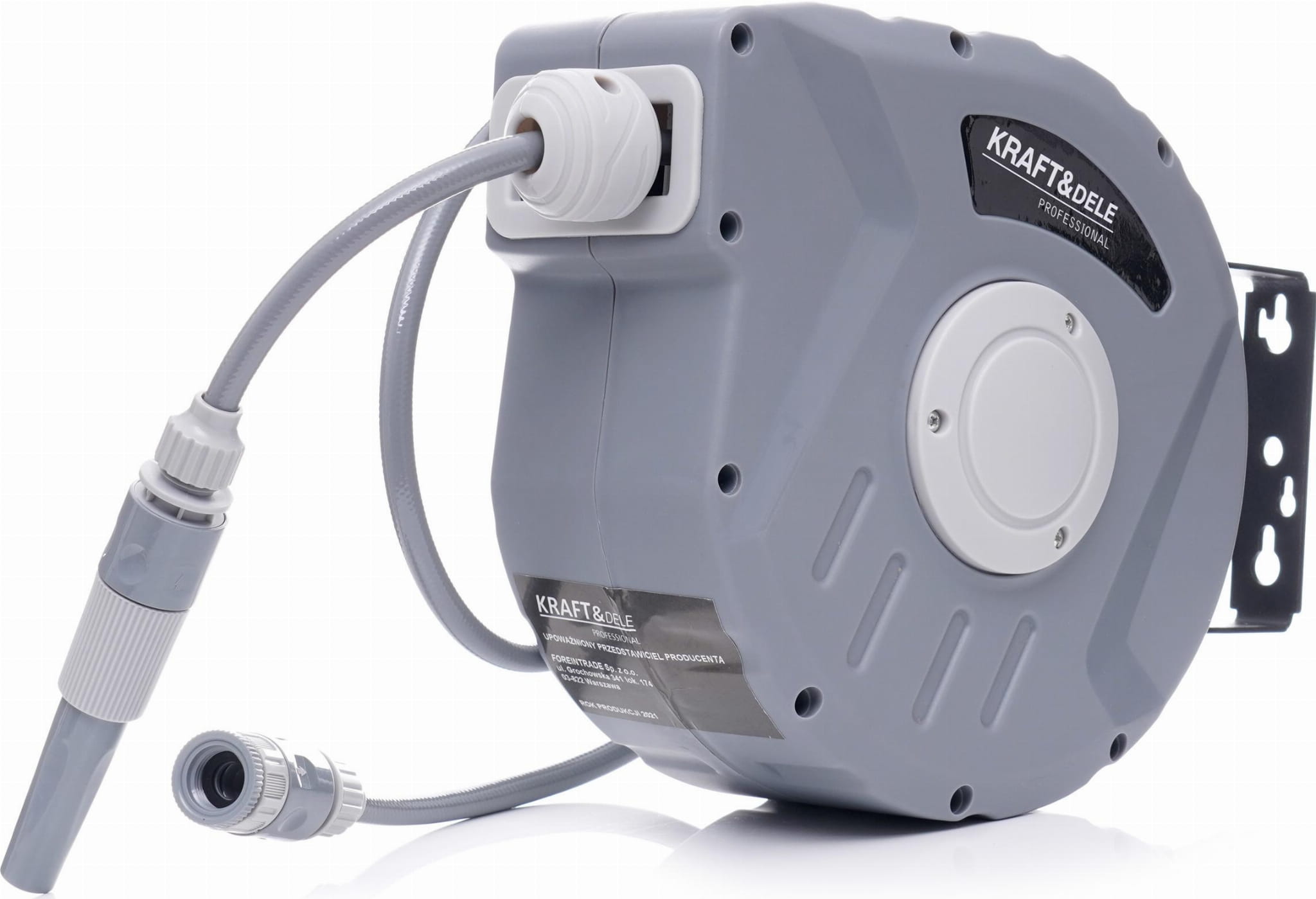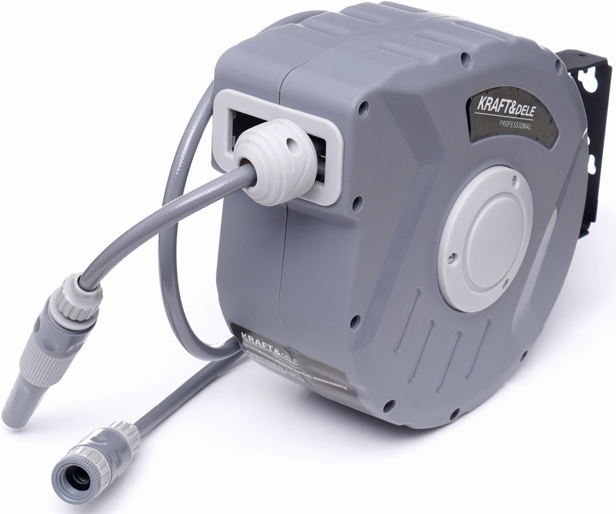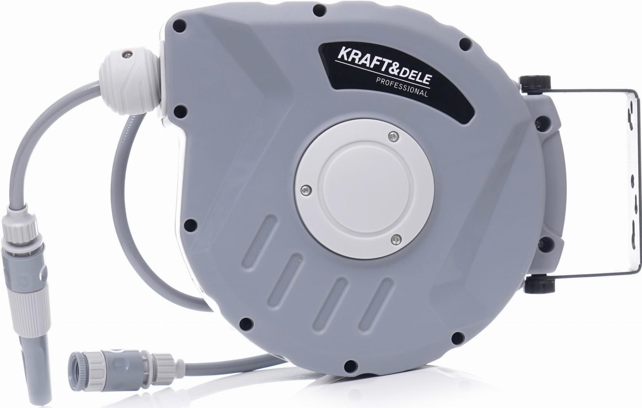 KD2082 to naścienny zwijacz węża ogrodowego z automatycznym mechanizmem zwijania. Urządzenie przechowuje 15 m węża roboczego o średnicy 1/2" oraz 1,5 m odcinka przyłączeniowego, eliminując konieczność ręcznego zwijania i magazynowania węża po każdym użyciu.