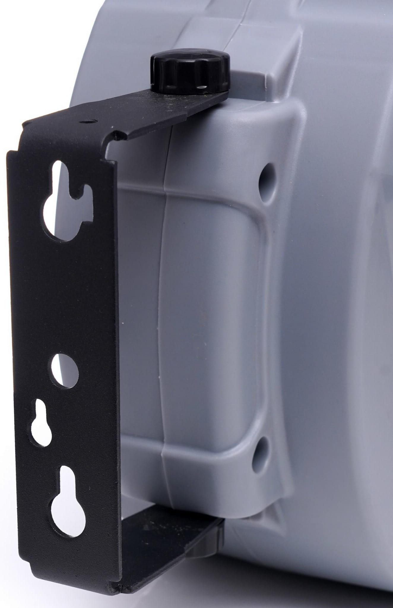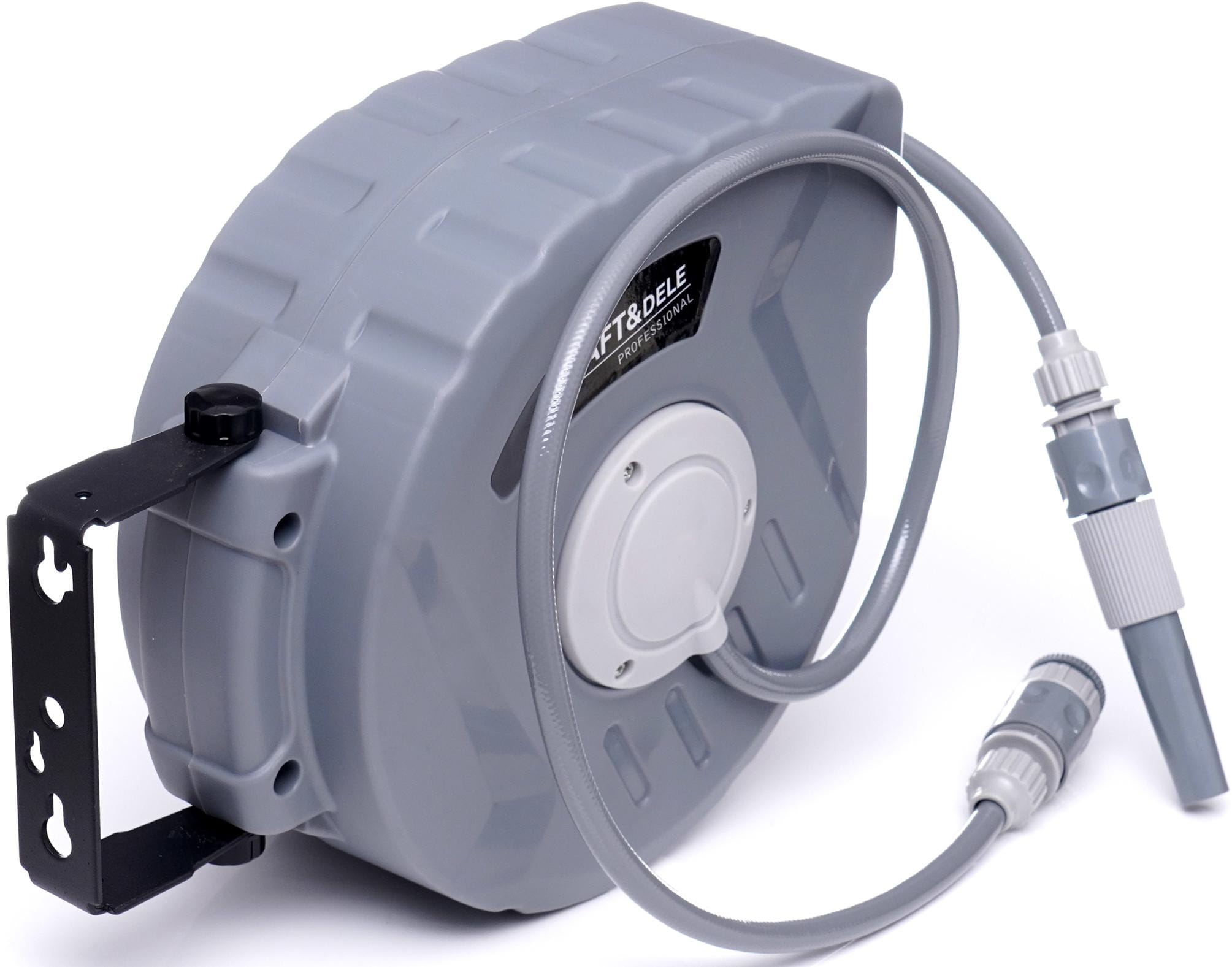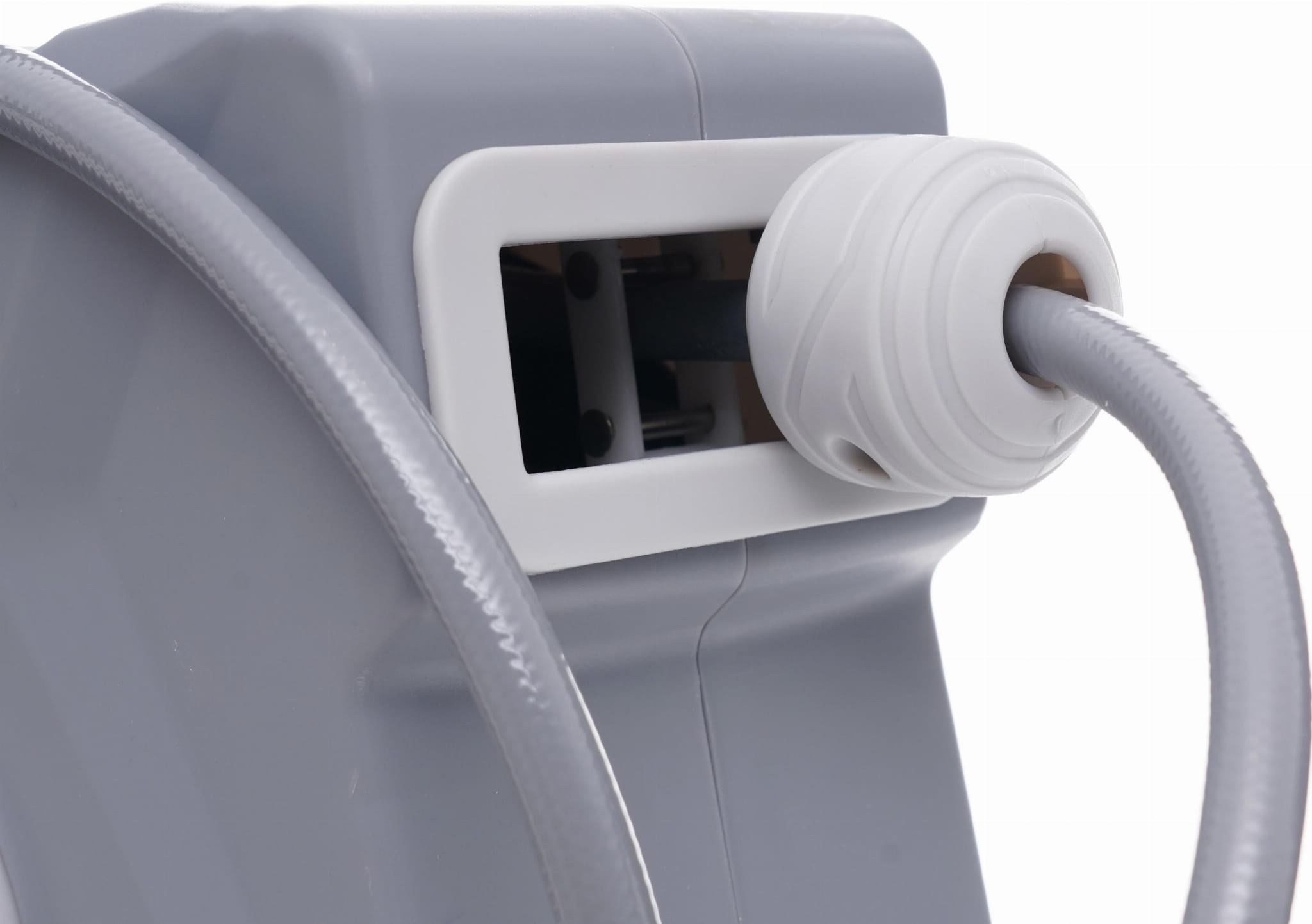W zestawie znajduje się uchwyt do montażu na ścianie. Mocowanie na stałe uwalnia przestrzeń roboczą i zapewnia stały, powtarzalny punkt podłączenia do instalacji wodnej. Bęben można też przenosić dzięki ergonomicznemu uchwytowi.