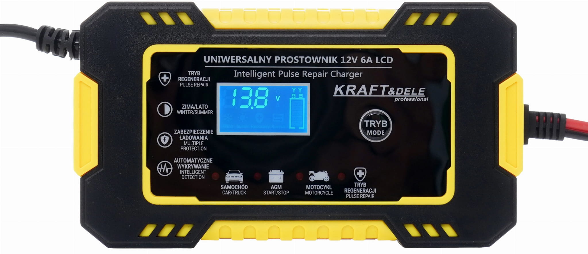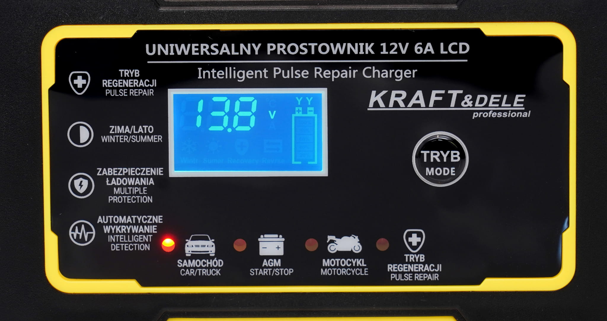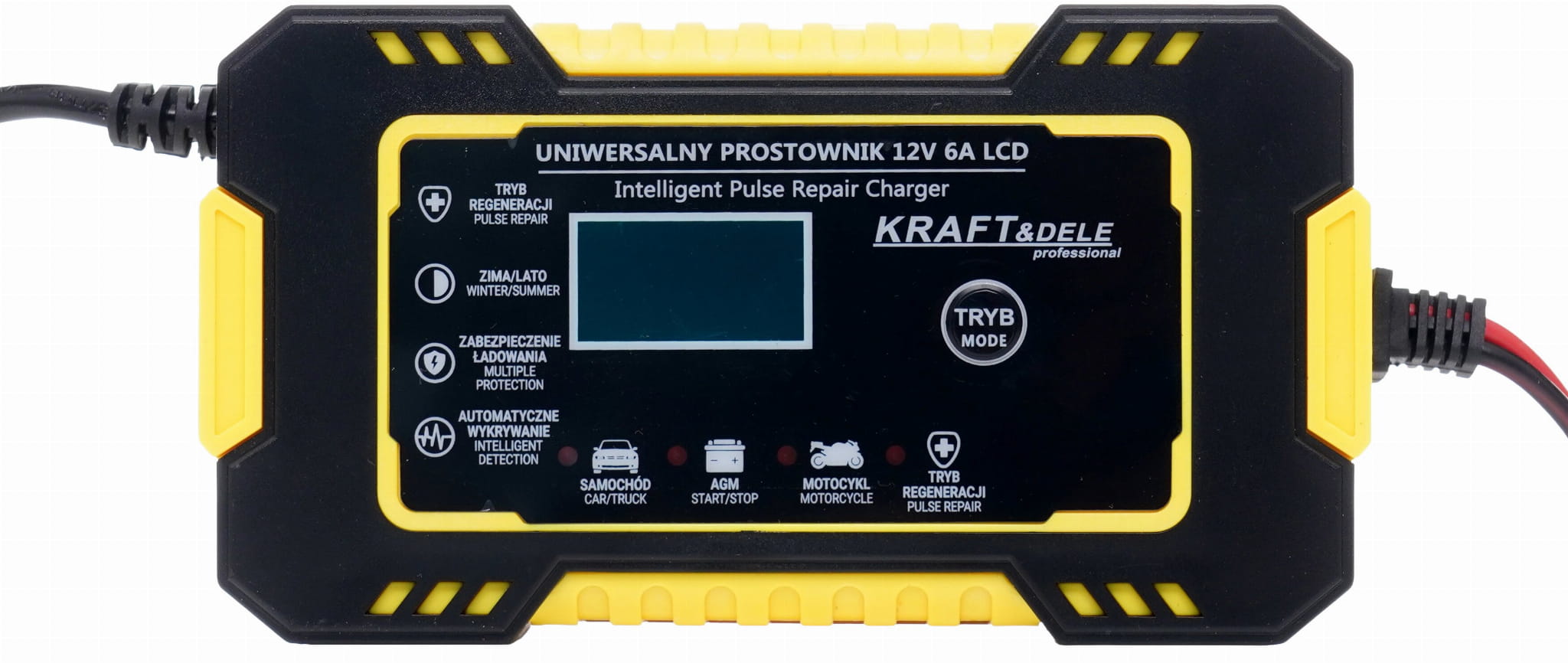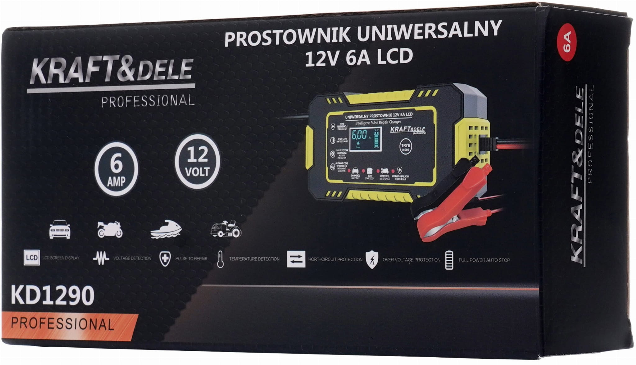 KD1290 to automatyczny prostownik przeznaczony do ładowania akumulatorów kwasowo-ołowiowych 12V, w tym akumulatorów samochodowych, motocyklowych oraz technologii AGM i Start-Stop. Urządzenie wyposażono w wyświetlacz LCD, cztery tryby pracy oraz układ kompensacji temperaturowej napięcia ładowania.