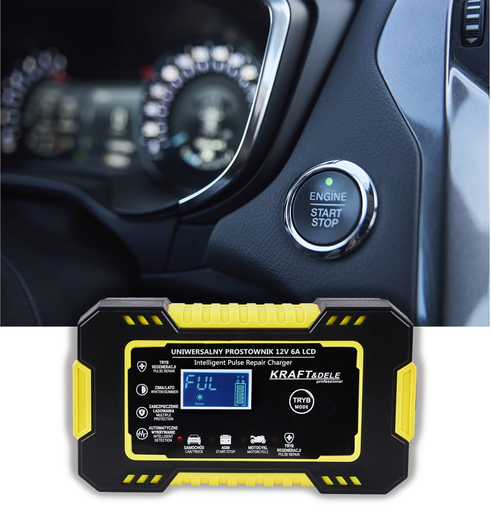 Tryb samochodowy obsługuje akumulatory 15–100Ah, tryb AGM/Start-Stop – 10–100Ah, tryb motocyklowy dedykowany jest mniejszym akumulatorom kwasowo-ołowiowym, a tryb naprawy umożliwia regenerację głęboko rozładowanych ogniw.