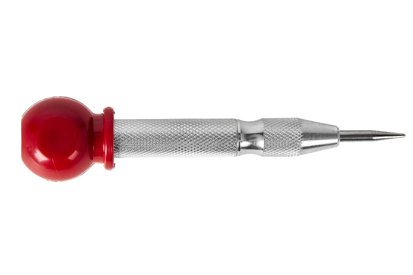 Ręczne narzędzie z mechanizmem sprężynowym przeznaczone do precyzyjnego wyznaczania punktów centrujących przed wierceniem na drewnie, tworzywach sztucznych i innych materiałach. Działa bez młotka — siłę uderzenia generuje wewnętrzna sprężyna uruchamiana przez dociśnięcie iglicy do powierzchni.