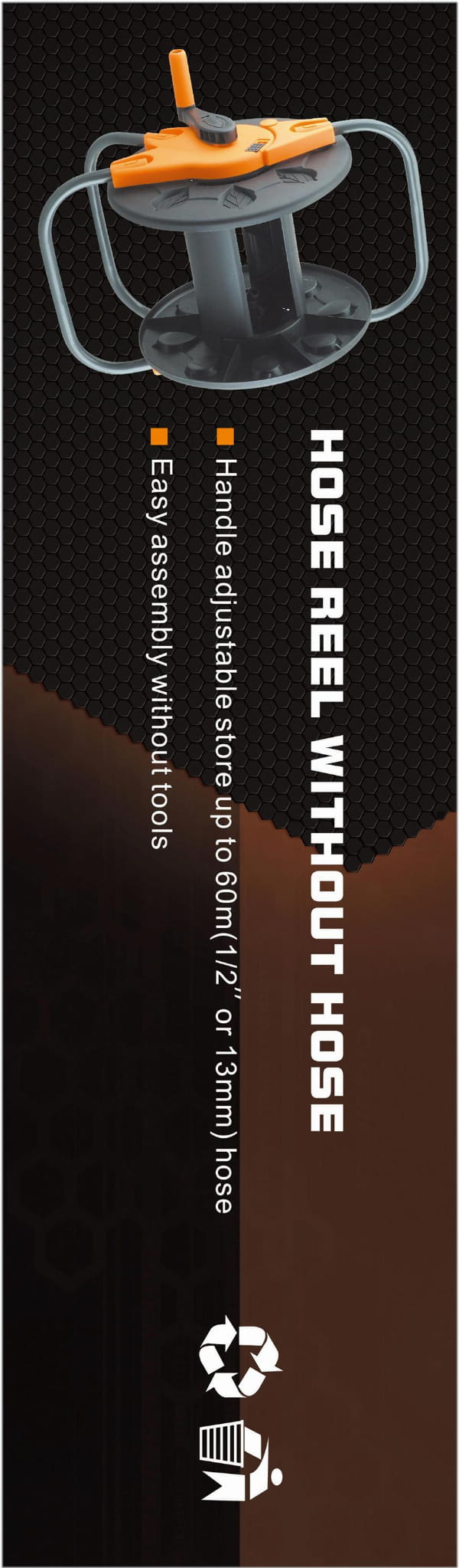 Bęben mieści węże o standardowej średnicy 1/2" (13 mm) i długości do 60 m. Przed zakupem należy sprawdzić średnicę posiadanego węża — nie jest kompatybilny z wężami 3/4" i grubszymi.
