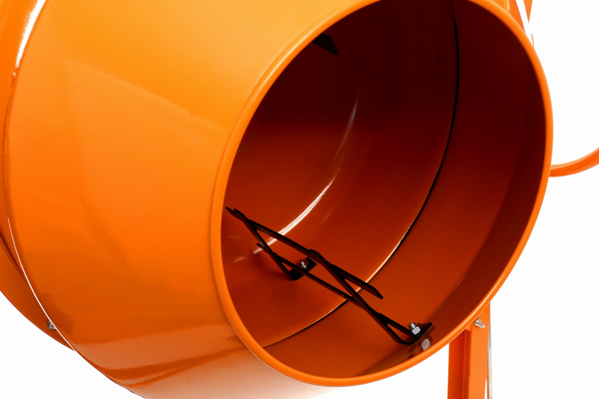 Bęben wykonany z jednego kawałka stalowej blachy tłoczonej eliminuje spawy i miejsca potencjalnych pęknięć. Wzmocnione dno zwiększa odporność na naprężenia podczas pracy z pełnym zasypem 135 litrów mieszanki.