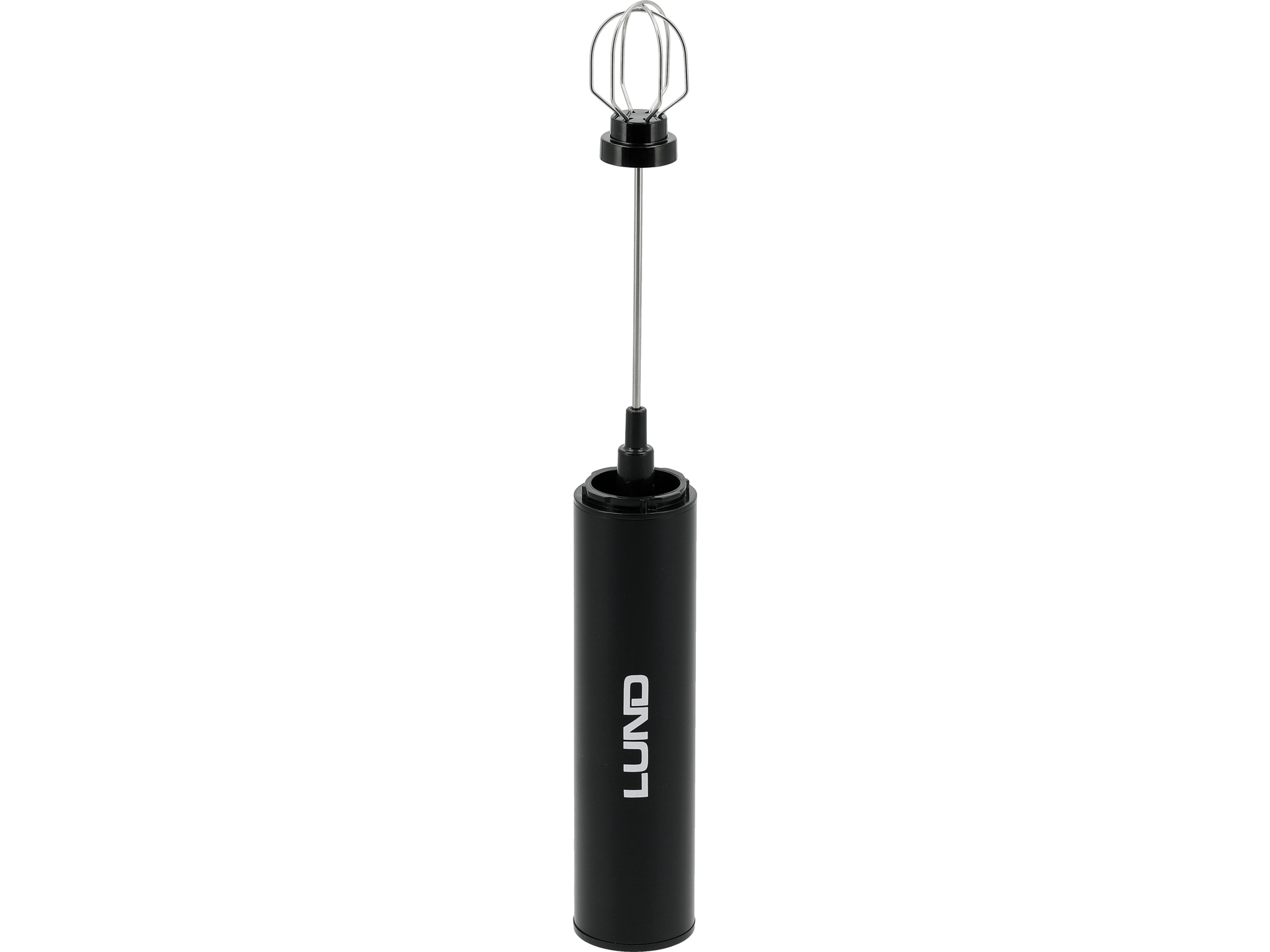 Wielofunkcyjne urządzenie kuchenne z czterema wymiennymi końcówkami, zasilane akumulatorem litowo-jonowym. Umożliwia spienianie mleka, ubijanie białek, mieszanie koktajli oraz czyszczenie pojemników bez konieczności podłączania do zasilania.