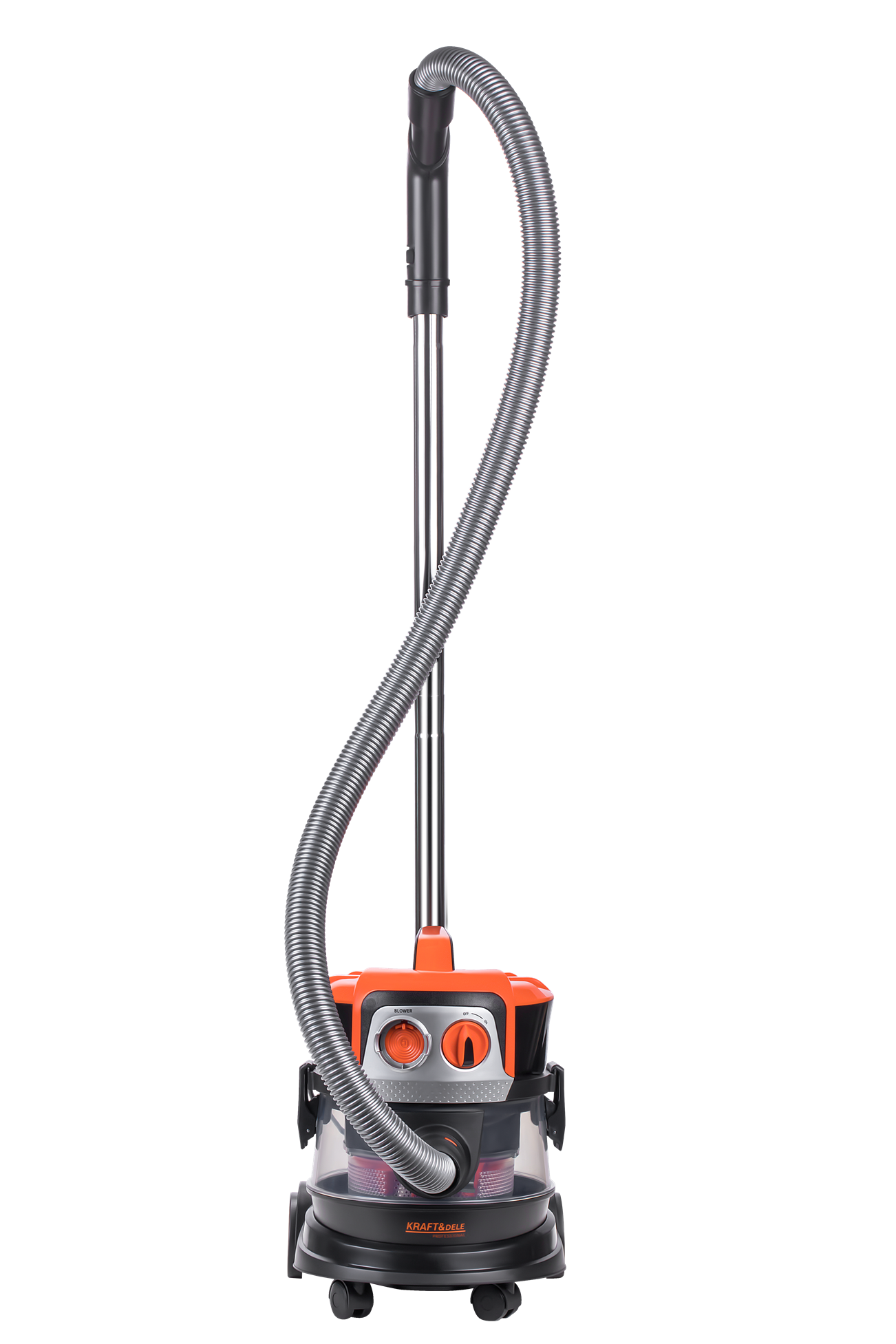 KD5149 to odkurzacz przemysłowy bezworkowy marki Kraft&Dele przeznaczony do intensywnej eksploatacji w warunkach przemysłowych i budowlanych. Urządzenie pracuje w oparciu o wielokrotny cyklonowy system filtracji, który eliminuje potrzebę stosowania jednorazowych worków i zapewnia stałą wydajność ssania niezależnie od stopnia zapełnienia zbiornika.