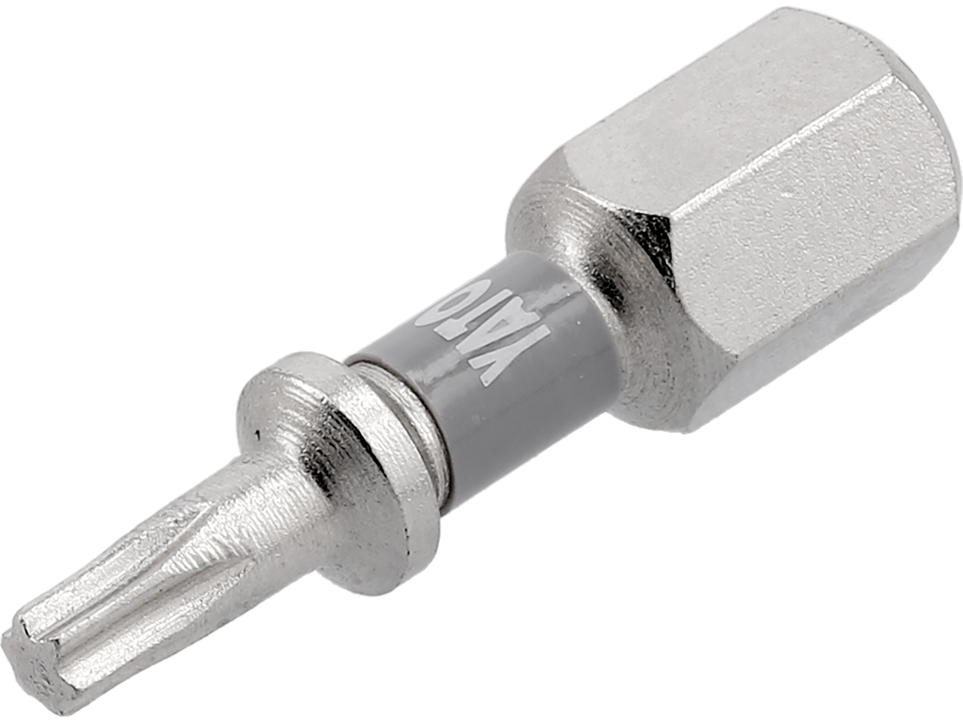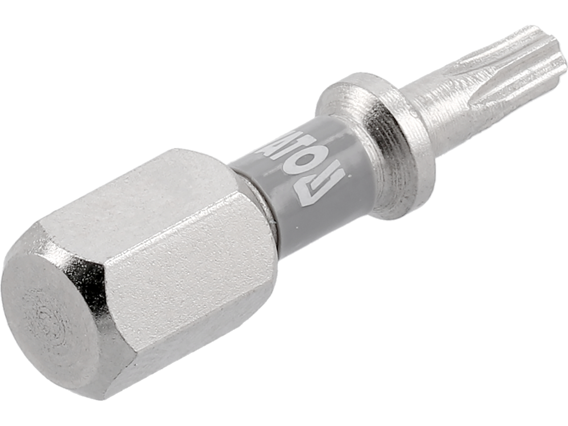 Profesjonalne końcówki wkrętakowe TORX T10 ze stali S2 w zestawie 2 sztuk. Bit o długości 25 mm z sześciokątnym chwytem 1/4" zapewnia kompatybilność z większością wkrętarek i kluczy nasadowych.