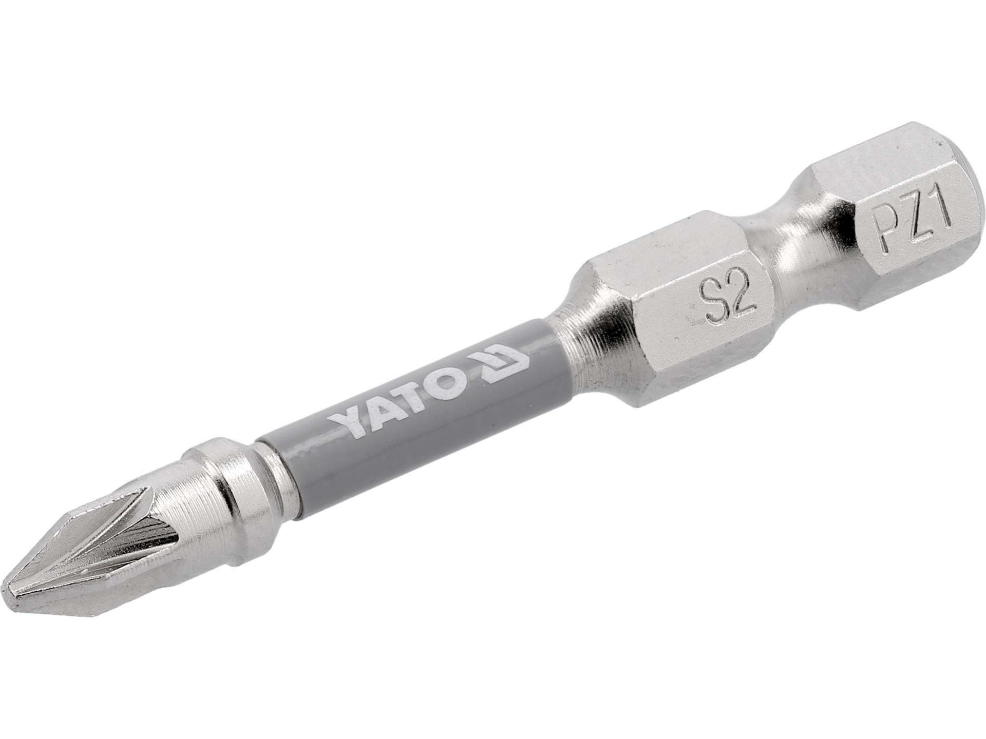 Końcówki wkrętakowe ze stali S2 z grotem Pozidriv PZ1 i sześciokątnym uchwytem 1/4". Przeznaczone do pracy z wkrętarkami, wiertarko-wkrętarkami i uchwytami bitowymi w zastosowaniach montażowych i serwisowych.