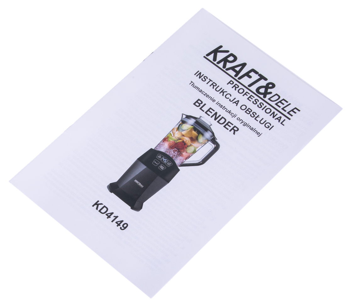 Blender kielichowy KD4149 — pojemnik 1500 ml z pokrywką — pojemnik 800 ml z pokrywką do picia — pojemnik 400 ml z pokrywką — 2 komplety ostrzy ze stali nierdzewnej — instrukcja obsługi w języku polskim — oryginalne opakowanie