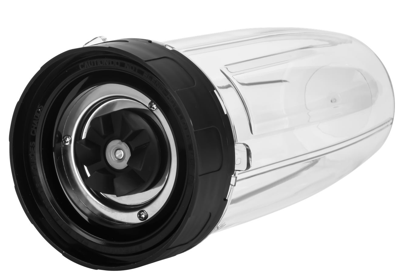 Pojemnik 1500 ml z miarką nadaje się do przygotowywania zup kremów i większych porcji koktajli. Pojemnik 800 ml wyposażono w ustnik do picia — można go używać bezpośrednio po miksowaniu bez przelewania zawartości. Pojemnik 400 ml z pokrywką sprawdza się przy małych porcjach, np. sosów lub dressingów.