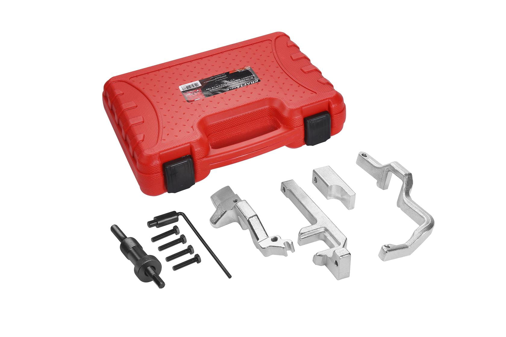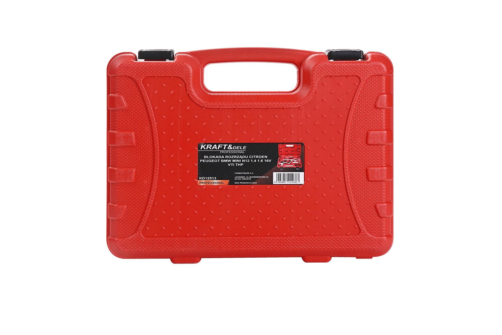 KD12513 to pięcioelementowy zestaw narzędzi serwisowych marki Kraft&Dele przeznaczony do precyzyjnego ustawiania i blokowania rozrządu w silnikach rodziny N12 o pojemnościach 1.4, 1.6 i 2.0 16V stosowanych w pojazdach Citroën, Peugeot, BMW oraz Mini. Narzędzia umożliwiają prawidłowe pozycjonowanie wałków rozrządu i wału korbowego podczas wymiany lub regulacji łańcucha rozrządu.