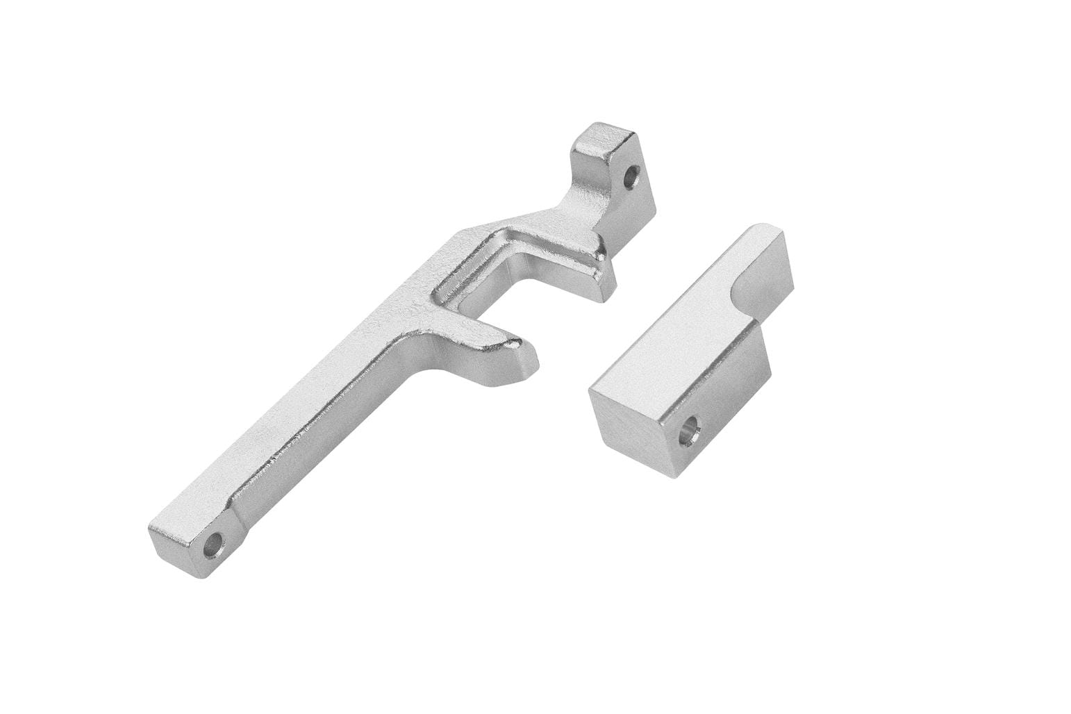 Pięć dedykowanych elementów obejmuje blokady obu wałków rozrządu, trzpień blokujący wał korbowy oraz przyrząd do wstępnego napięcia łańcucha. Pozwala to przeprowadzić pełną procedurę serwisową rozrządu bez konieczności dokupowania dodatkowych narzędzi.