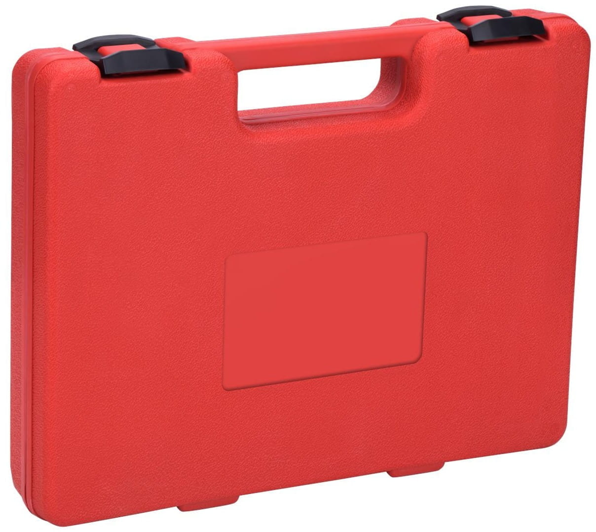 Komplet dostarczany jest w sztywnej walizce z wyprofilowanymi gniazdami na poszczególne elementy. Ułatwia to organizację pracy i kontrolę kompletności zestawu przed przystąpieniem do naprawy.