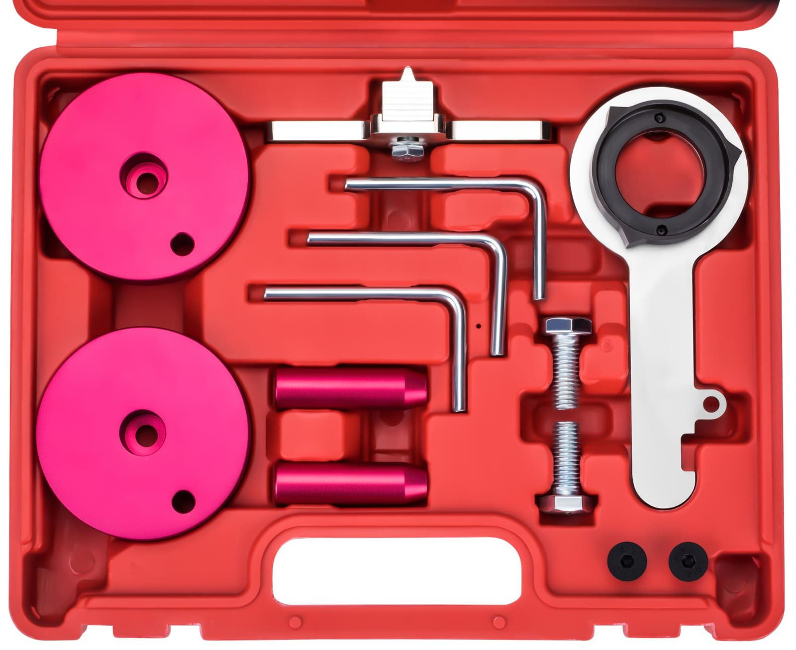 Specjalistyczny zestaw narzędzi do unieruchamiania układu rozrządu w silnikach Ford 2.0 TDCi EcoBlue. Przeznaczony do jednostek napędowych z paskiem rozrządu prowadzonym w strefie olejowej — konstrukcja wymagająca dedykowanych blokad zgodnych z procedurą OEM. Zestaw eliminuje konieczność regulacji pompy wtryskowej po jej ponownym montażu.