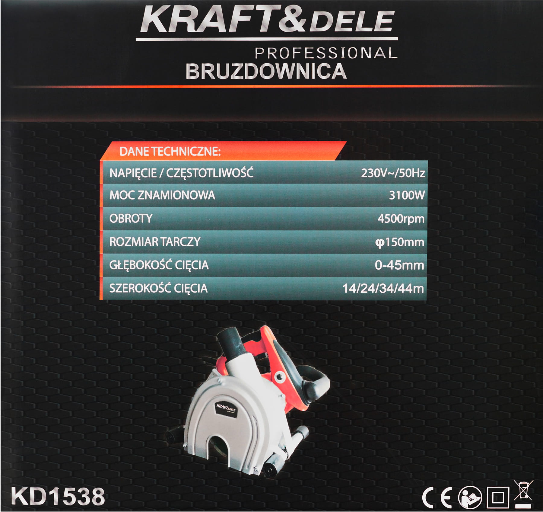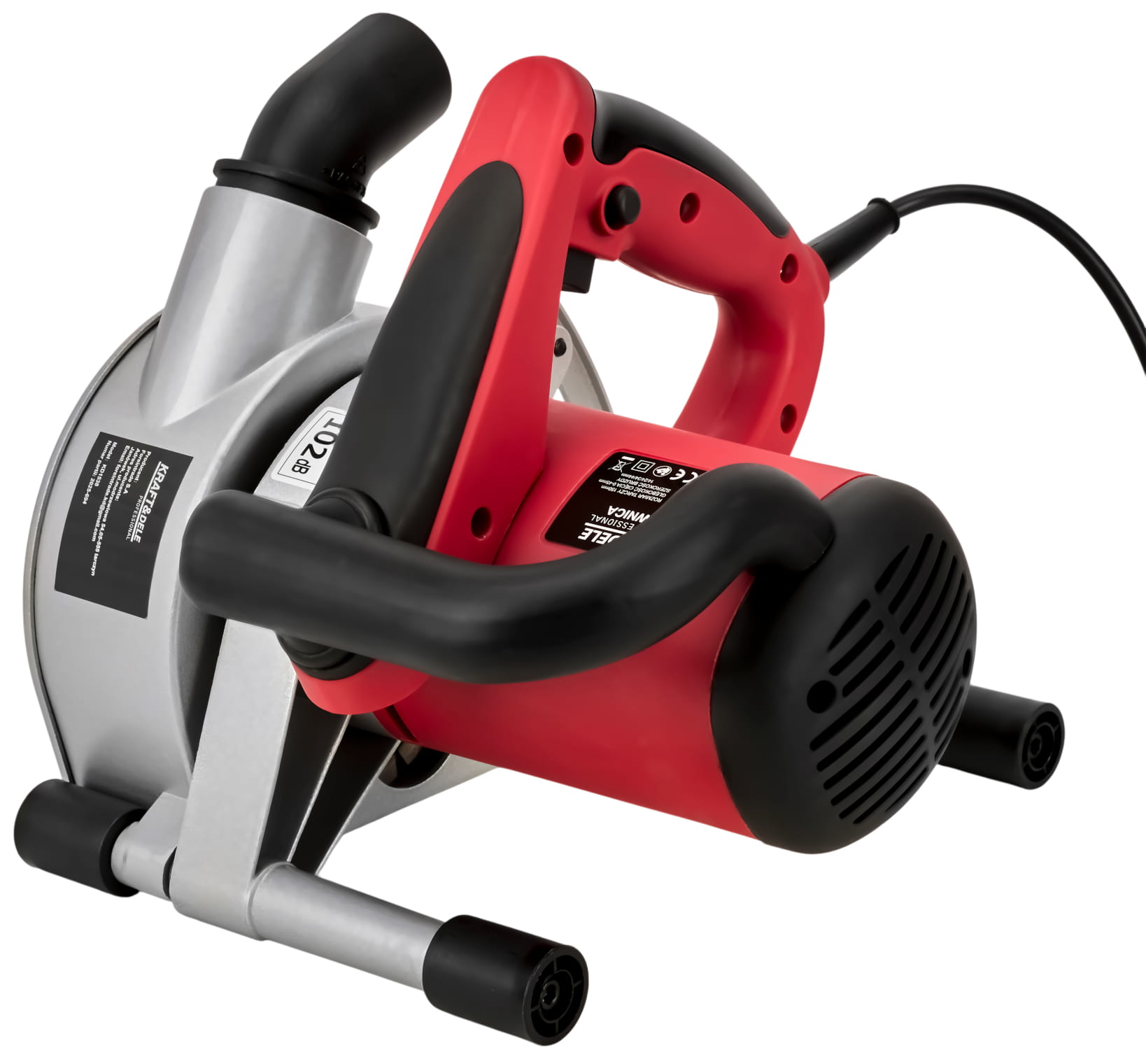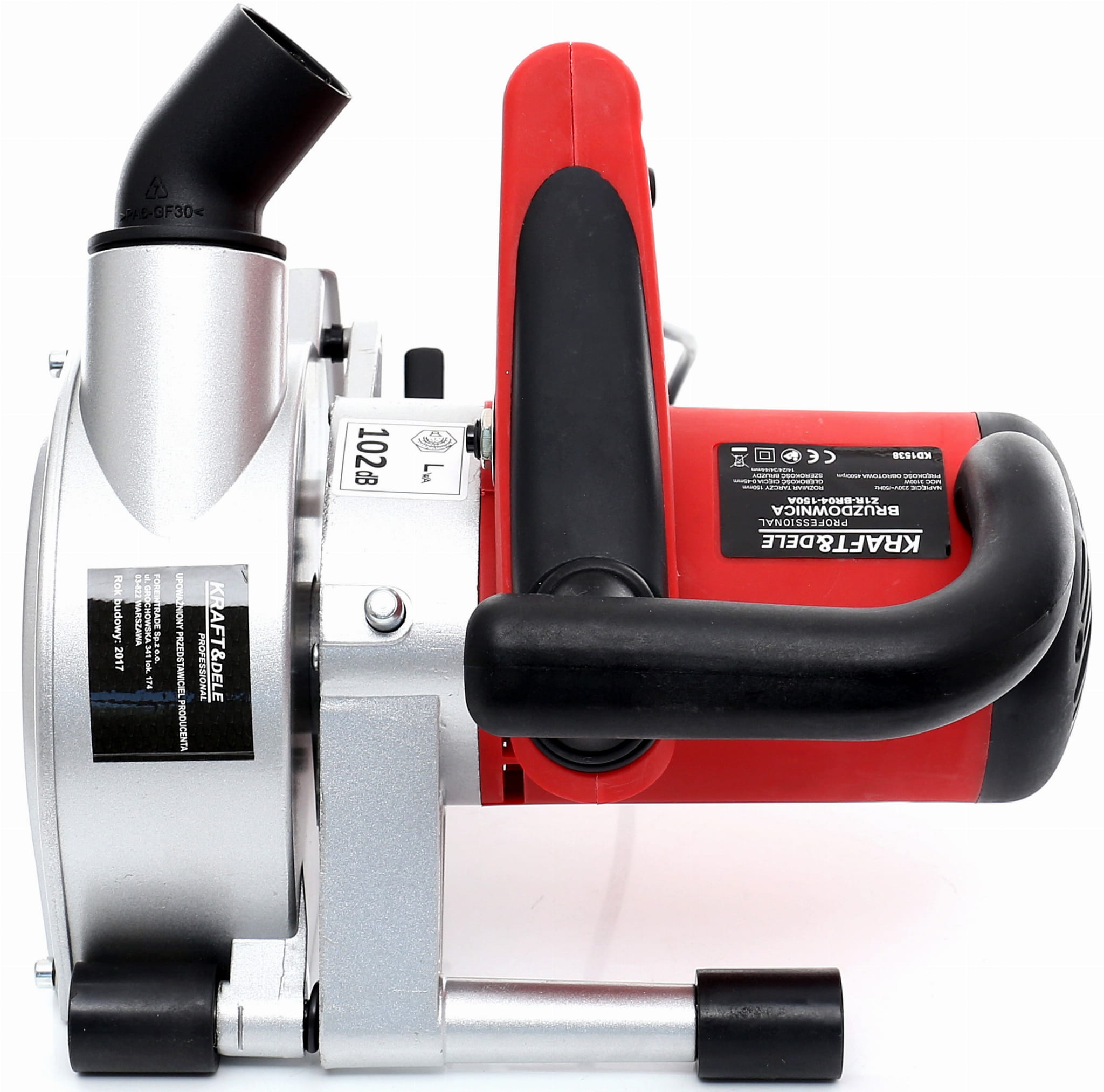 Bruzdownica KD1538 to narzędzie elektryczne przeznaczone do wykonywania prostoliniowych nacięć — bruzd — w materiałach budowlanych takich jak beton, cegła, tynk i pustaki. Urządzenie pracuje z dwiema tarczami diamentowymi o średnicy 150 mm, co pozwala na wykonanie bruzdy w jednym przejściu, bez konieczności wielokrotnego nacinania.