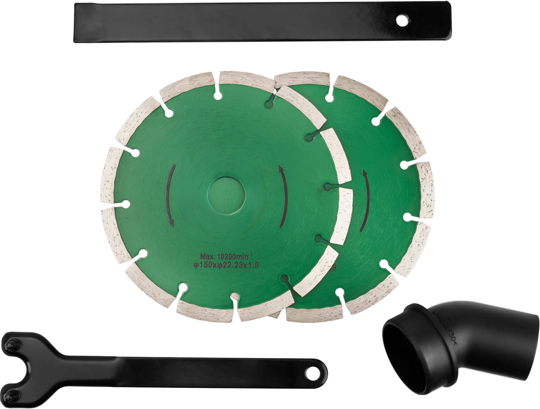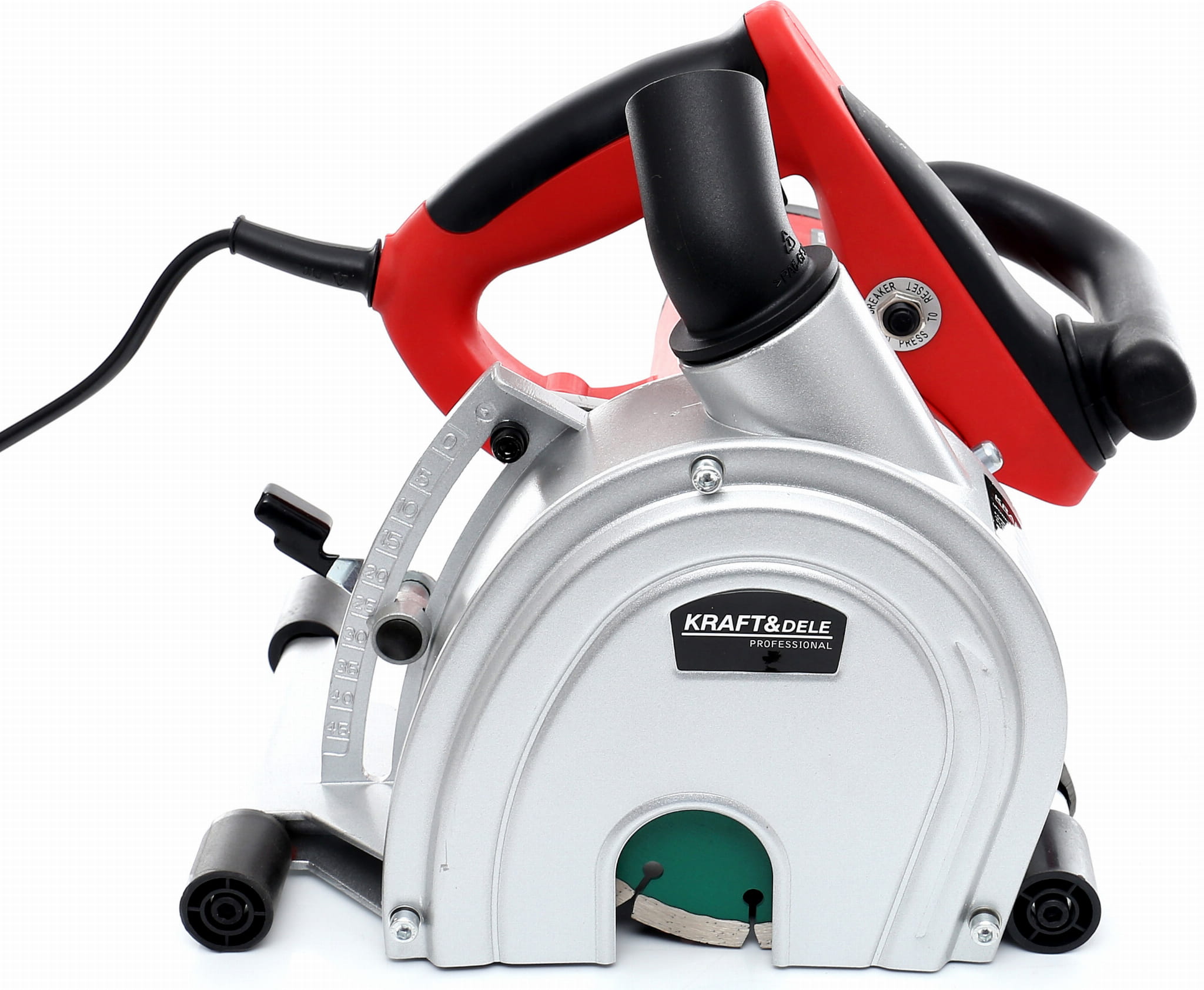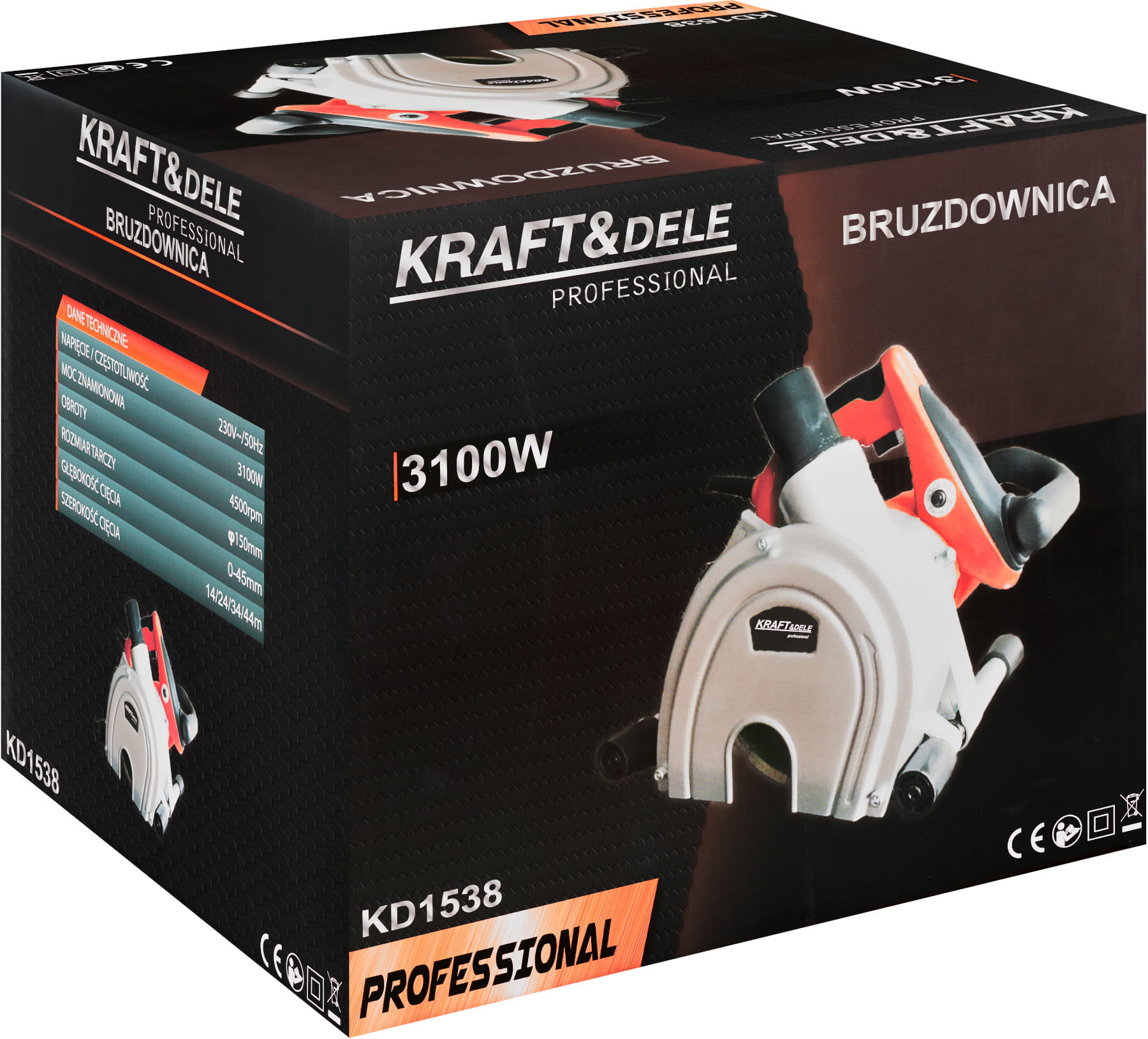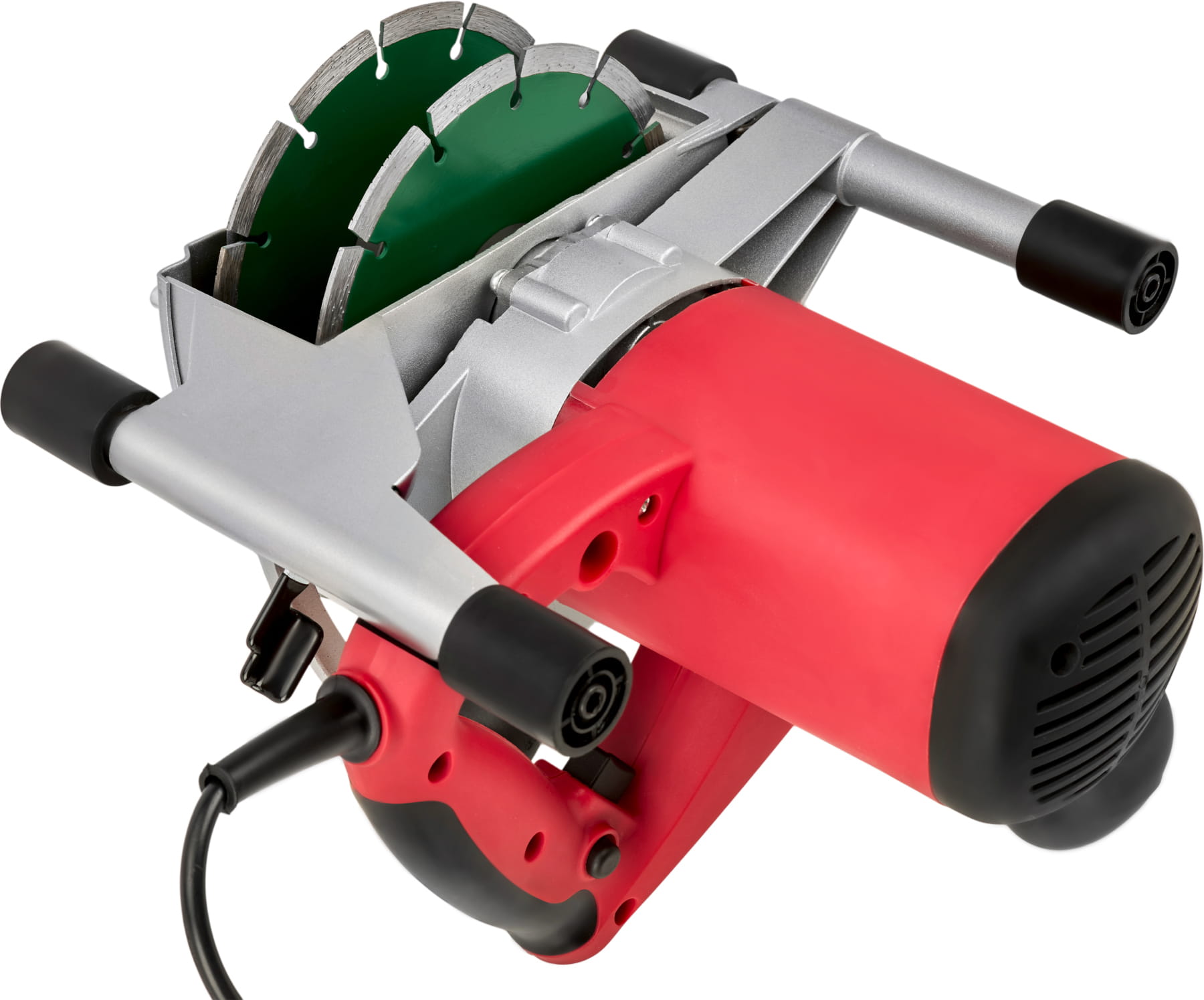 Bruzdownica KD1538 to narzędzie elektryczne przeznaczone do wykonywania prostoliniowych nacięć — bruzd — w materiałach budowlanych takich jak beton, cegła, tynk i pustaki. Urządzenie pracuje z dwiema tarczami diamentowymi o średnicy 150 mm, co pozwala na wykonanie bruzdy w jednym przejściu, bez konieczności wielokrotnego nacinania.